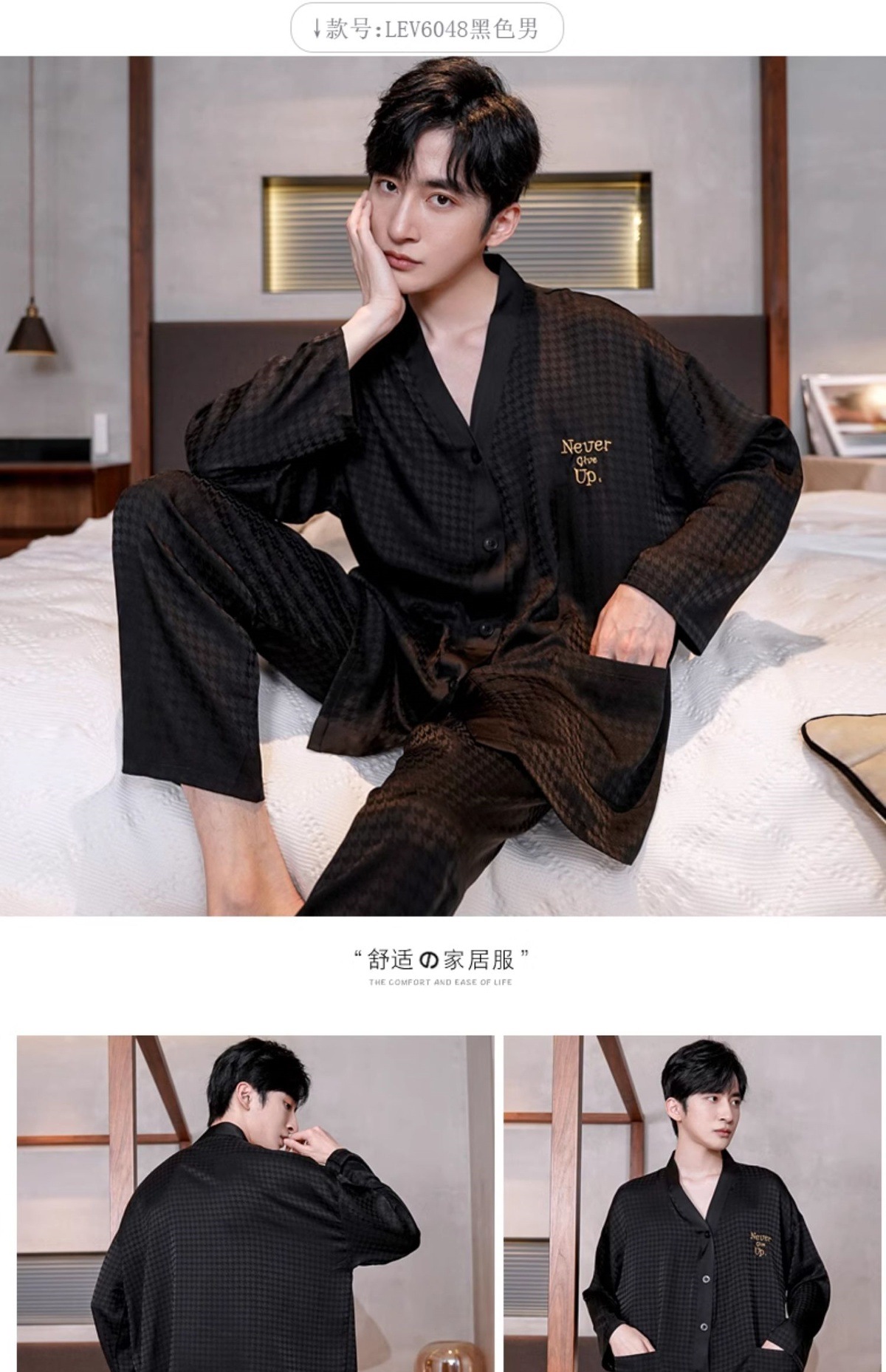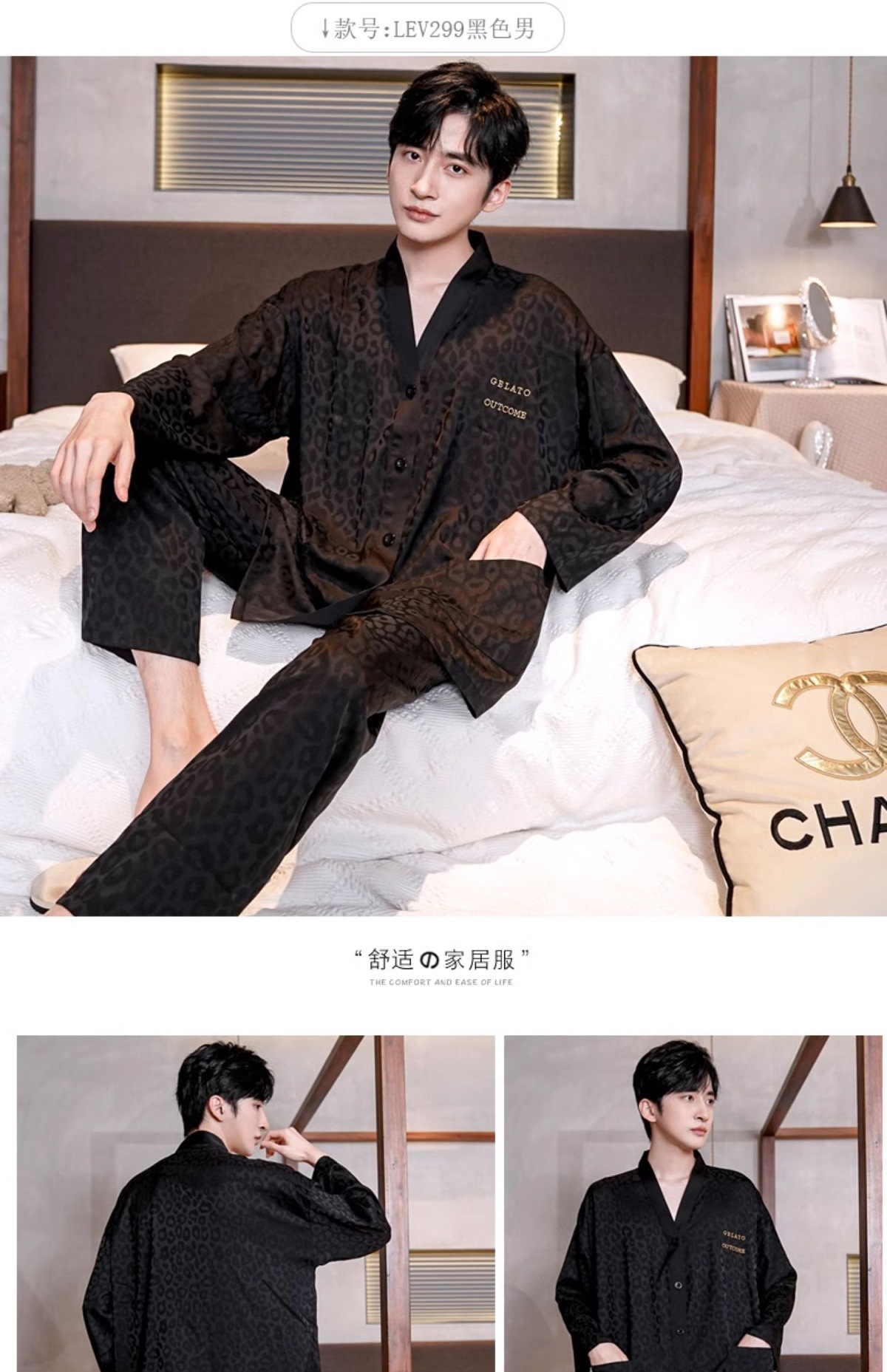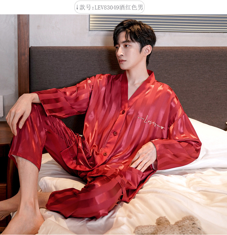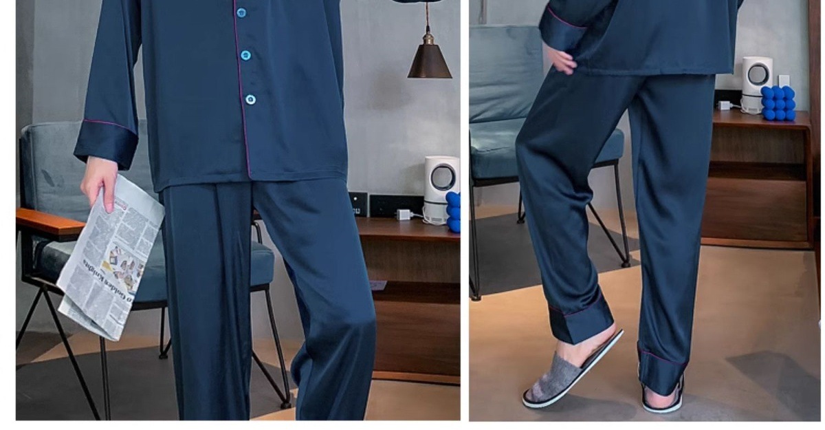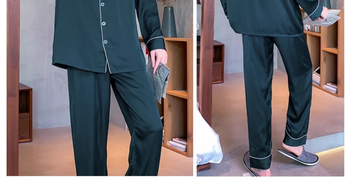 남성용 잠옷 봄 여름 긴팔 실크 아이스 실크 홈웨어 봄 가을 얇은 모조 실크 새틴 슈트