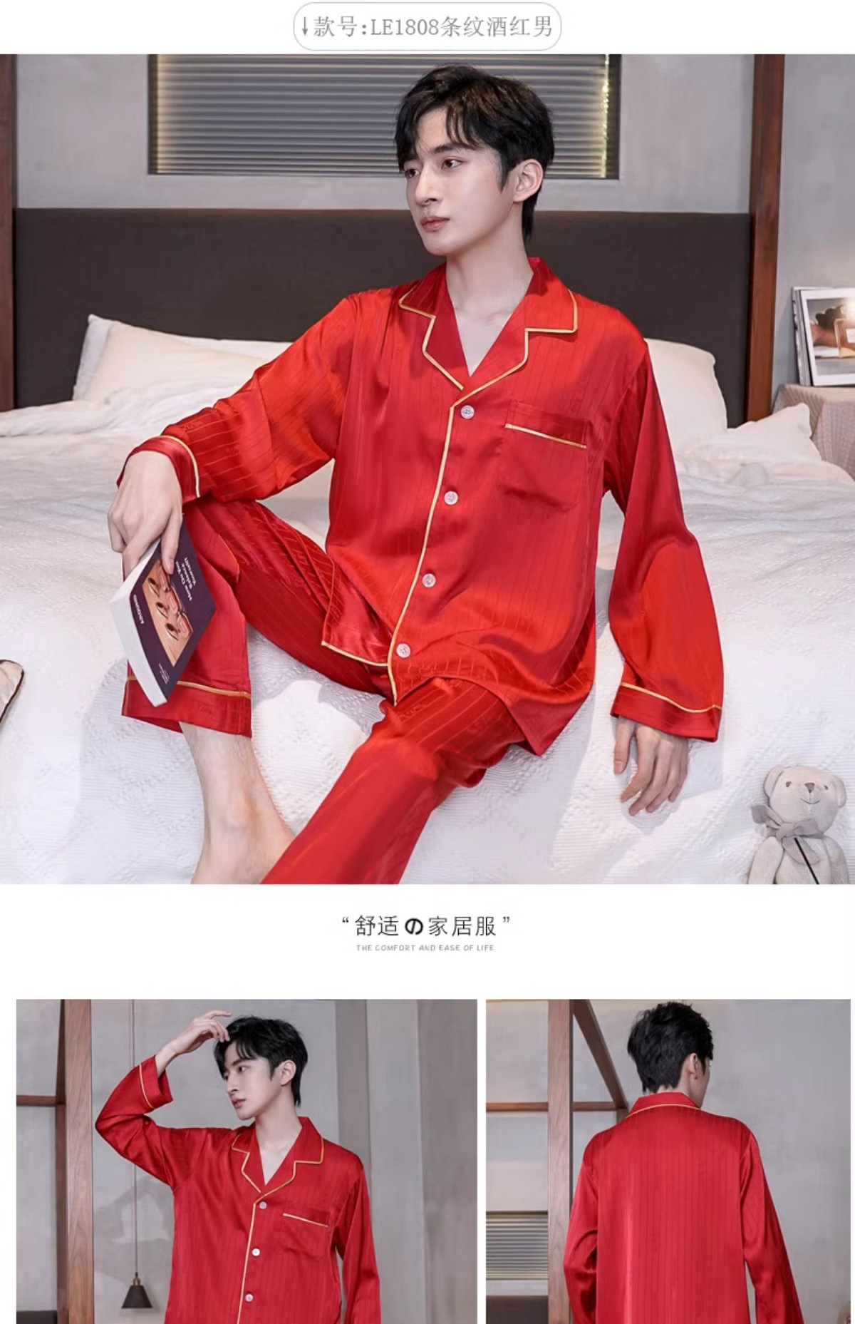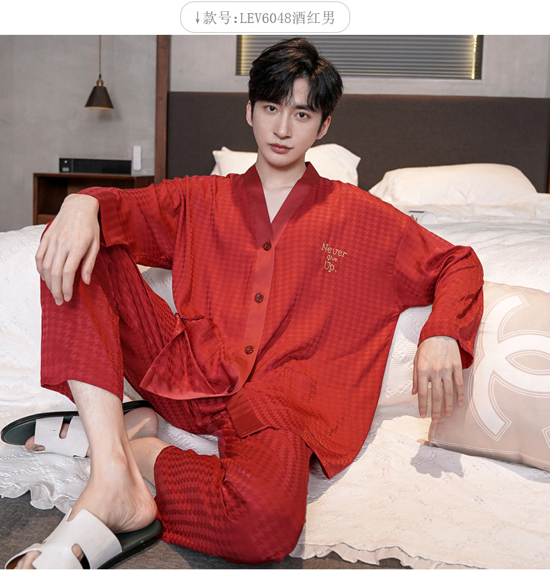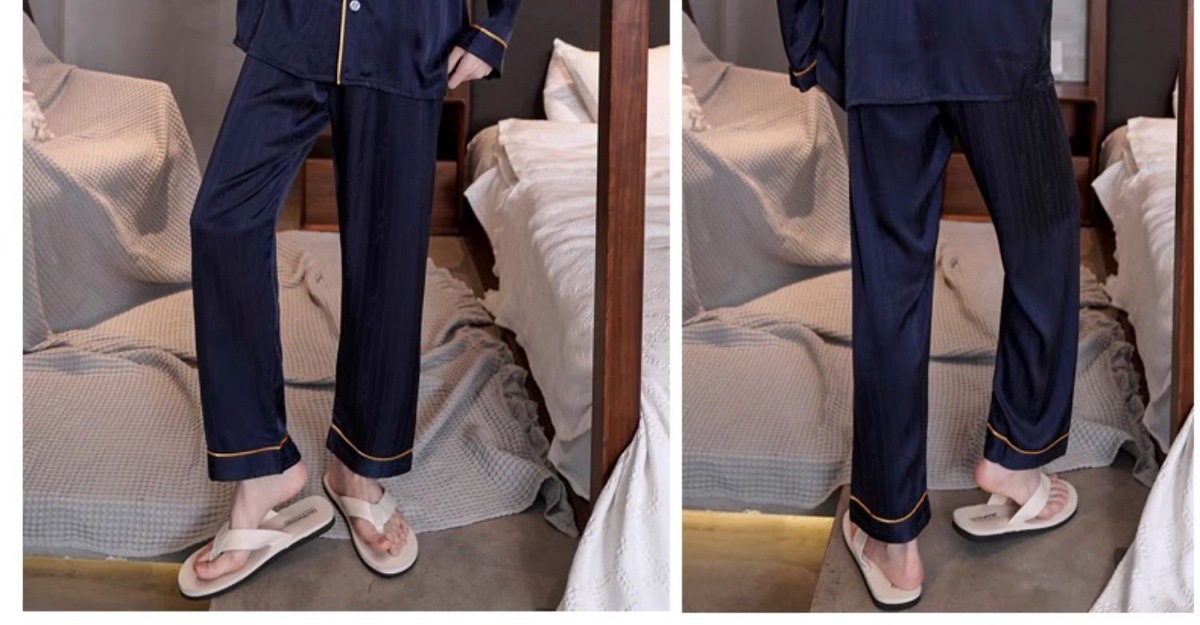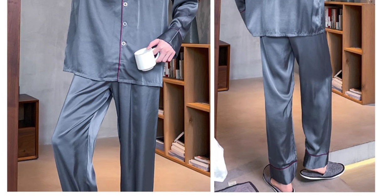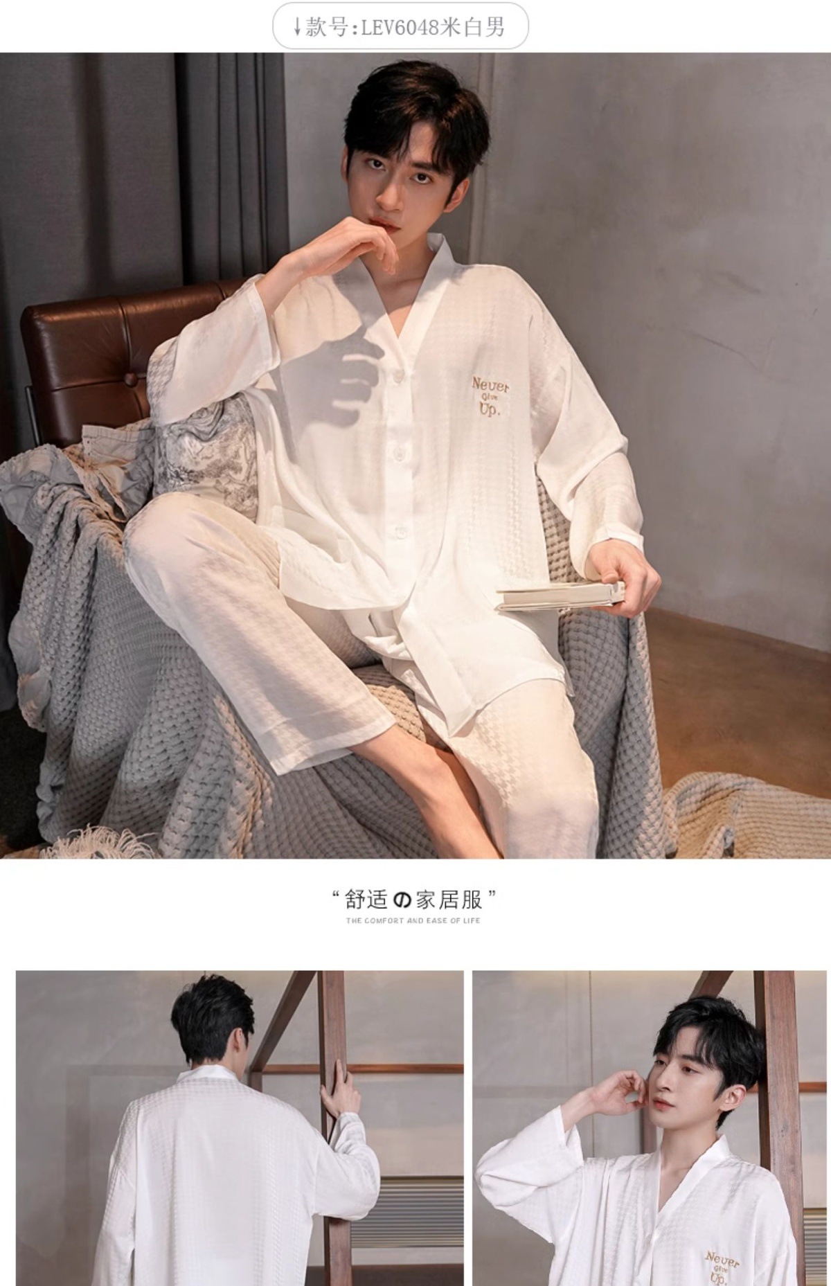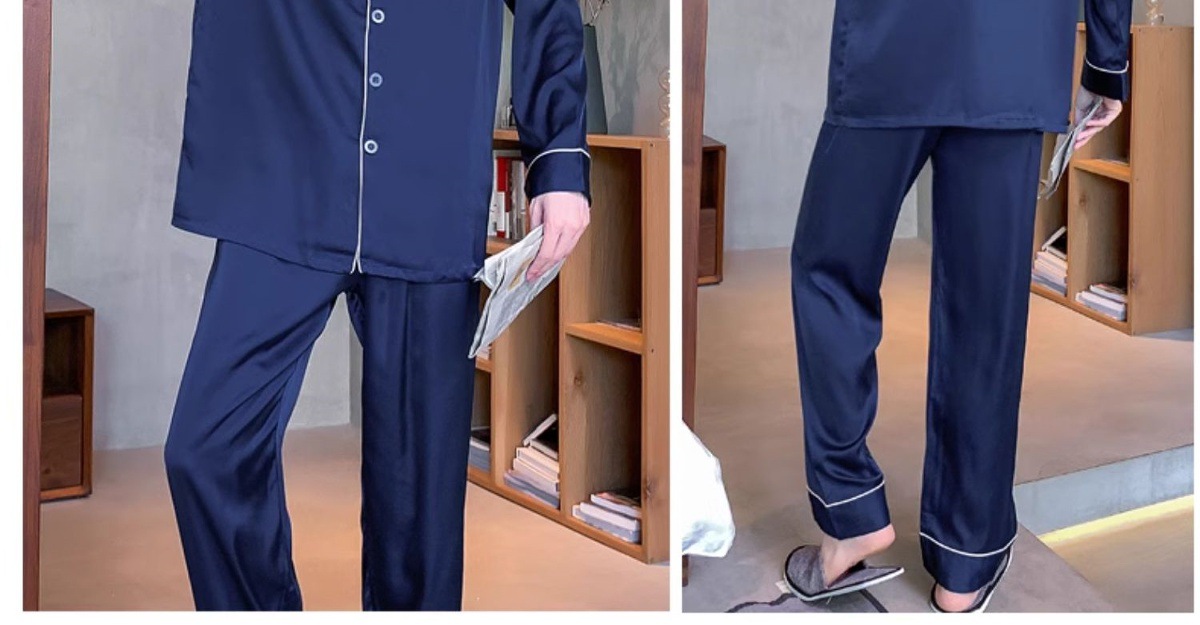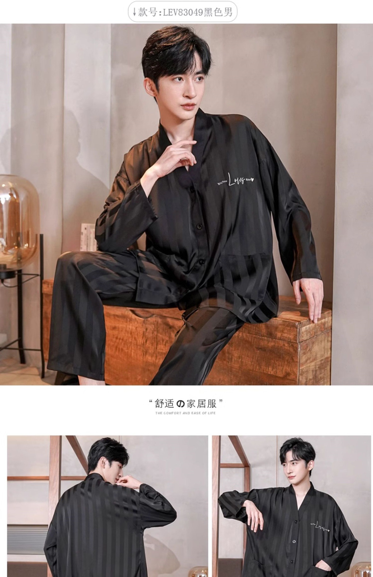 남성용 잠옷 봄 여름 긴팔 실크 아이스 실크 홈웨어 봄 가을 얇은 모조 실크 새틴 슈트