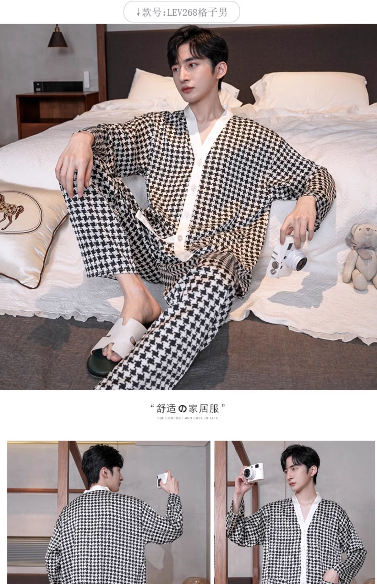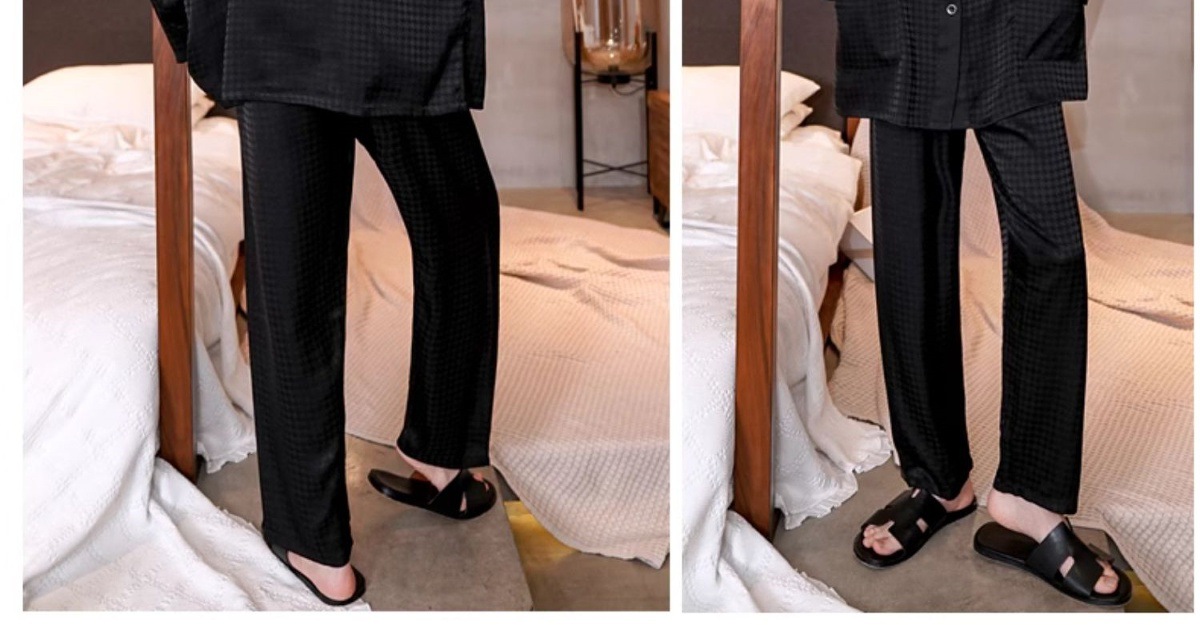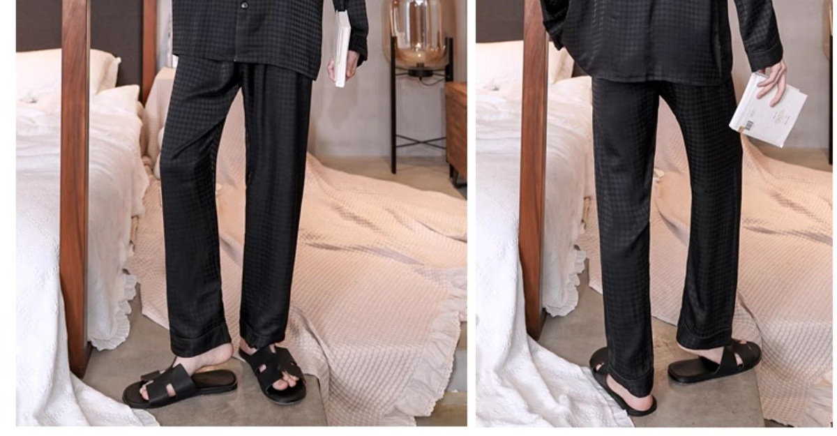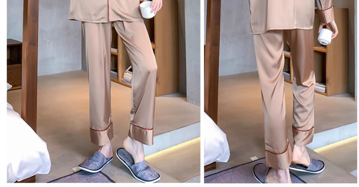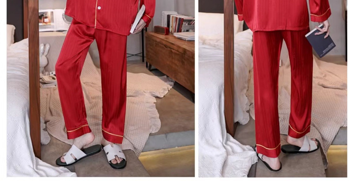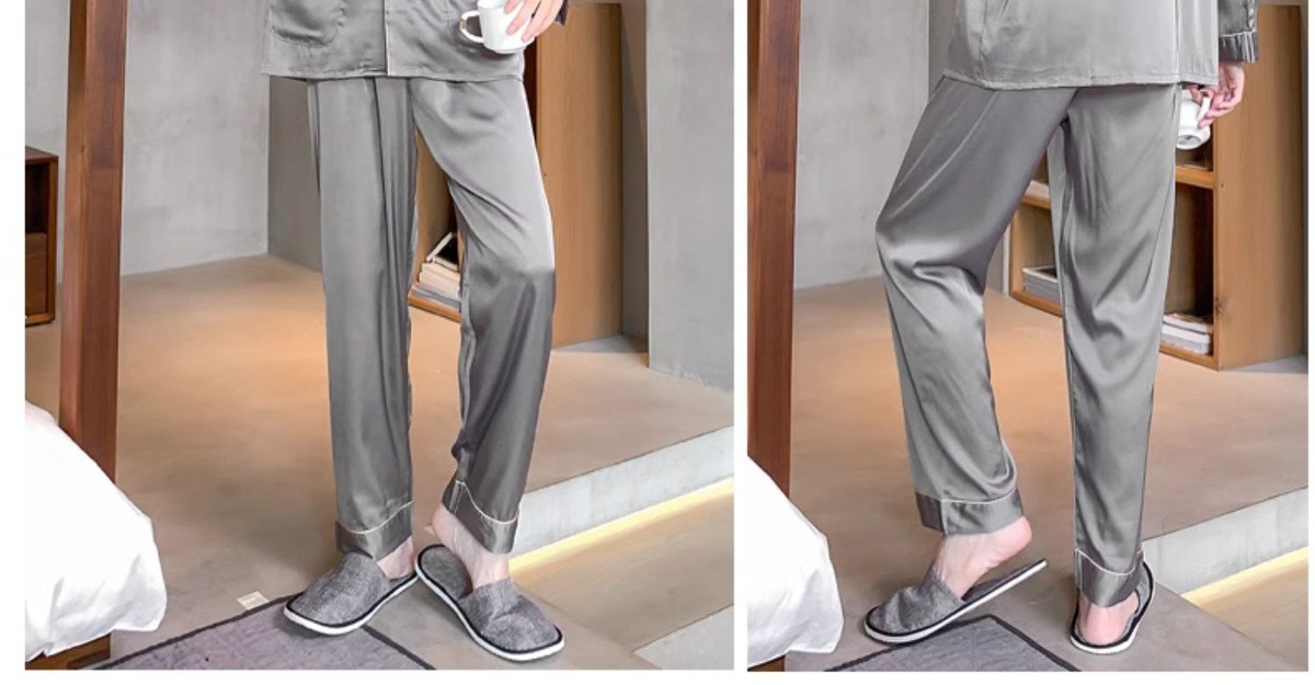 남성용 잠옷 봄 여름 긴팔 실크 아이스 실크 홈웨어 봄 가을 얇은 모조 실크 새틴 슈트
