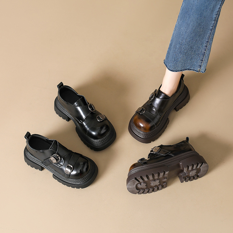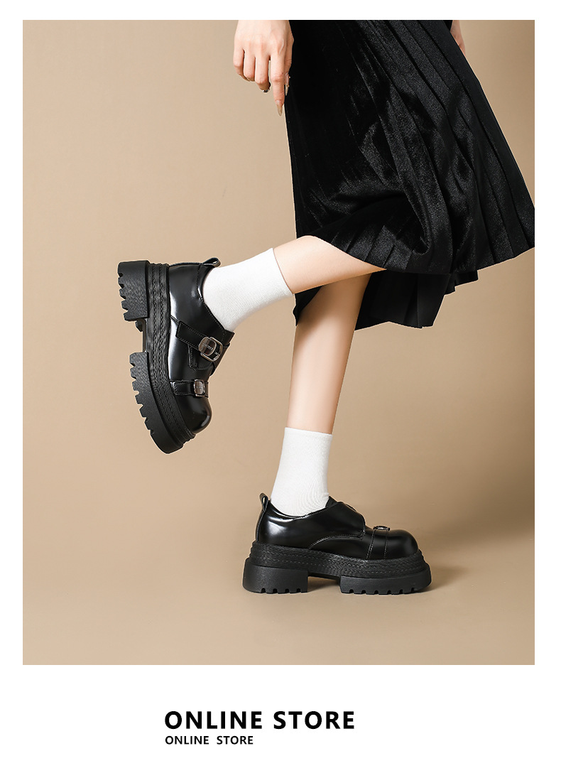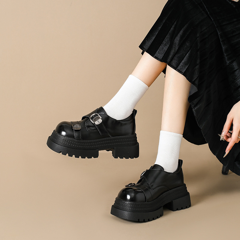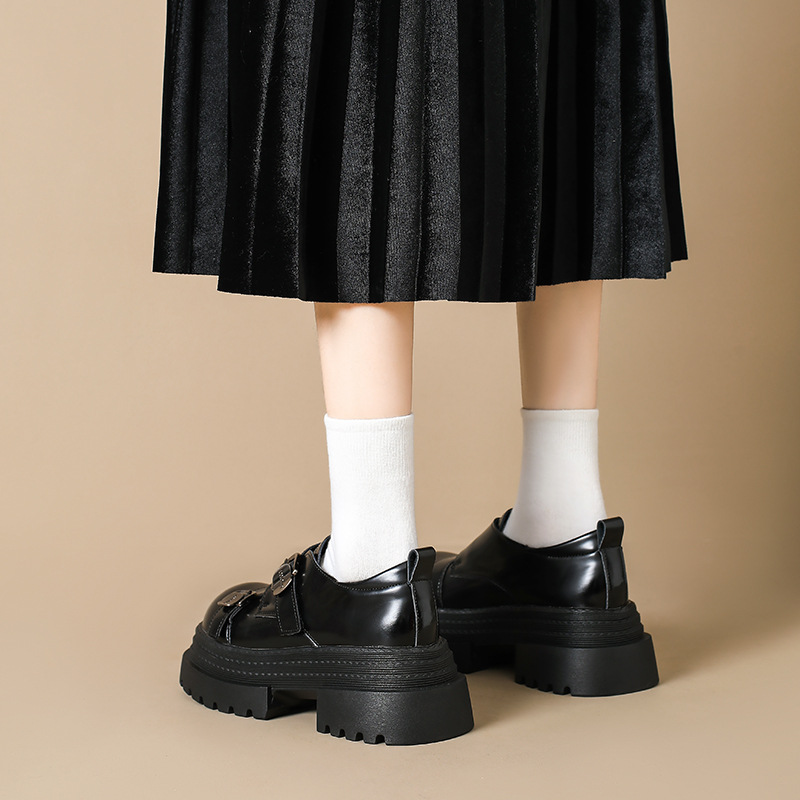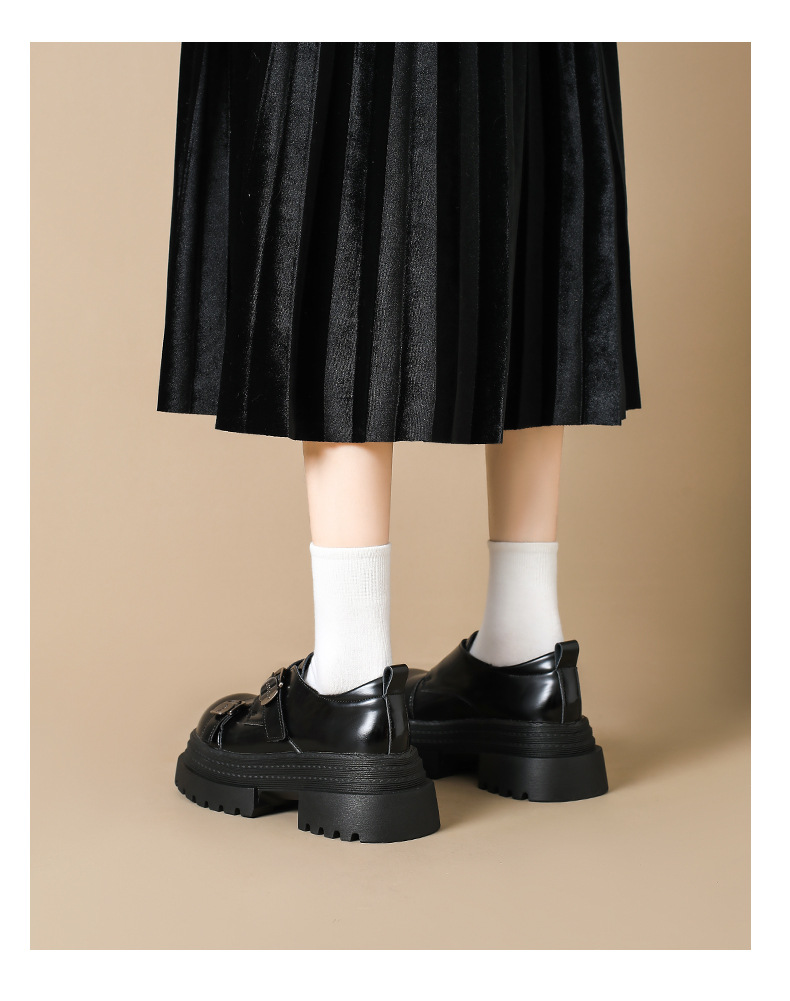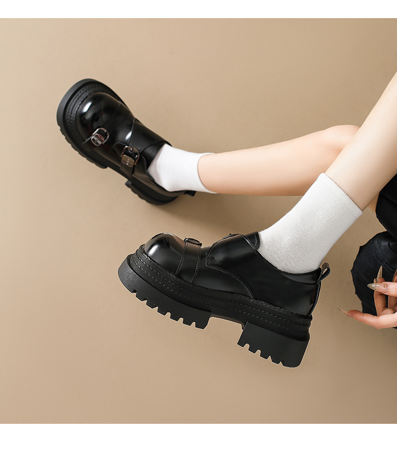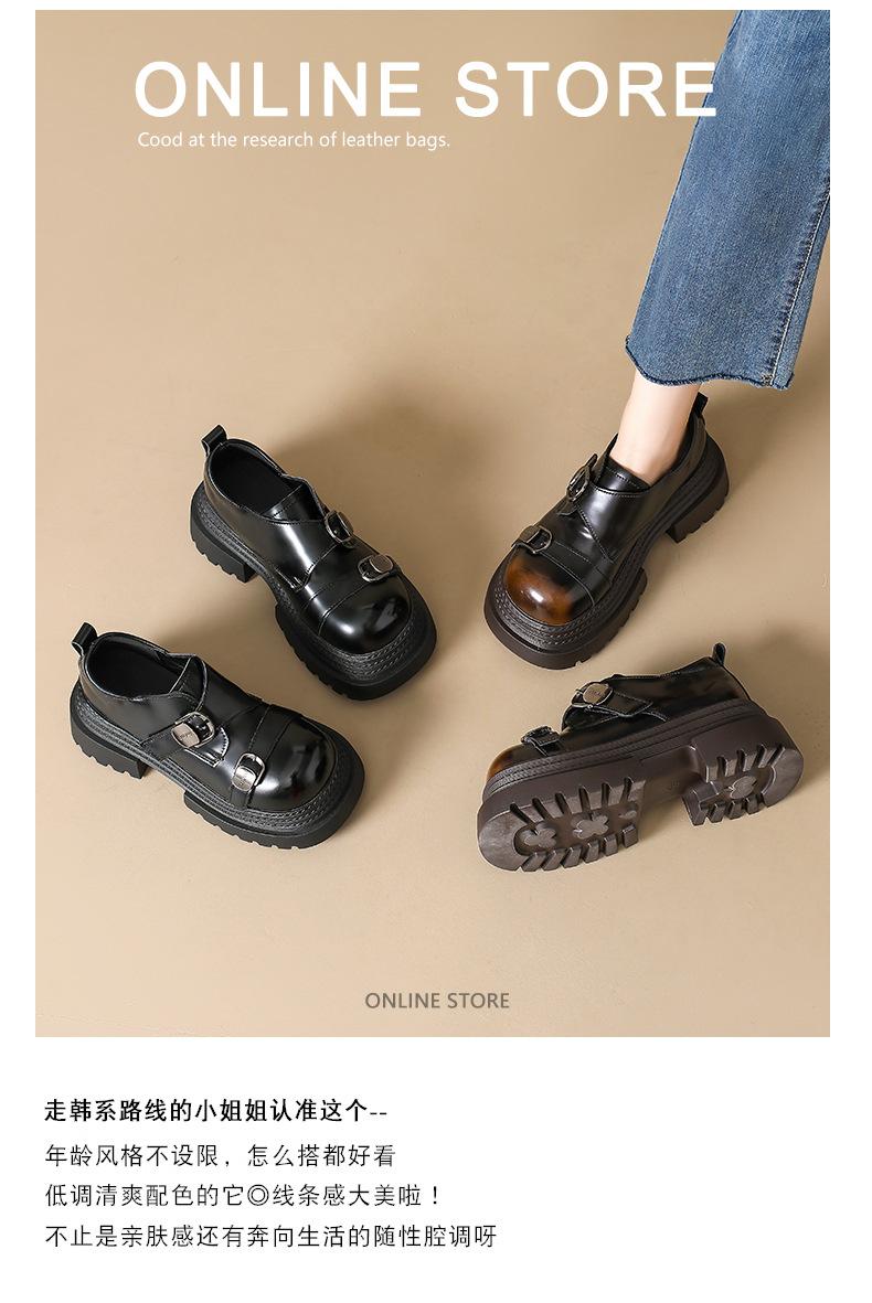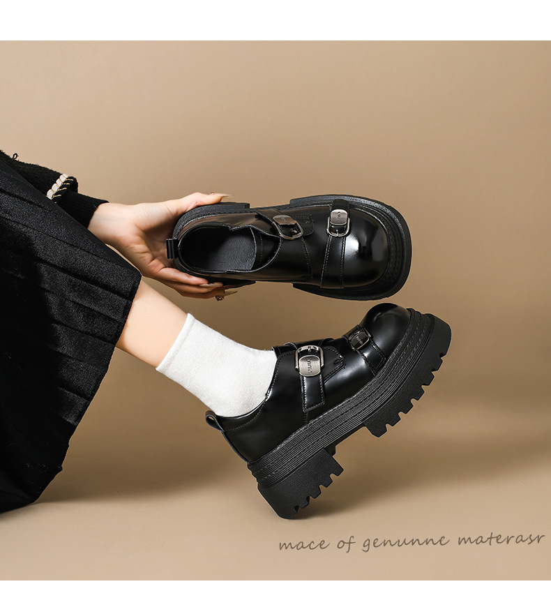 2025 봄 신상 아우터 영국 스타일 작은 가죽 신발 메리 제인 신발 여성 두꺼운 굽 두꺼운 밑창 높이 증가 로퍼 트렌디