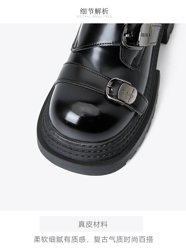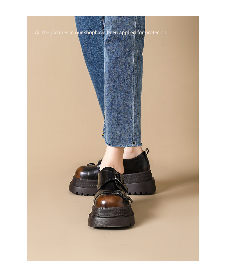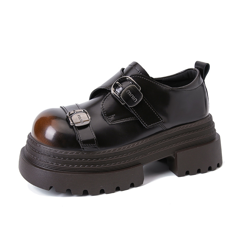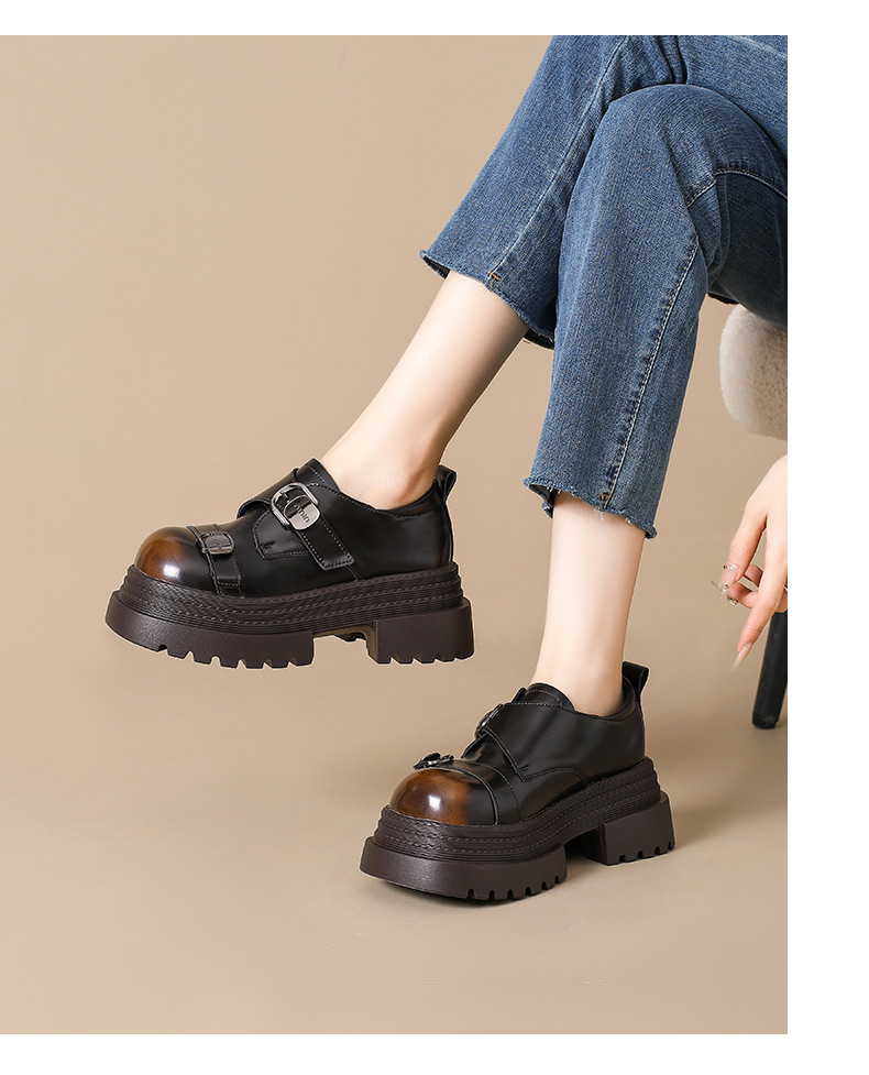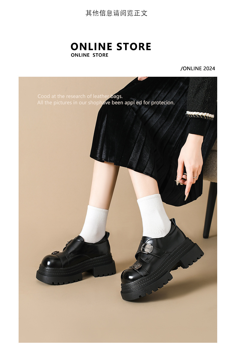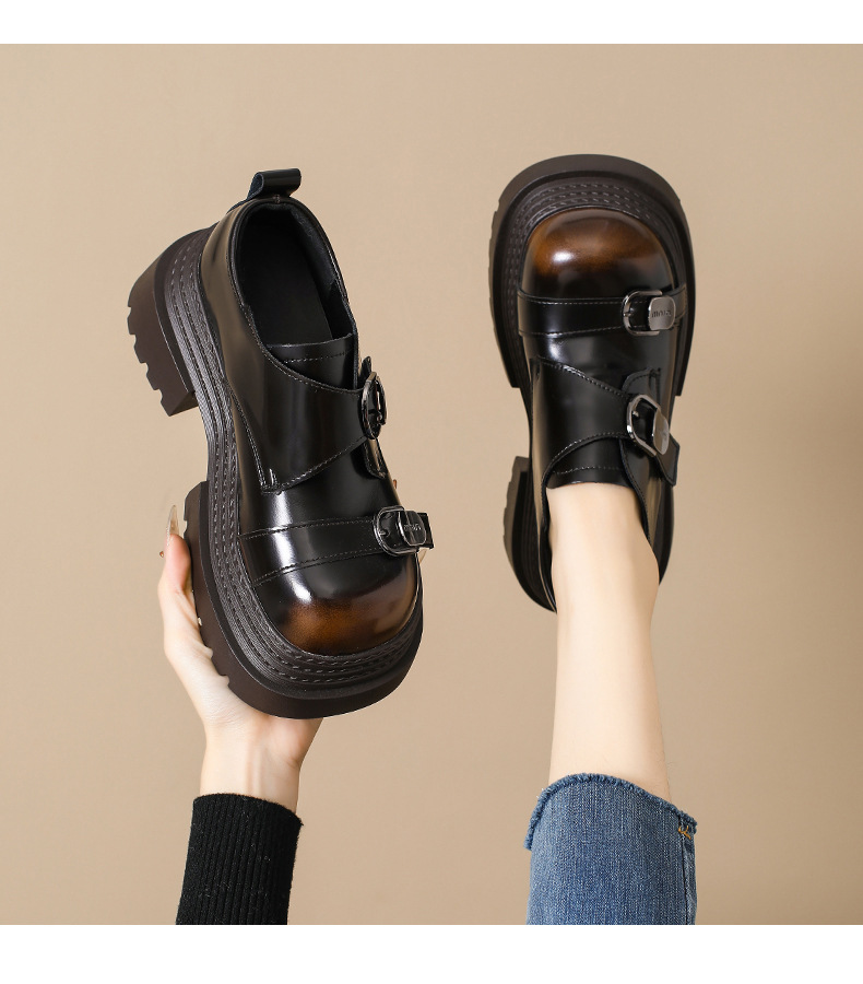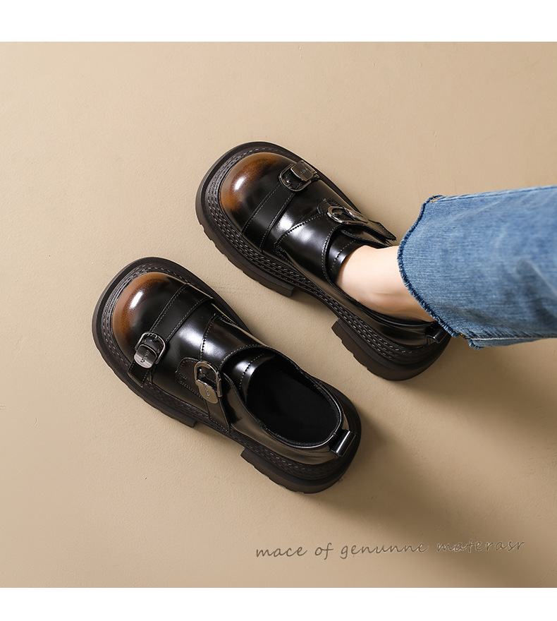 2025 봄 신상 아우터 영국 스타일 작은 가죽 신발 메리 제인 신발 여성 두꺼운 굽 두꺼운 밑창 높이 증가 로퍼 트렌디