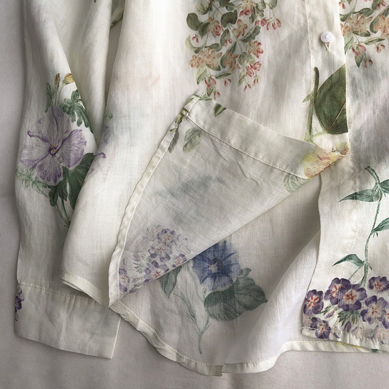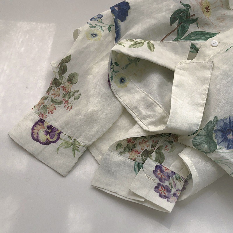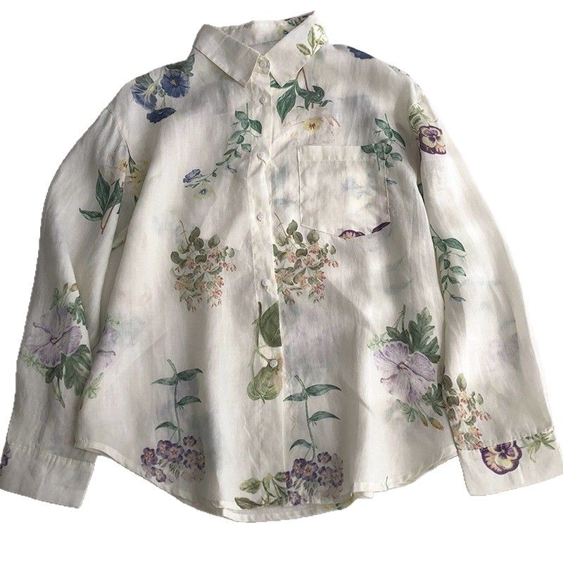 빈티지 인쇄 쉬폰 봄과 여름 얇은 캐주얼 셔츠 여성용 옷깃 긴 소매 모든 썬 스크린 카디건 외부 착용 탑