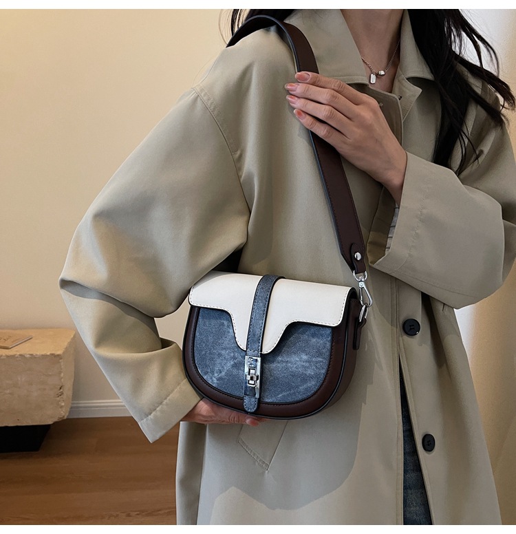 여성을위한 프랑스 틈새 가방 2025 여름 새로운 스타일 하이 엔드 서양식 어깨 크로스 바디 백 pu 컬러 매칭 안장 가방