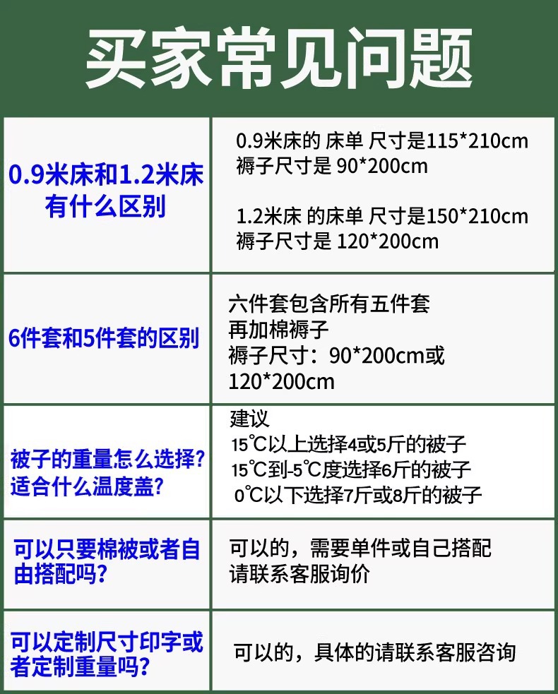 1.2m 싱글 침대 4kg 6피스 이불 세트