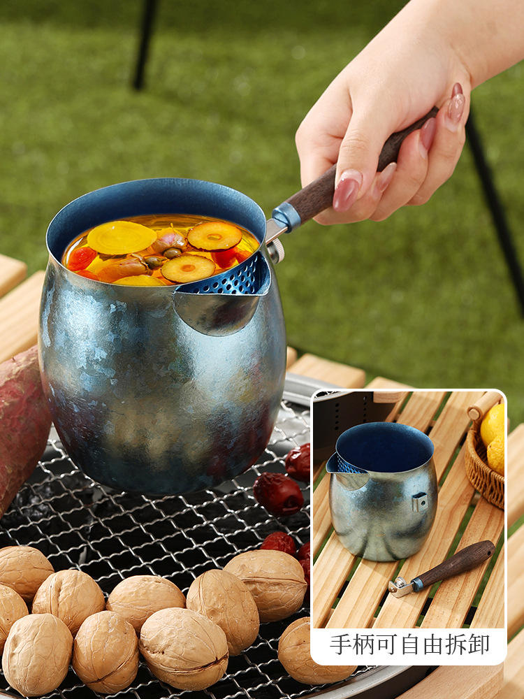 나무 손잡이가 달린 순수 티타늄 소쿠리