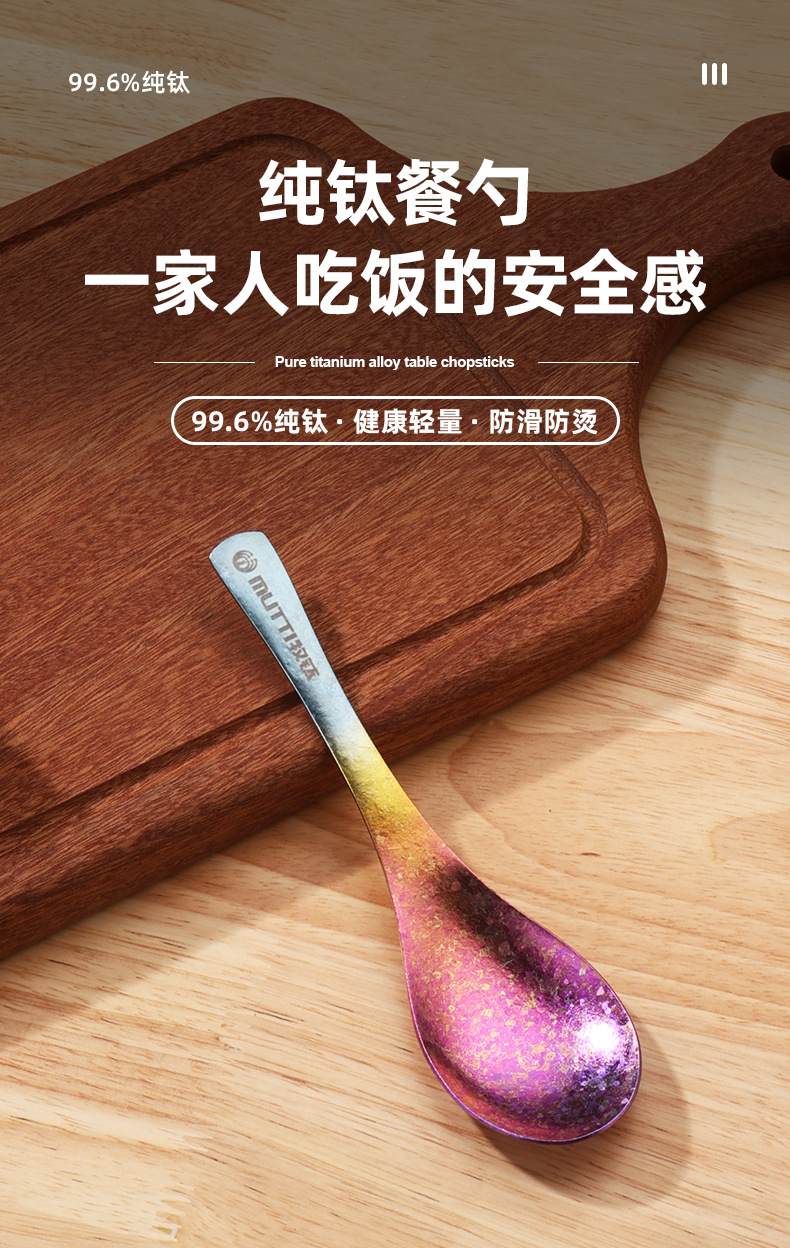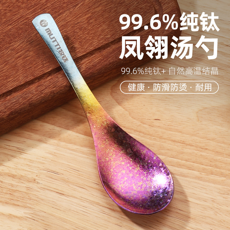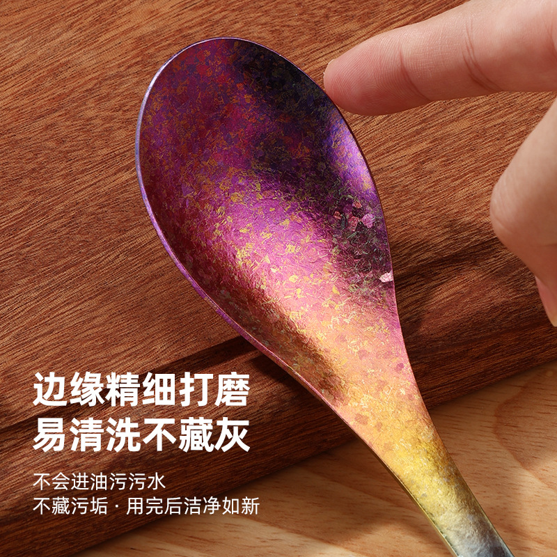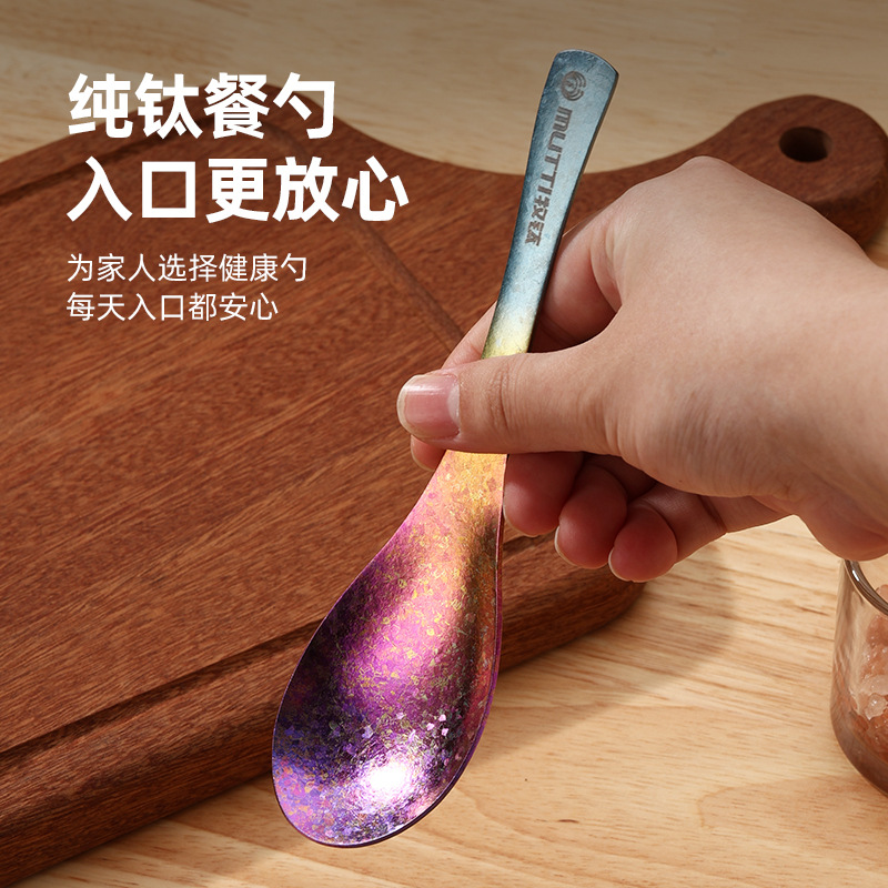 목티 순수 티타늄 젓가락 가정용 야외 티타늄 합금 티타늄 스푼 풀 티타늄 티타늄 포크 스푼 크리스탈 컬러 고가치 식기