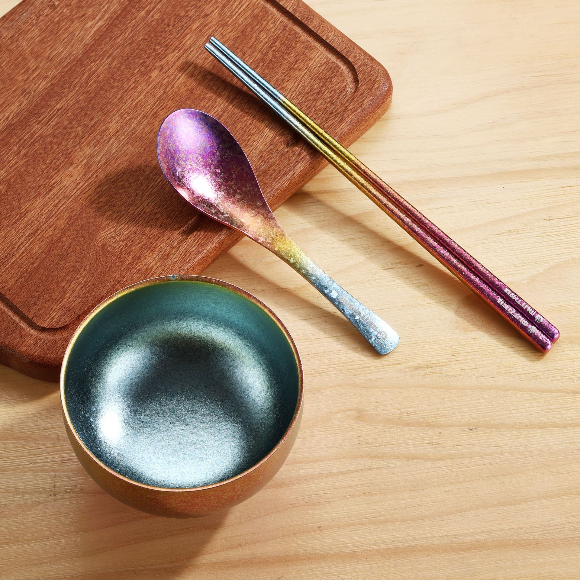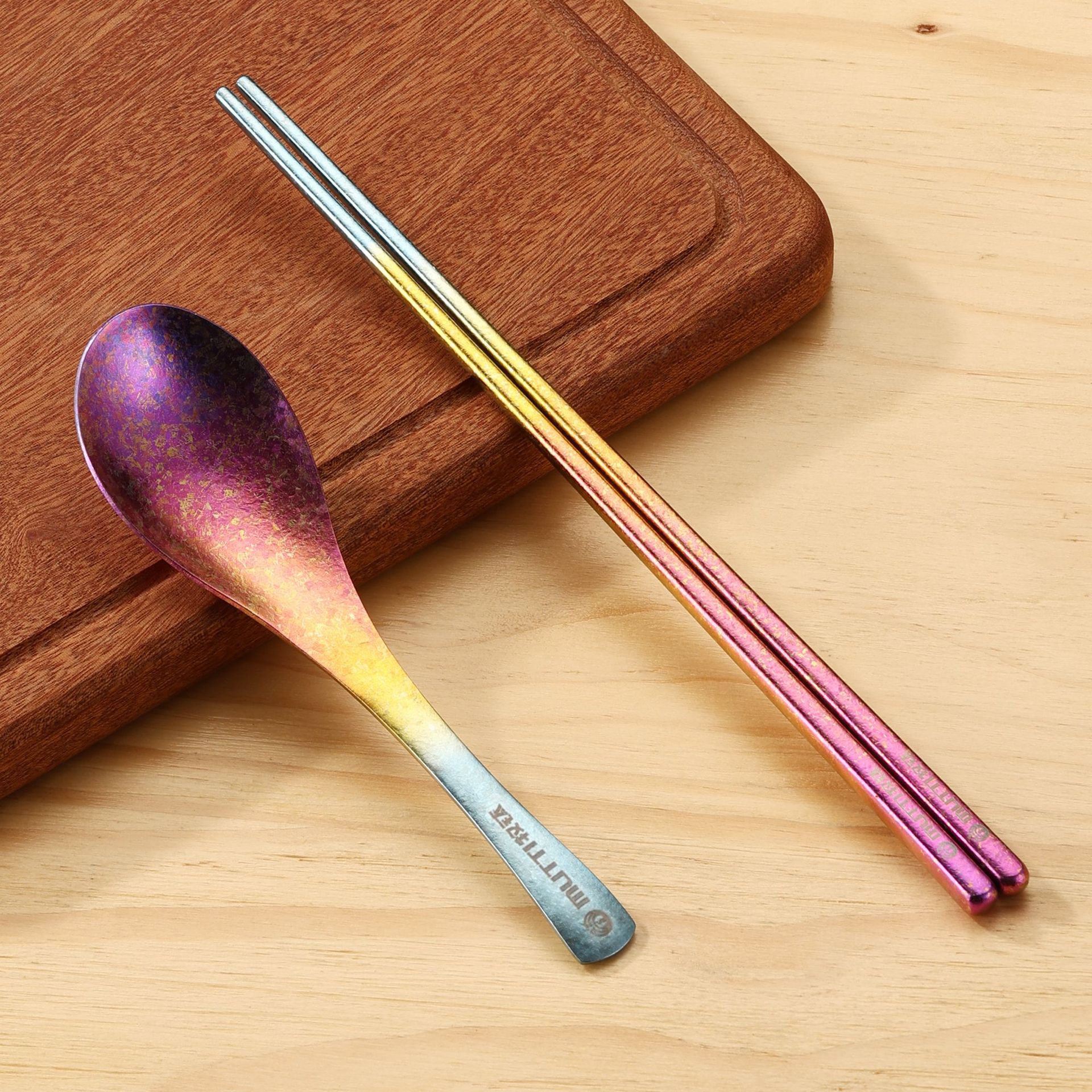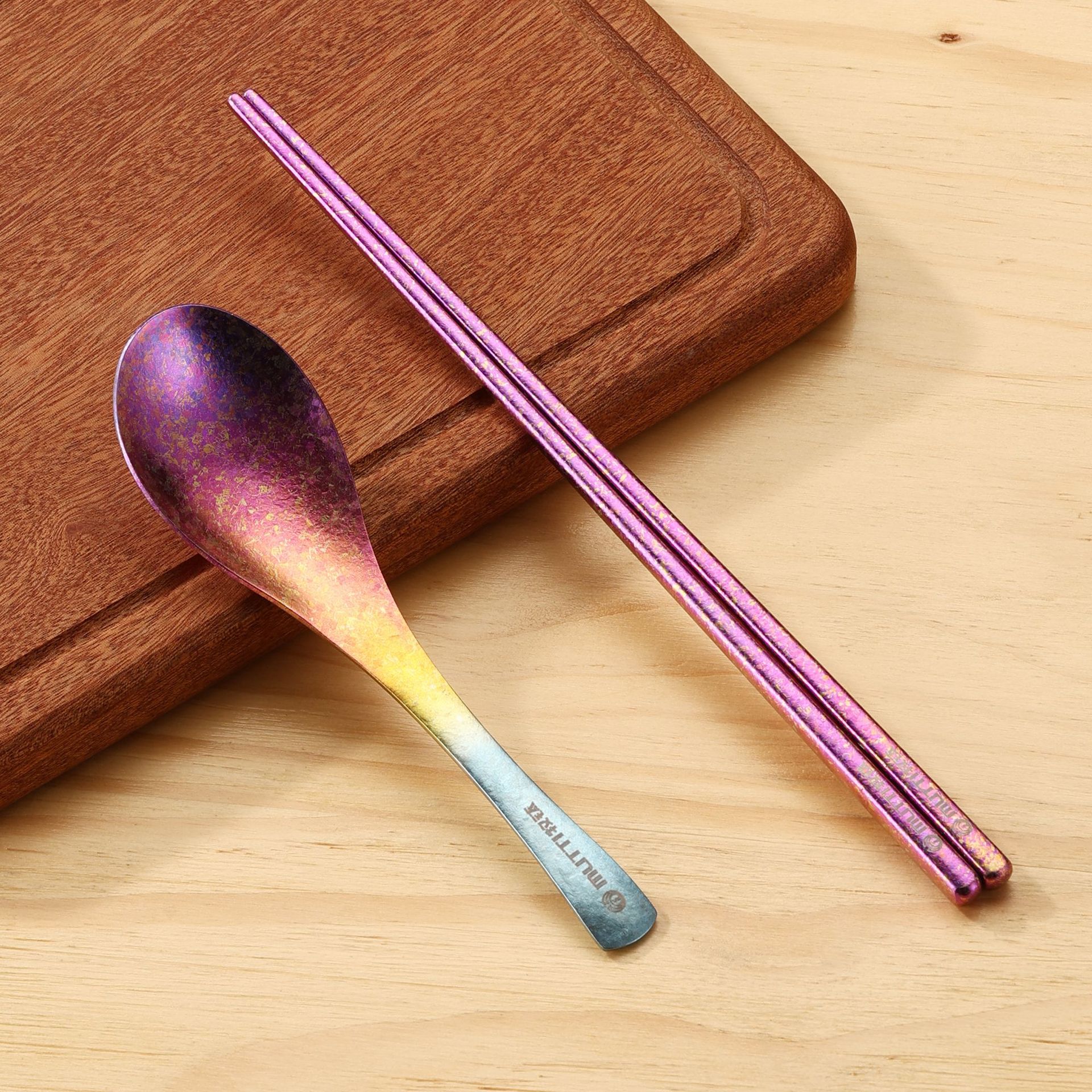 목티 순수 티타늄 젓가락 가정용 야외 티타늄 합금 티타늄 스푼 풀 티타늄 티타늄 포크 스푼 크리스탈 컬러 고가치 식기