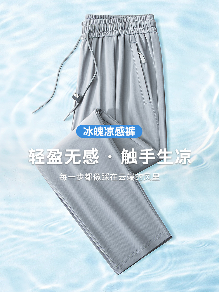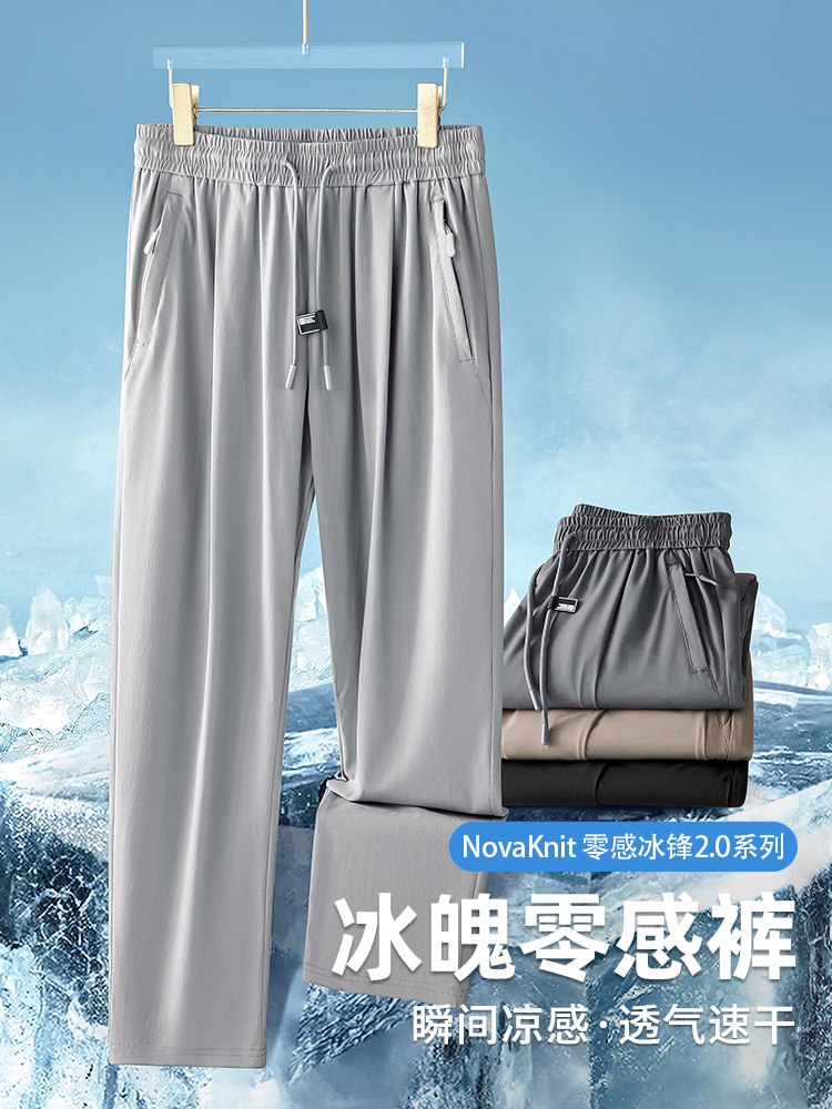 【아이스 스피릿 속건 팬츠】포켓 지퍼 여름 시원한 스포츠 남성용 고급 캐주얼 스트레이트 롱 팬츠 2026 신상