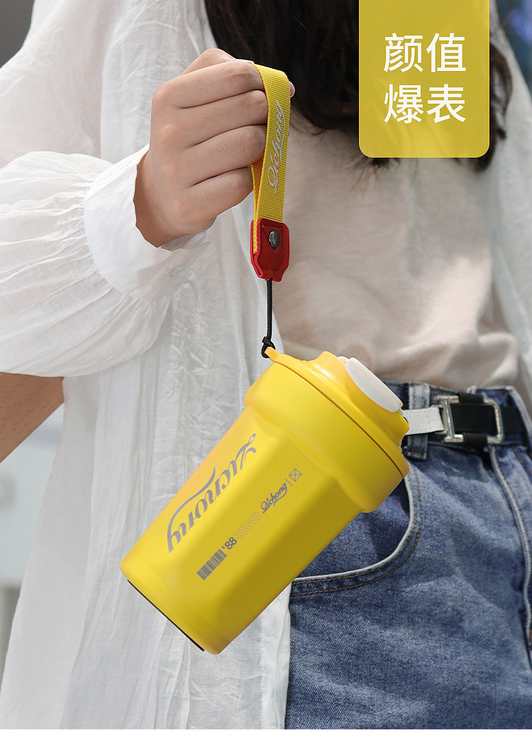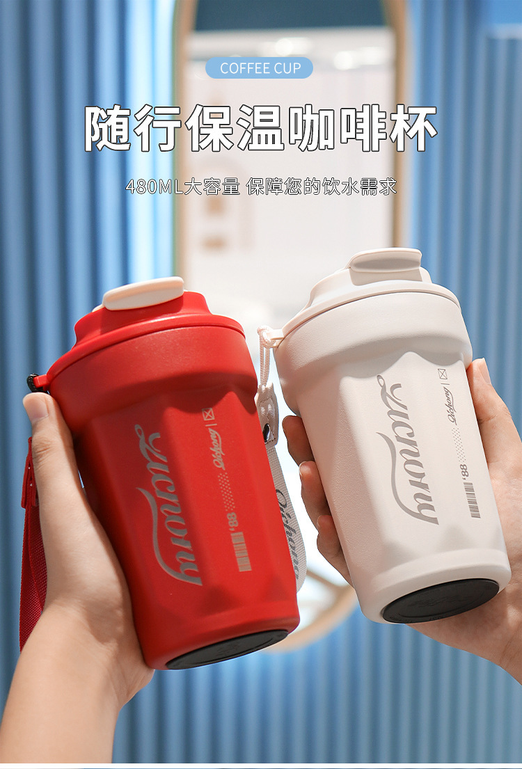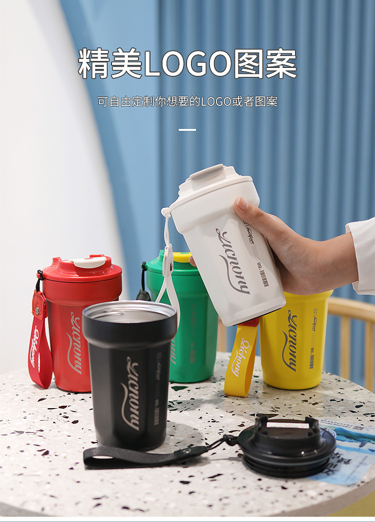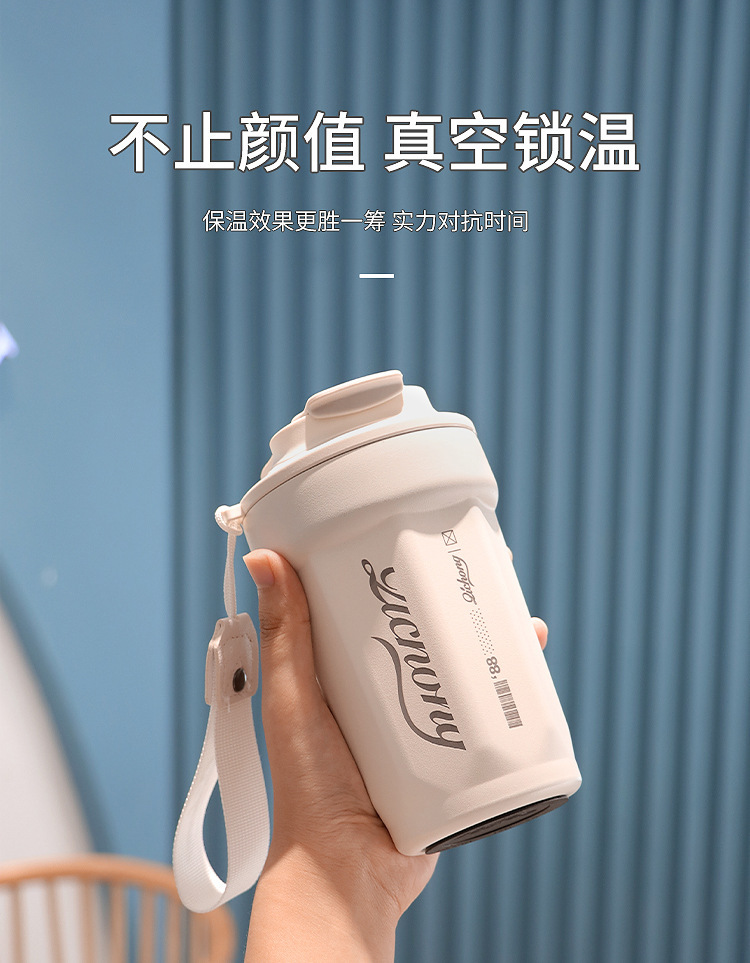고급스러운 316 스테인레스 스틸 팔각형 커피 컵, 끈이 달린 진공 단열 컵, 휴대용 자동차 텀블러