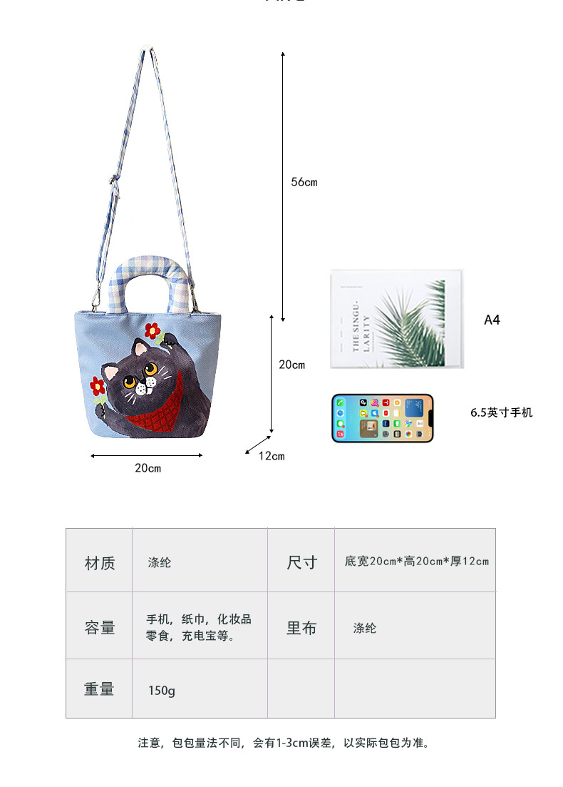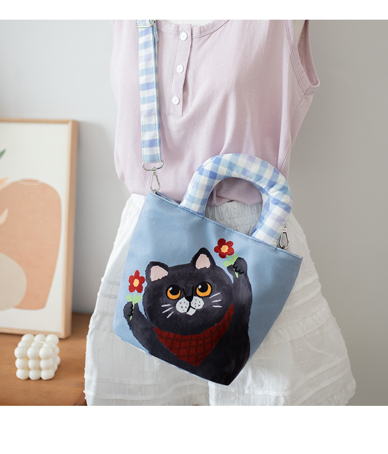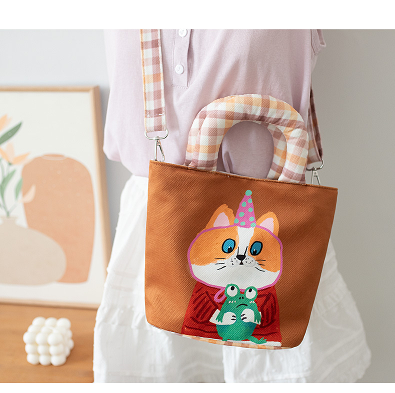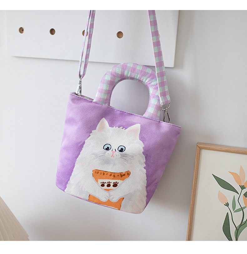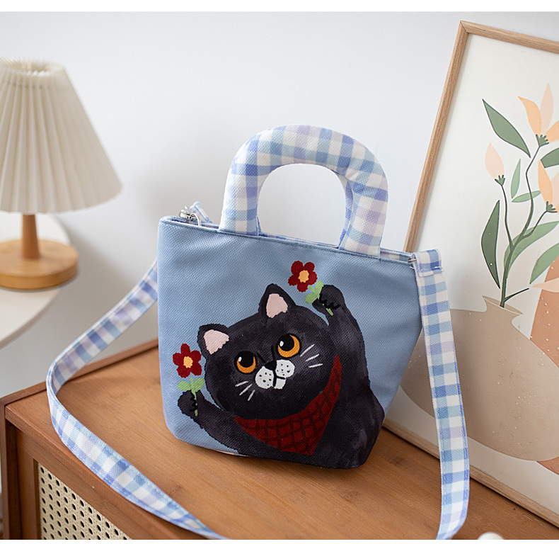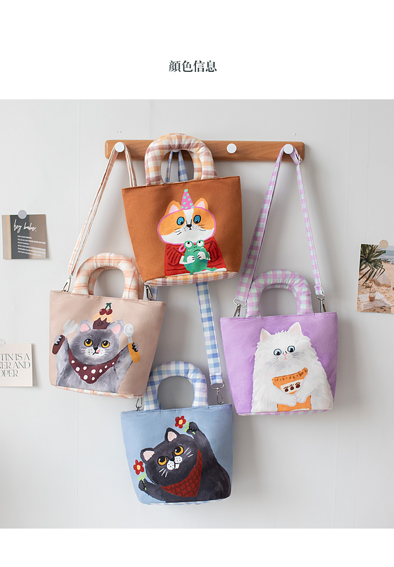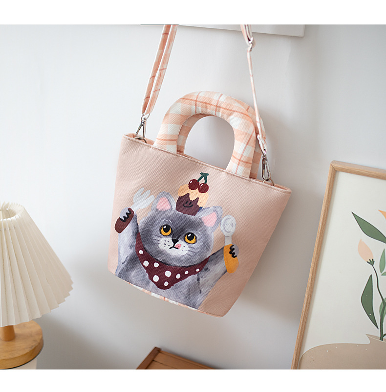 만화 캔버스 여성 패션 작업 가방 미라 휴대용 귀여운 Kt 고양이 천 가방 단일 어깨 작은 천 가방