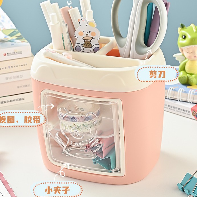 귀여운 학생 펜 코너 대용량 데스크탑 홈 오피스 문구 저장 배럴 다기능 화장품 브러시 보관 상자