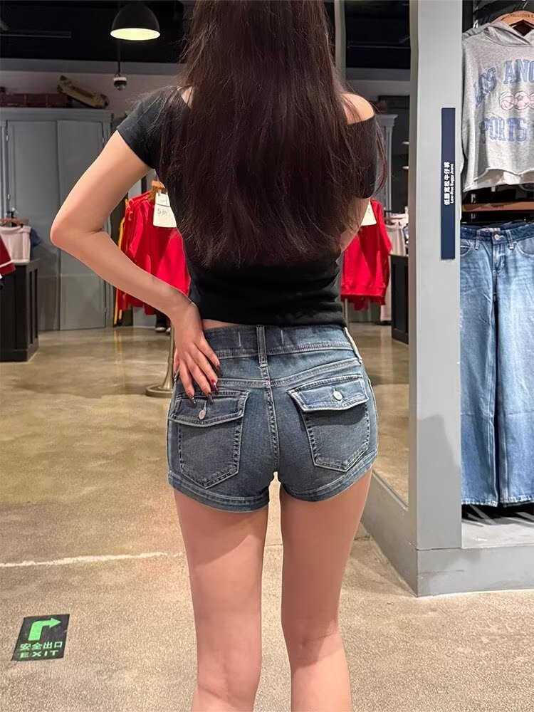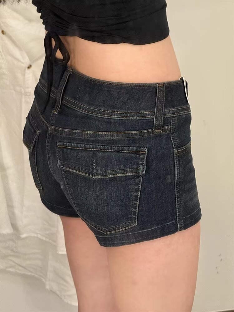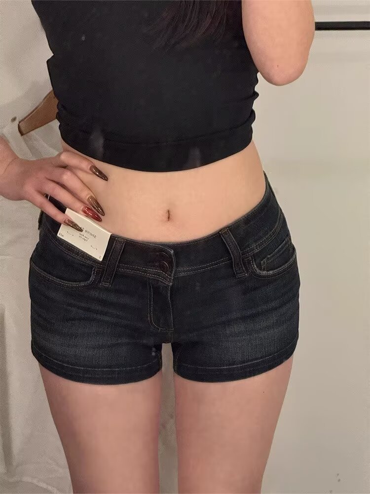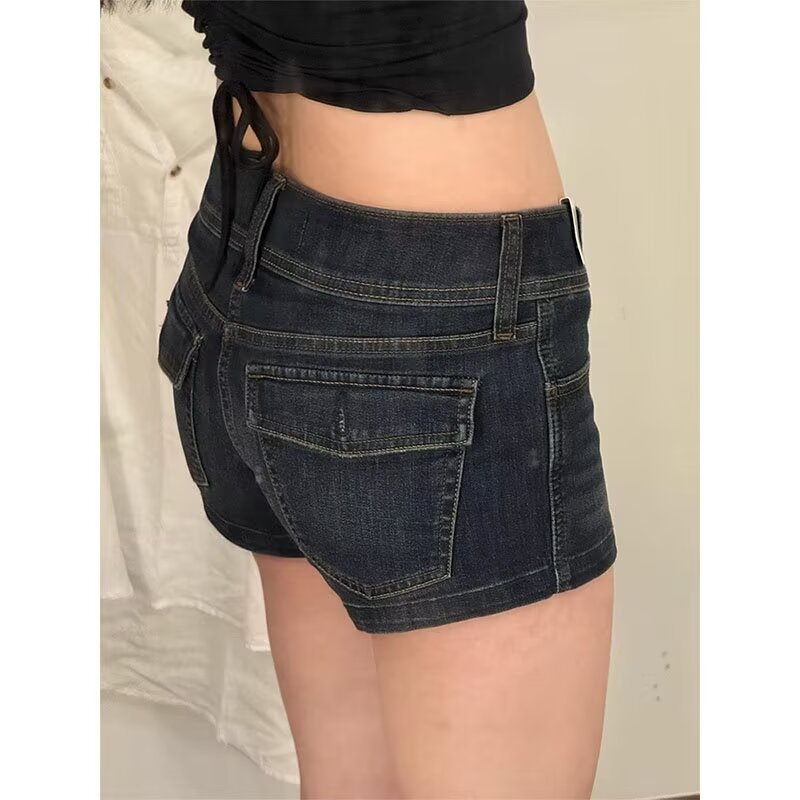 Hot Girl 슬림 로우 웨이스트 스트레치 데님 반바지 여성 여름 새로운 진한 파란색 꽉 엉덩이 바지 짧은 핫 바지 여성