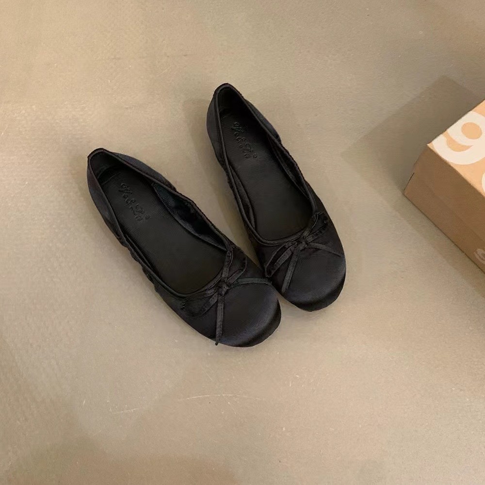 한국 인 새틴 프렌치 슈즈 여성 2025 신작 보우 발레 플랫 슈즈 얕은 입 할머니 신발