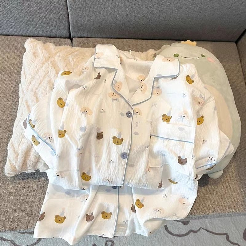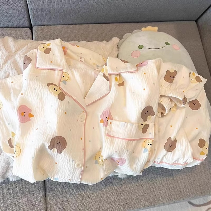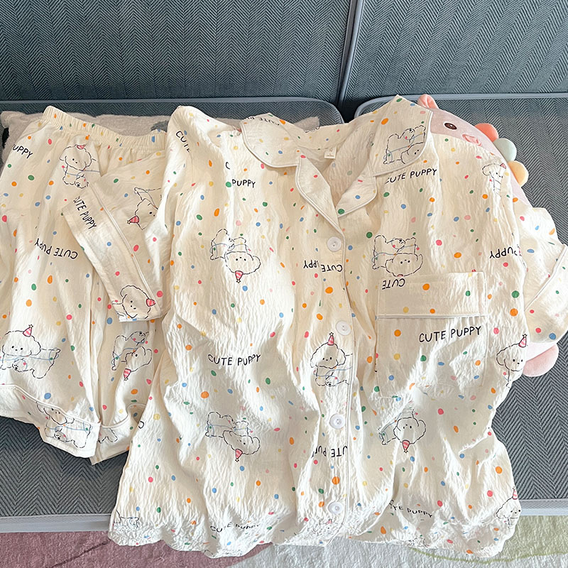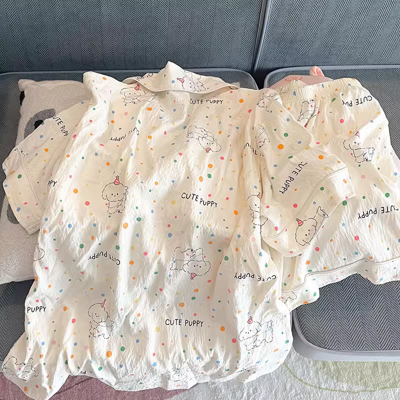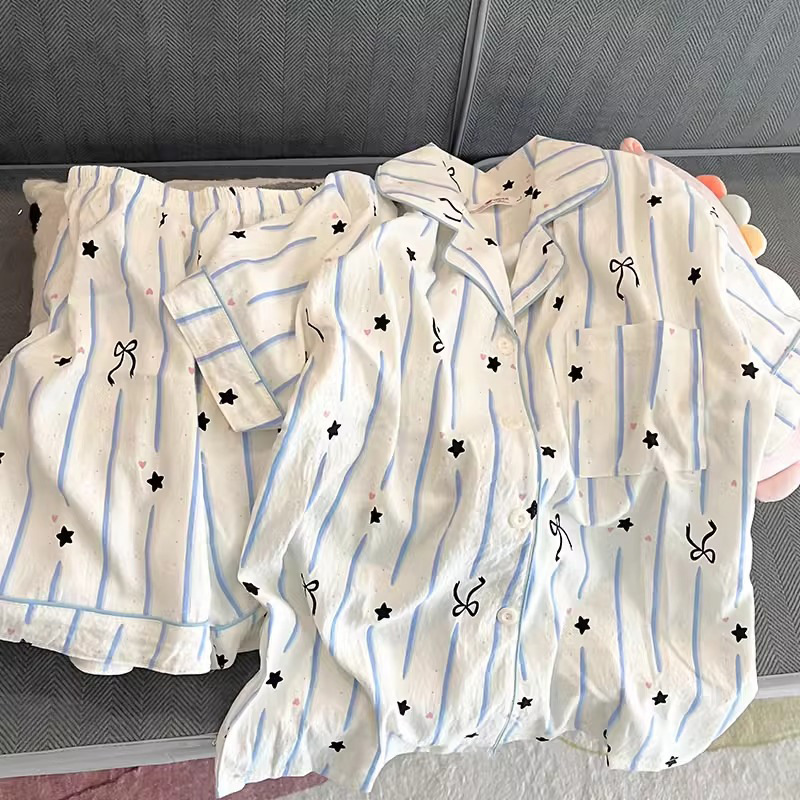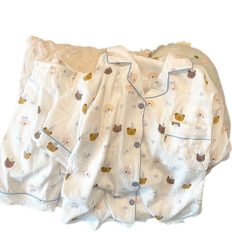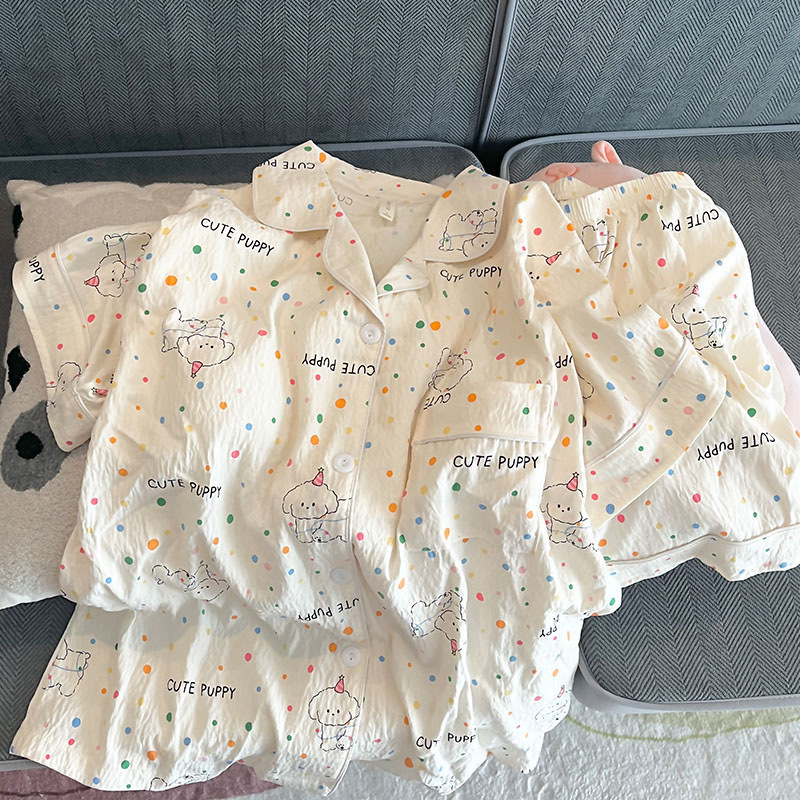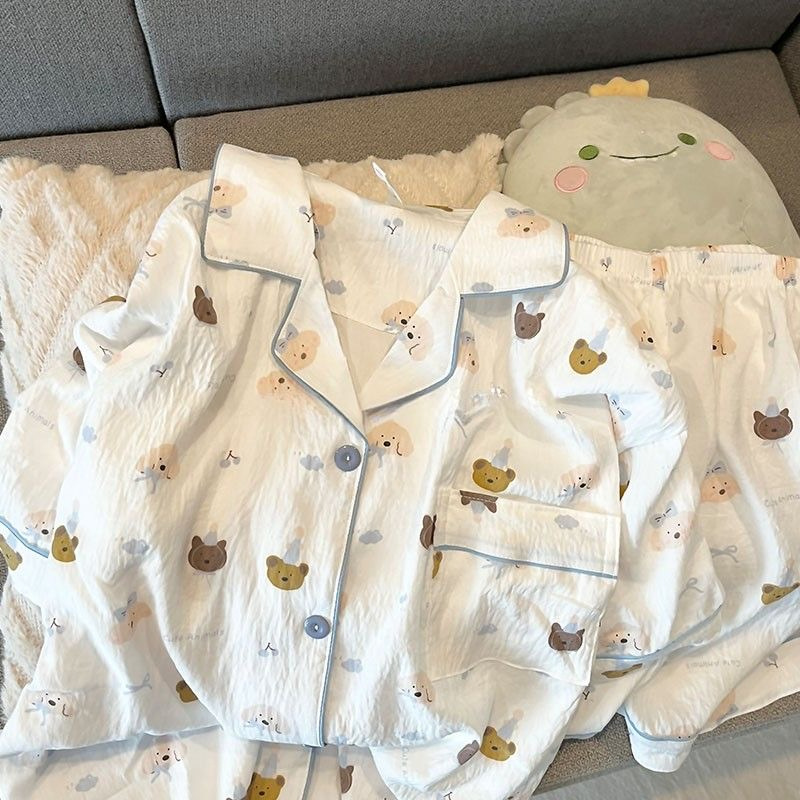 대외 무역 2025 새로운 구름 면화 잠옷 여성의 여름 짧은 소매 달콤한 귀여운 학생 홈 옷 편안하고 세트