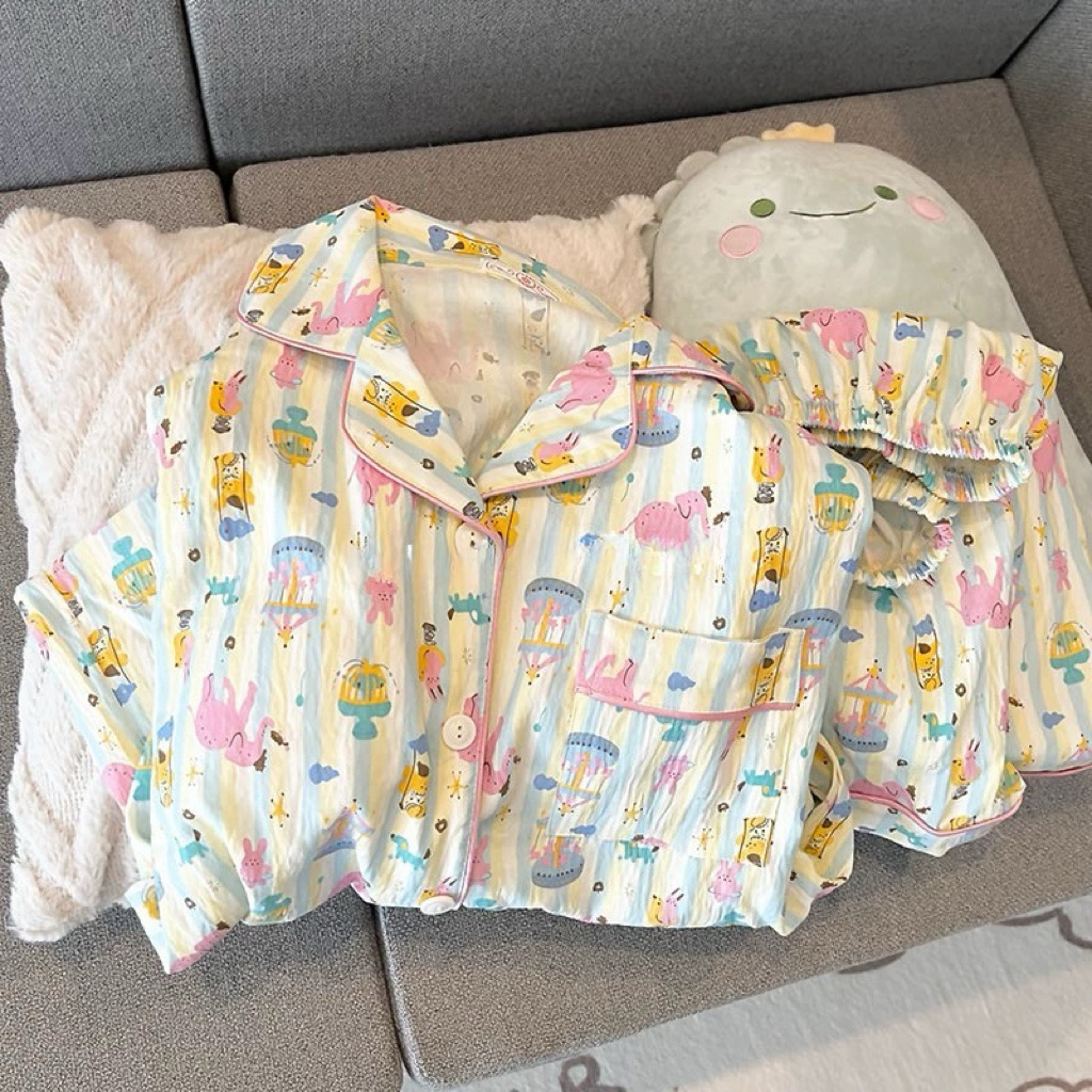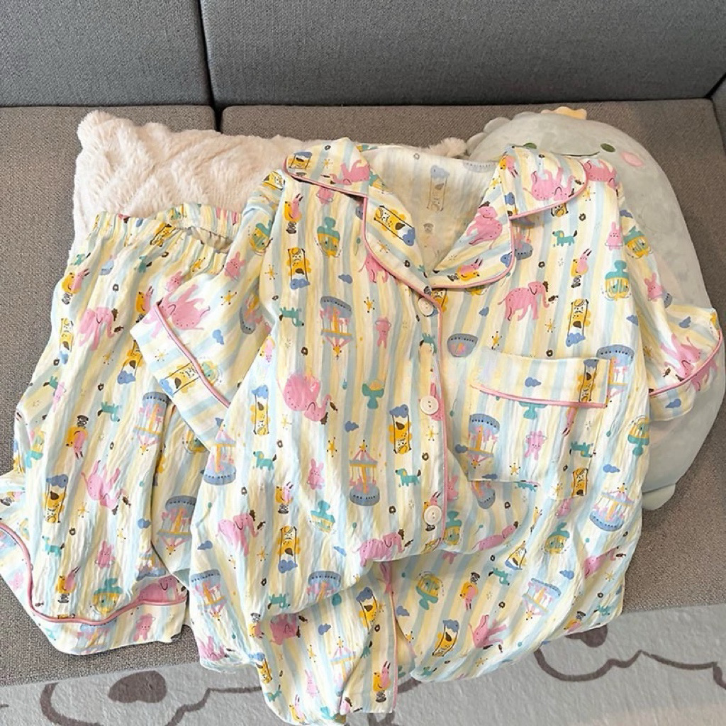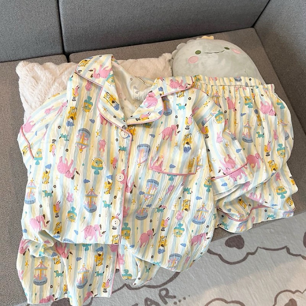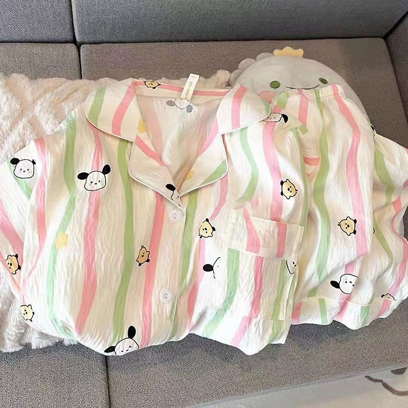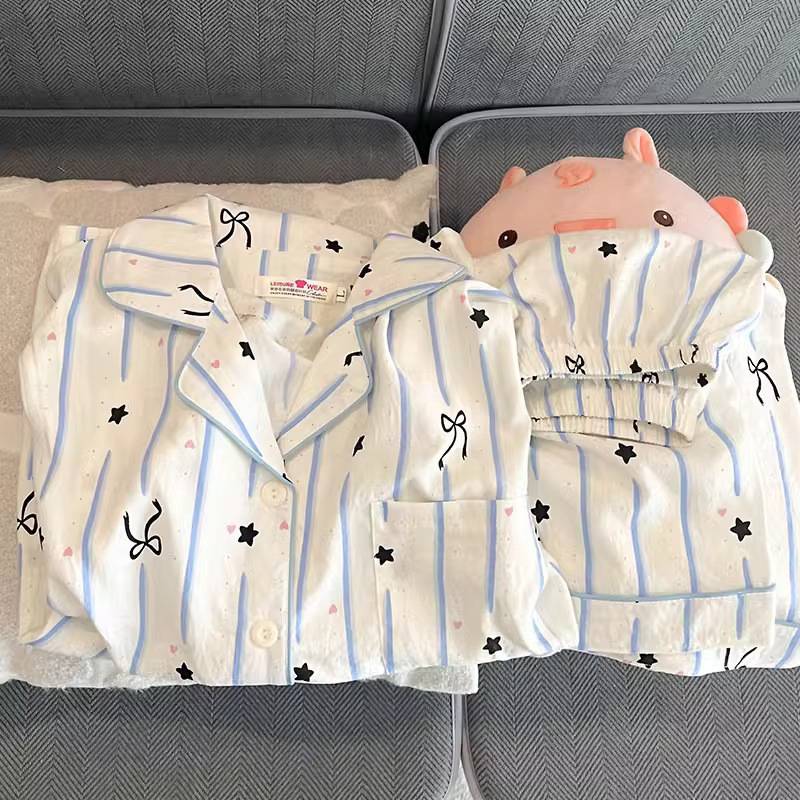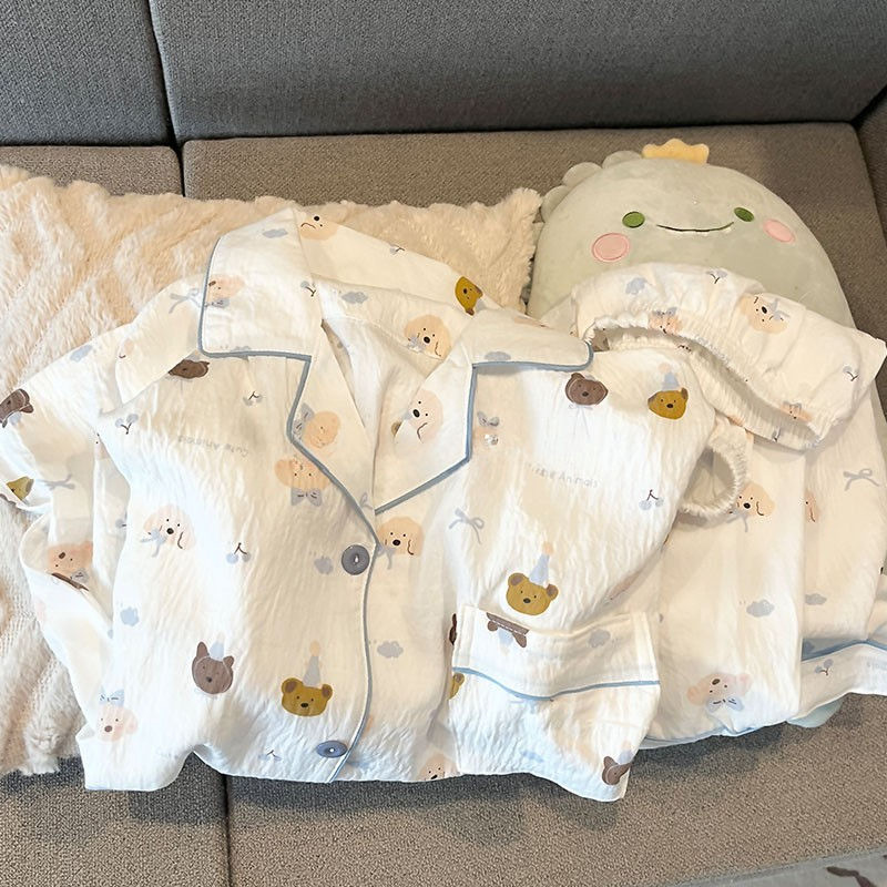 대외 무역 2025 새로운 구름 면화 잠옷 여성의 여름 짧은 소매 달콤한 귀여운 학생 홈 옷 편안하고 세트