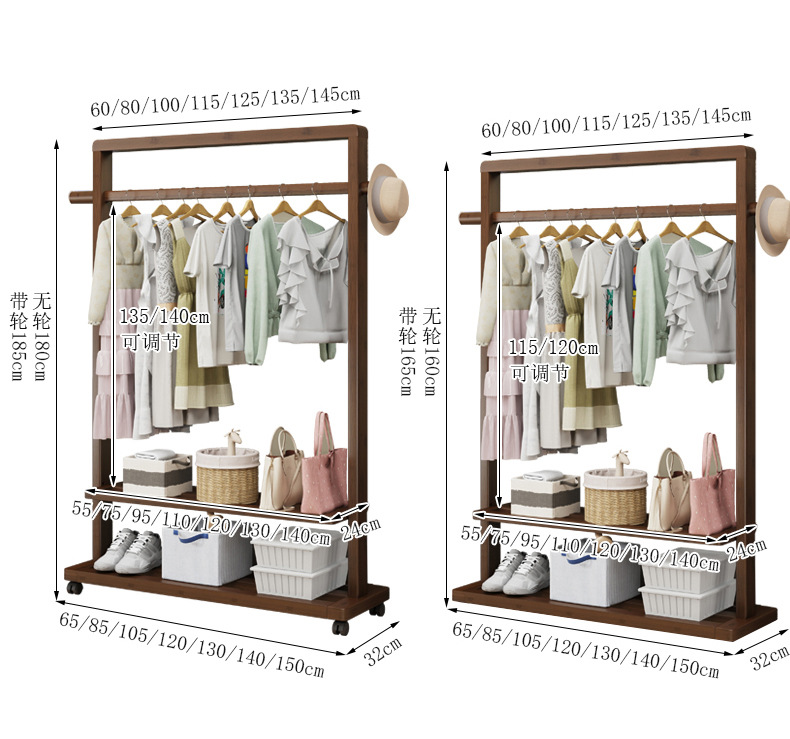 월넛색상 높이 165 길이 140 옷걸이(바퀴포함)