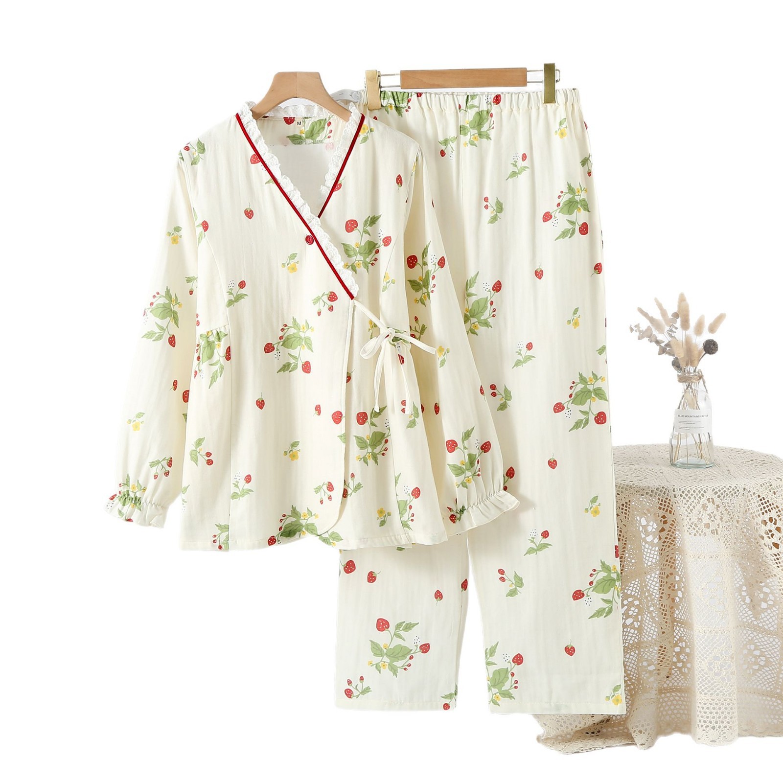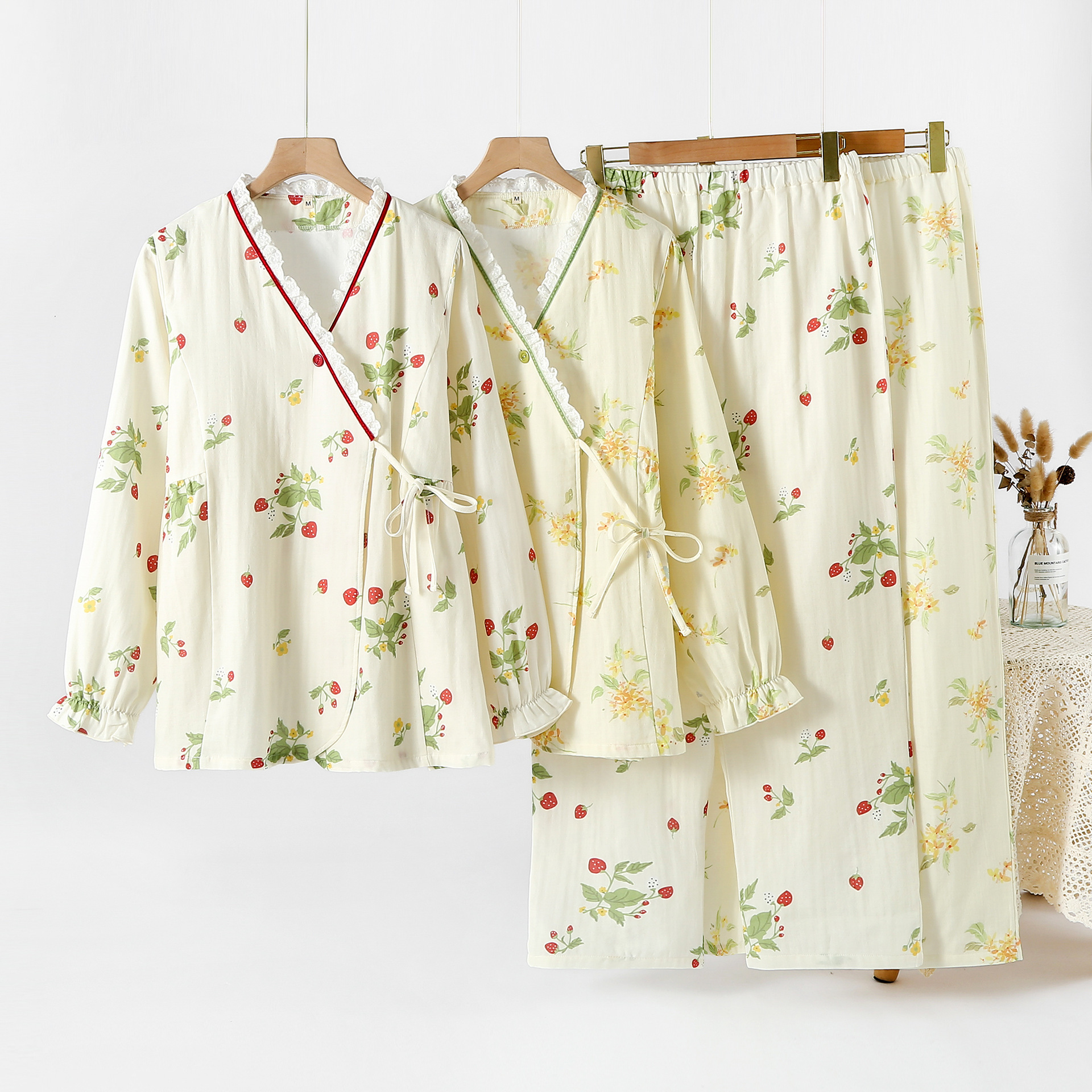 코튼 더블 거즈 기모노 사계절 얇은 산후 모성 수유 임신 여성 잠옷 여성 홈 의류