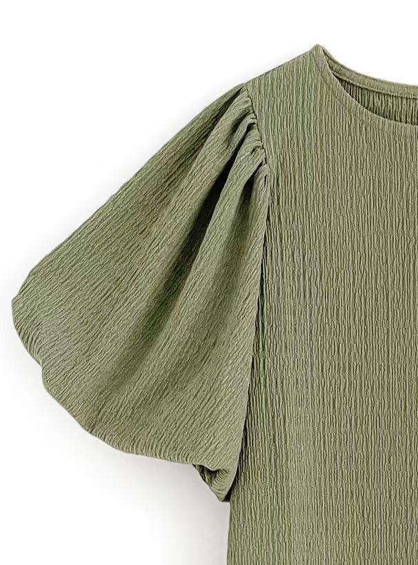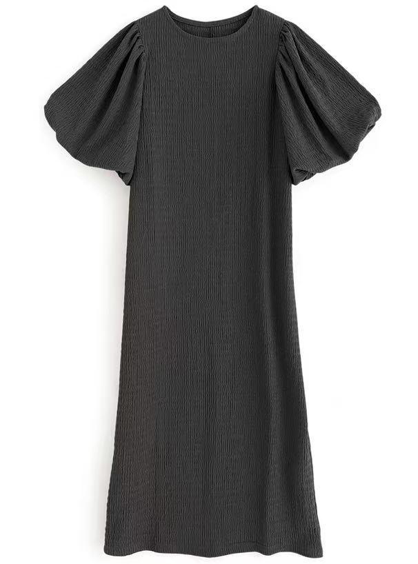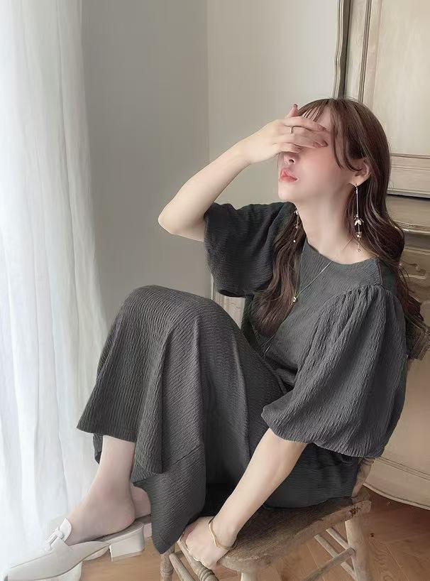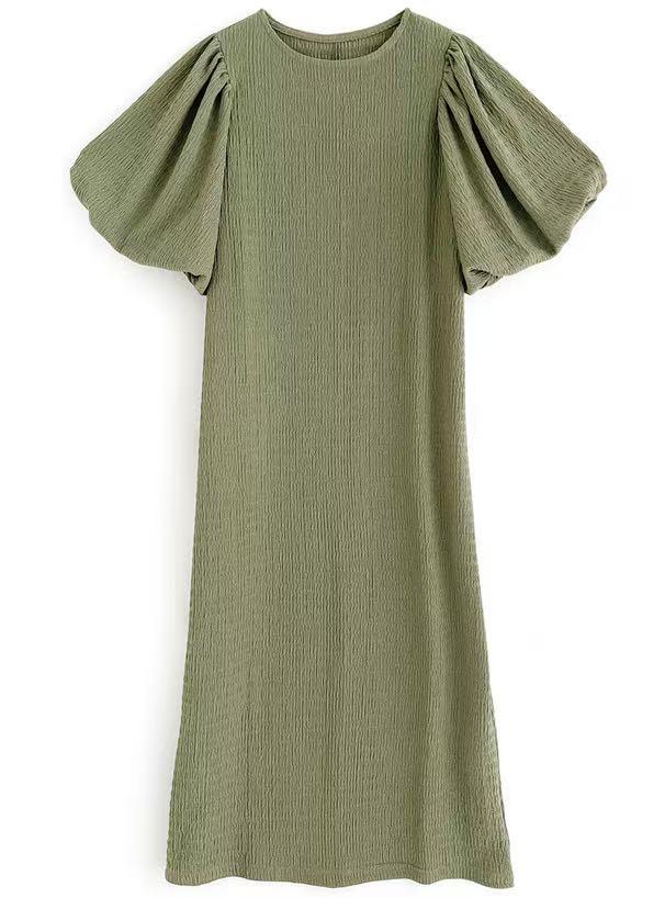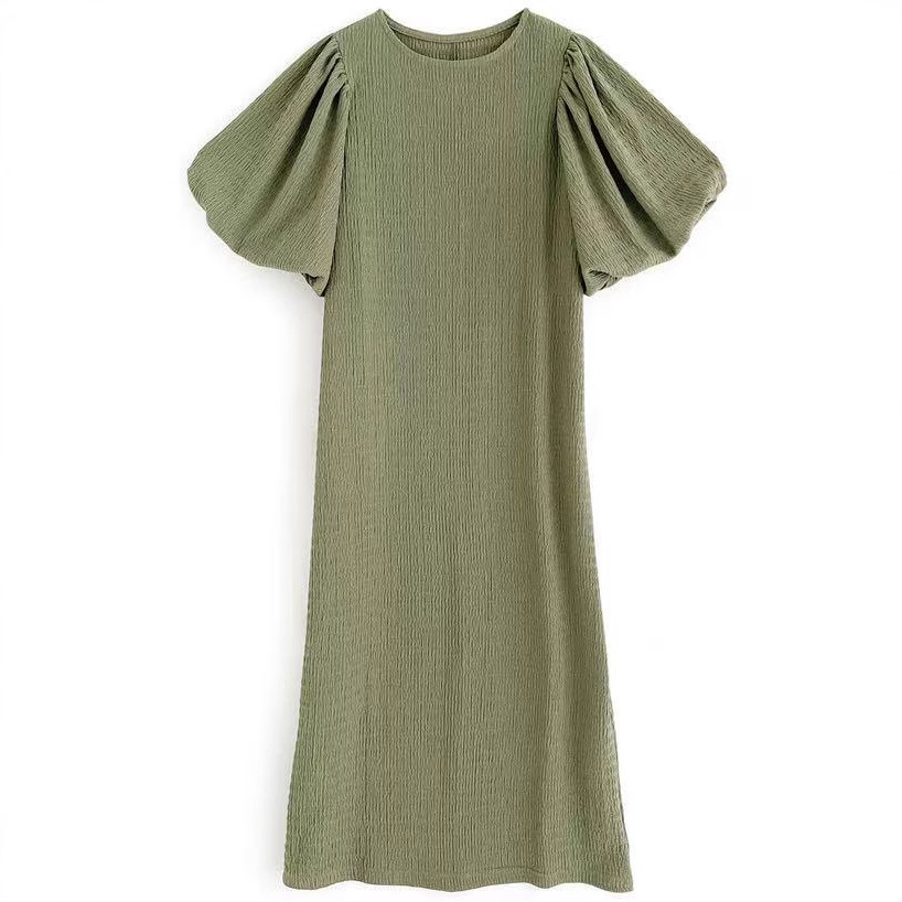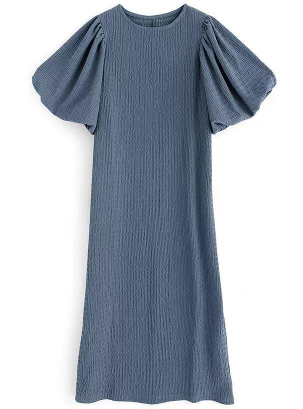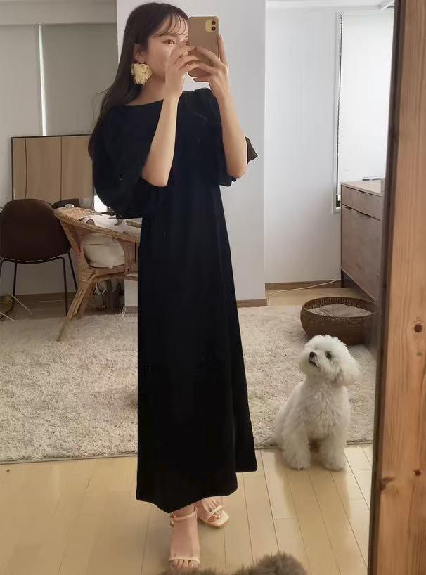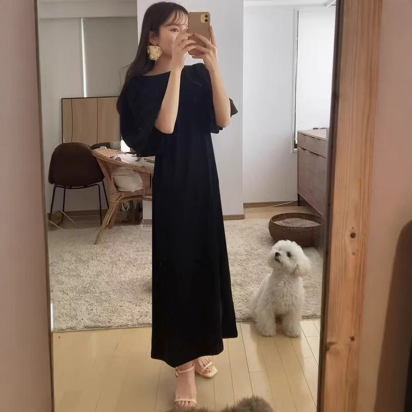 일본 한국 봄 여름 달콤한 느슨한 기질 비치 스커트 롱 스커트 퍼프 슬리브 반팔 라운드 넥 캐주얼 드레스 여성용