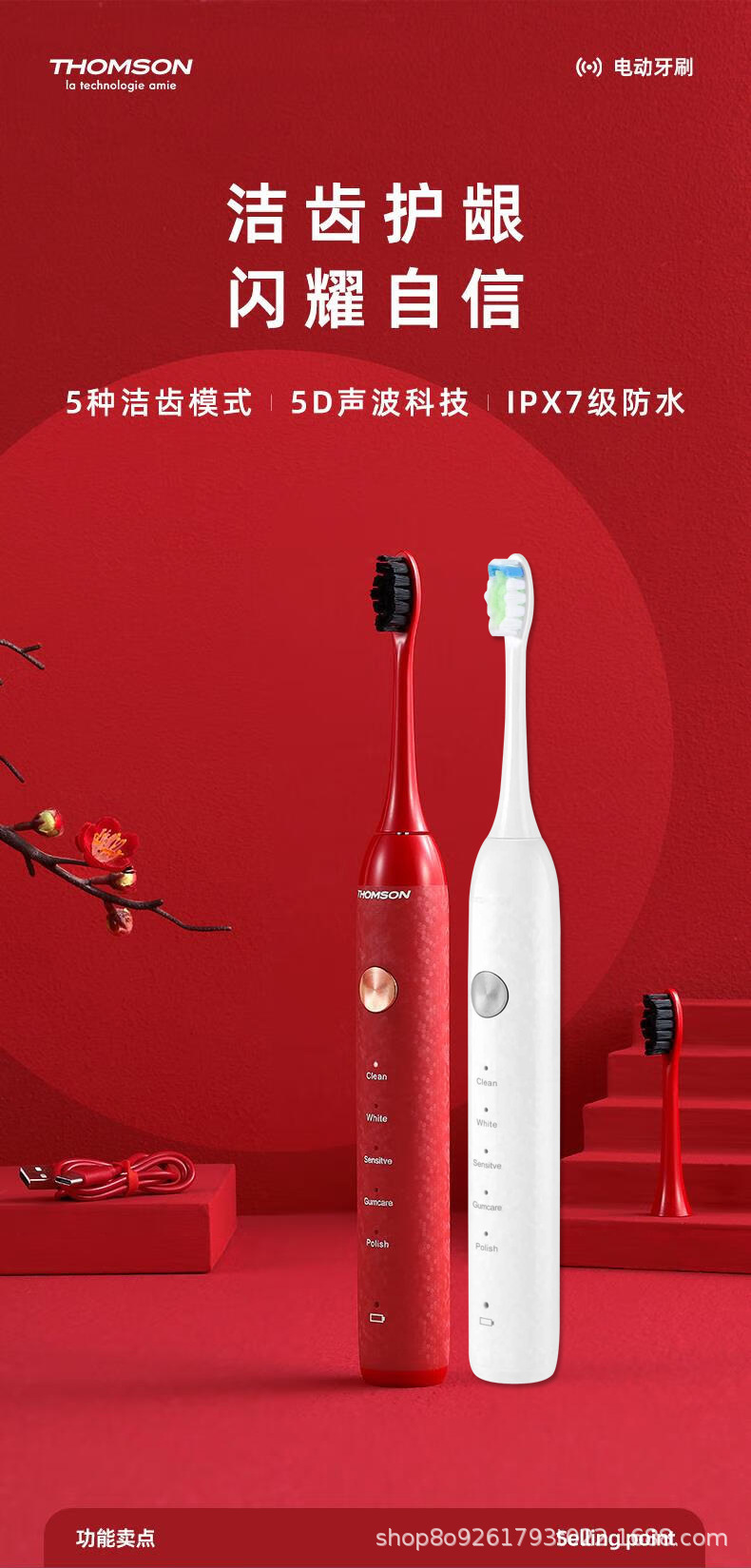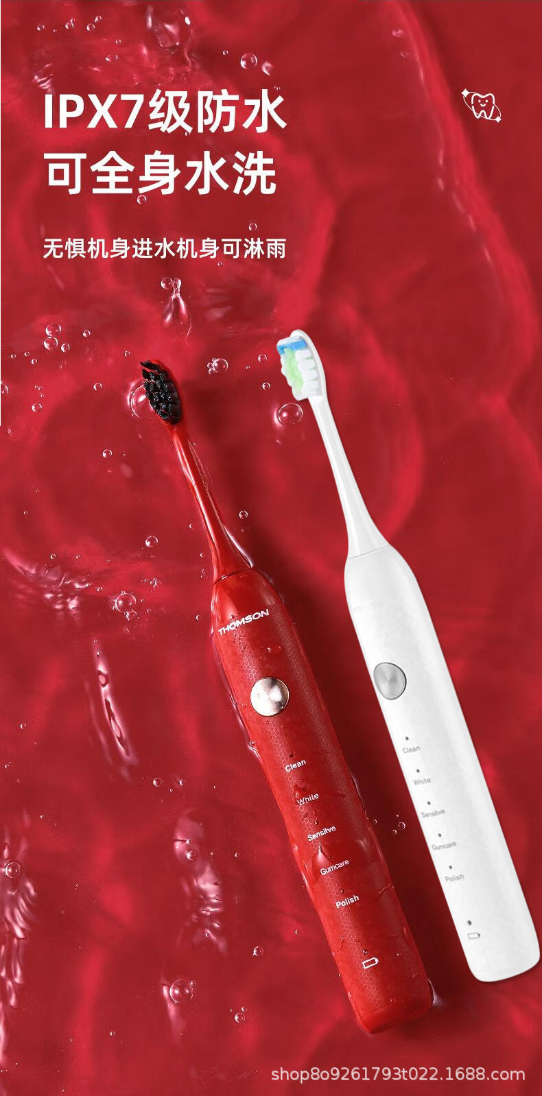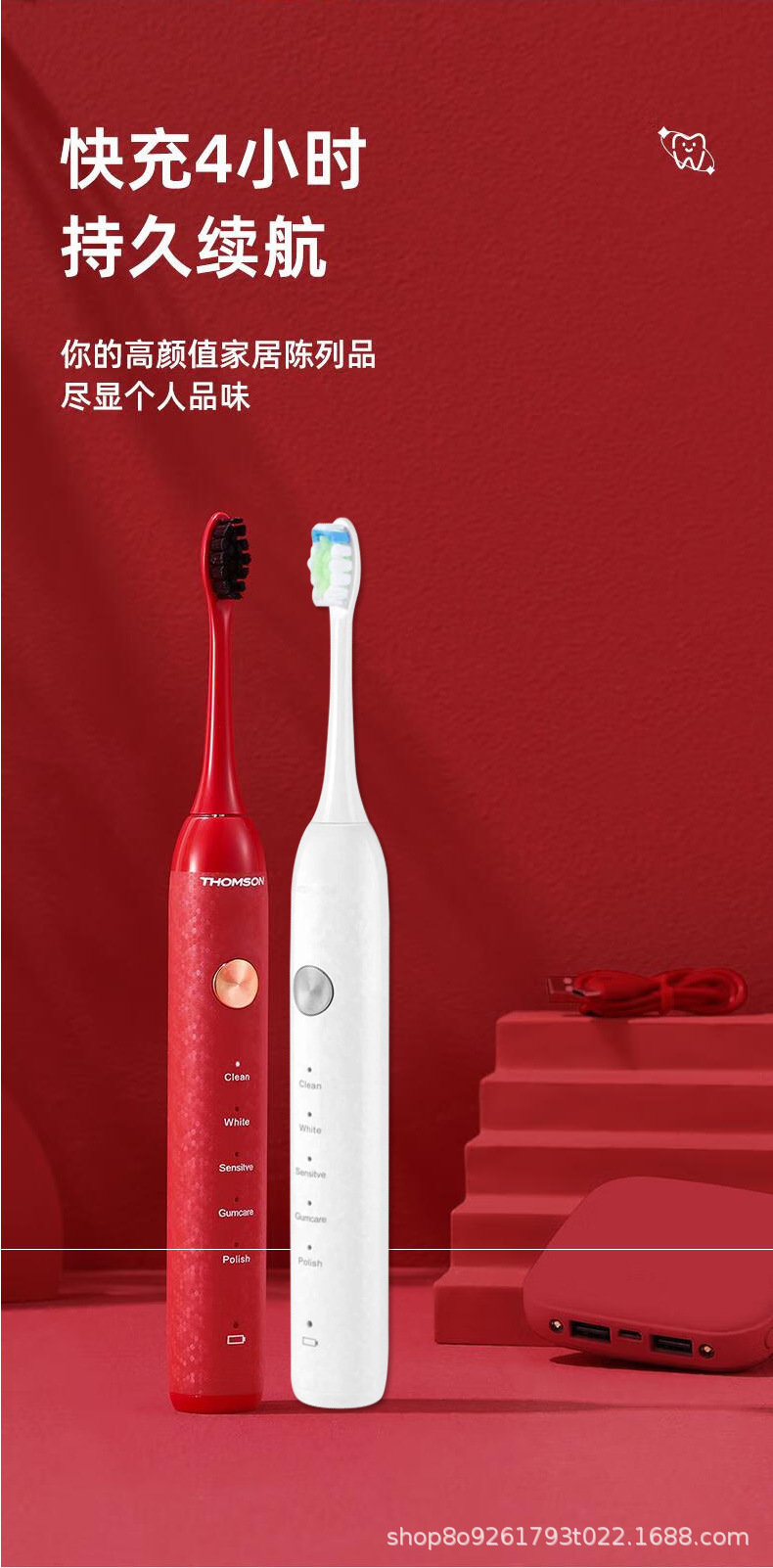THOMSON 프랑스 전동 칫솔 커플 남성과 여성 어린이 충전식 전신 세척 가능한 고급 부드러운 강모 칫솔 헤드 칫솔