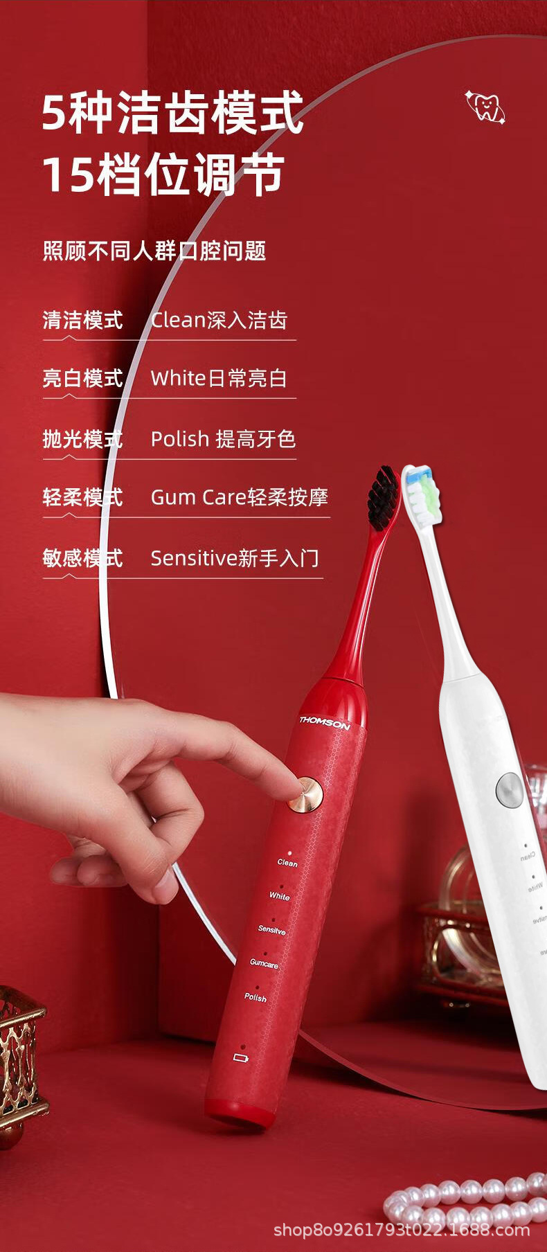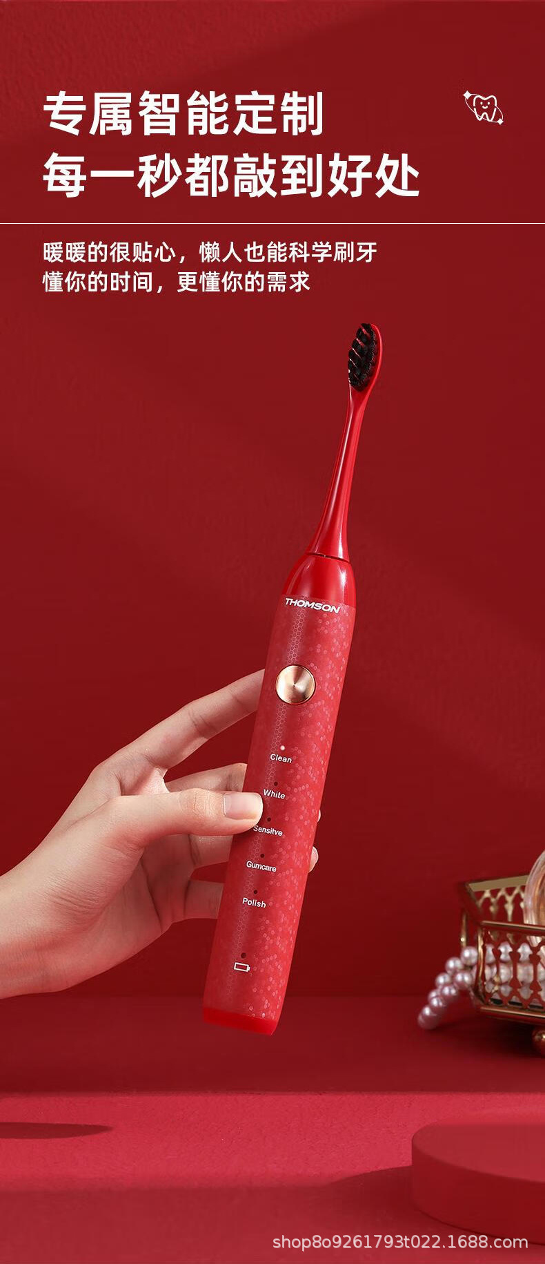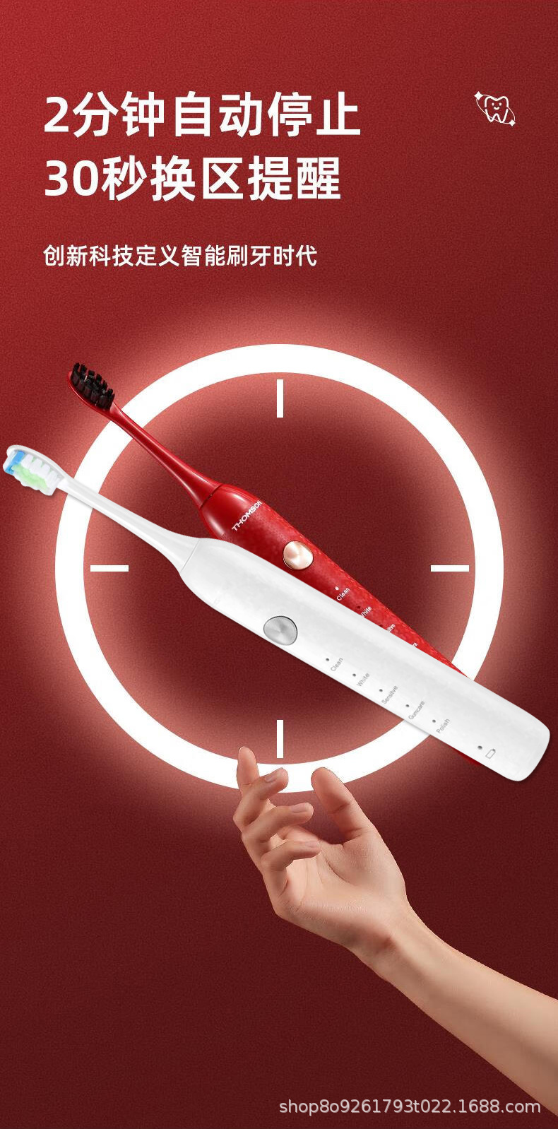 THOMSON 프랑스 전동 칫솔 커플 남성과 여성 어린이 충전식 전신 세척 가능한 고급 부드러운 강모 칫솔 헤드 칫솔