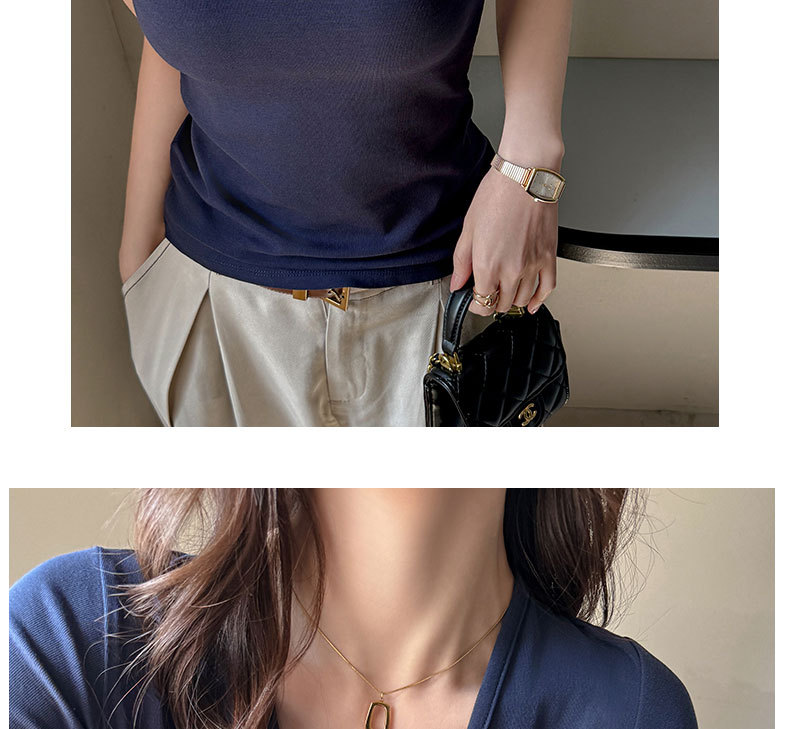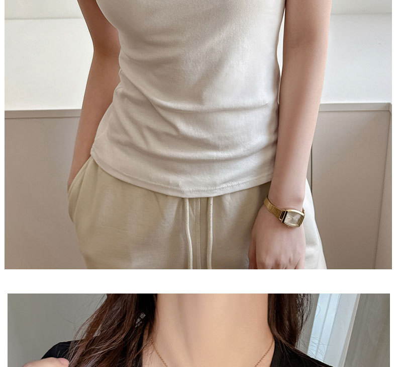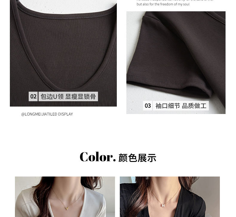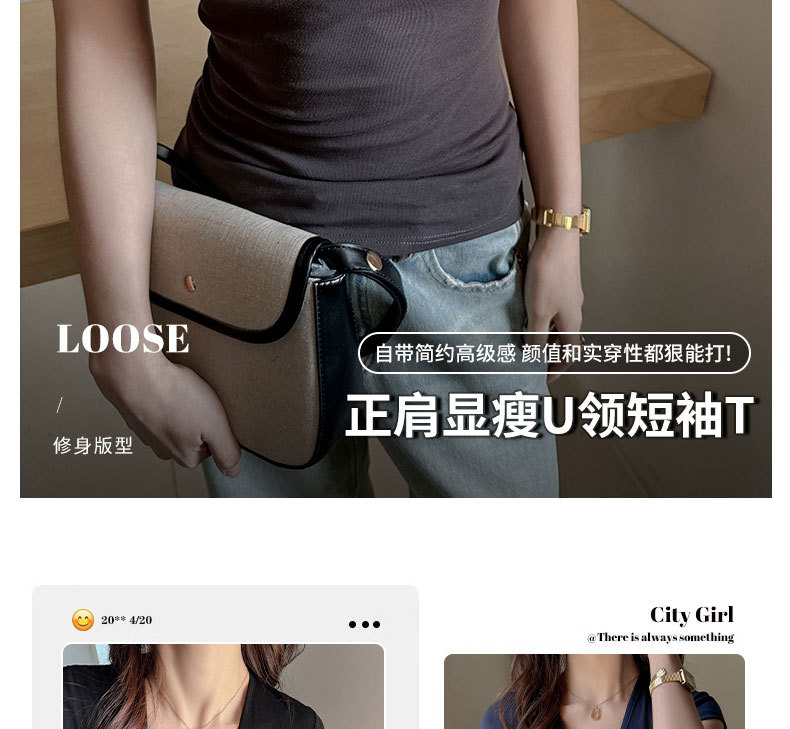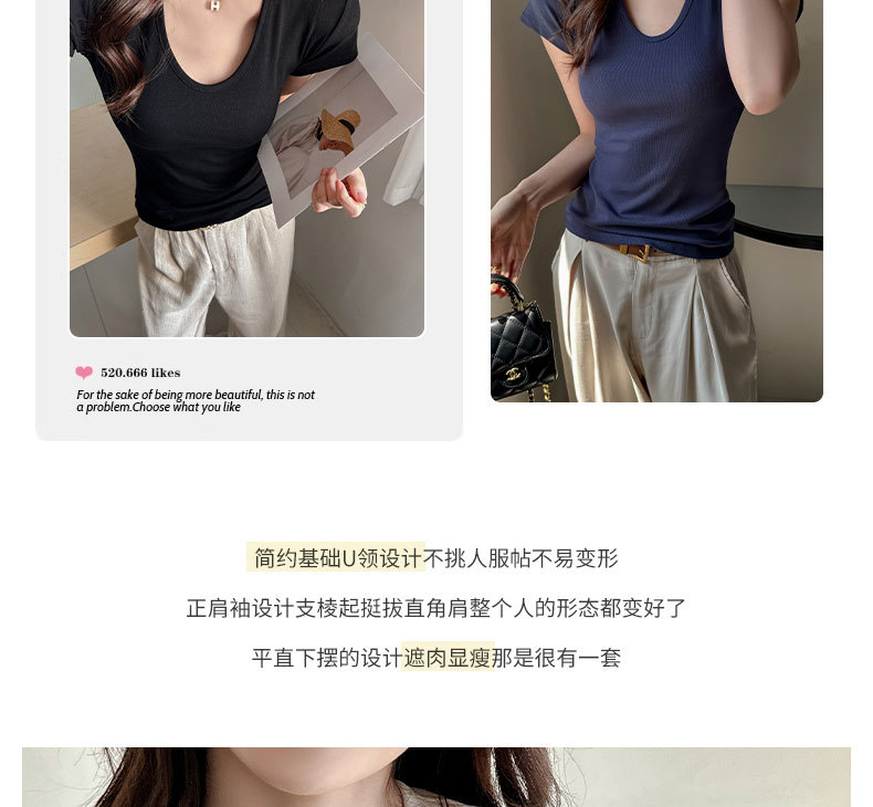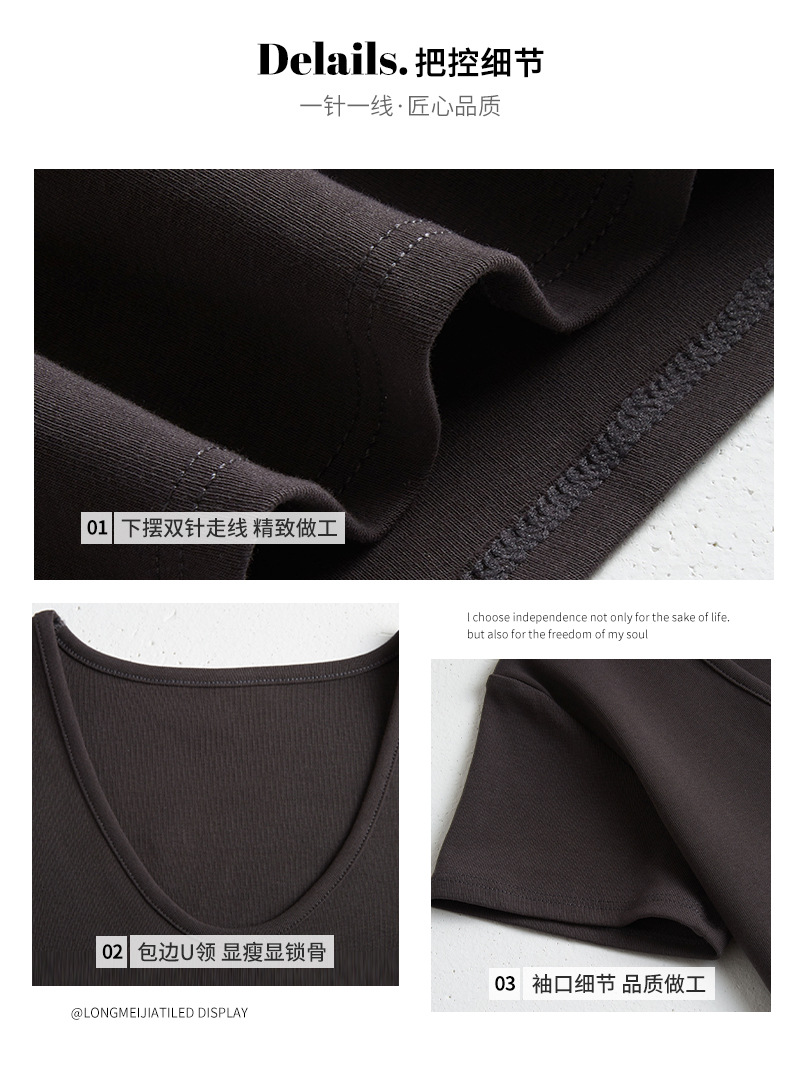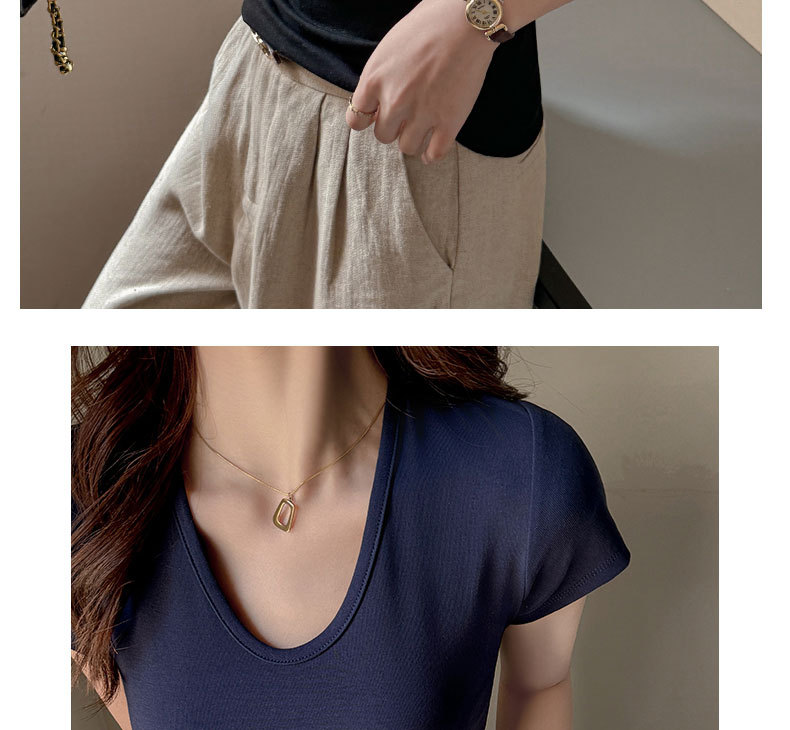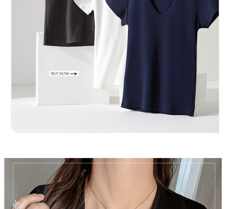 한국식 스파이스 걸스의 엄격한 선택 어깨 반팔 티셔츠 여성 하이 엔드 U-칼라 보토밍 이너 패션 웨스턴 스타일 퓨어 코튼 탑