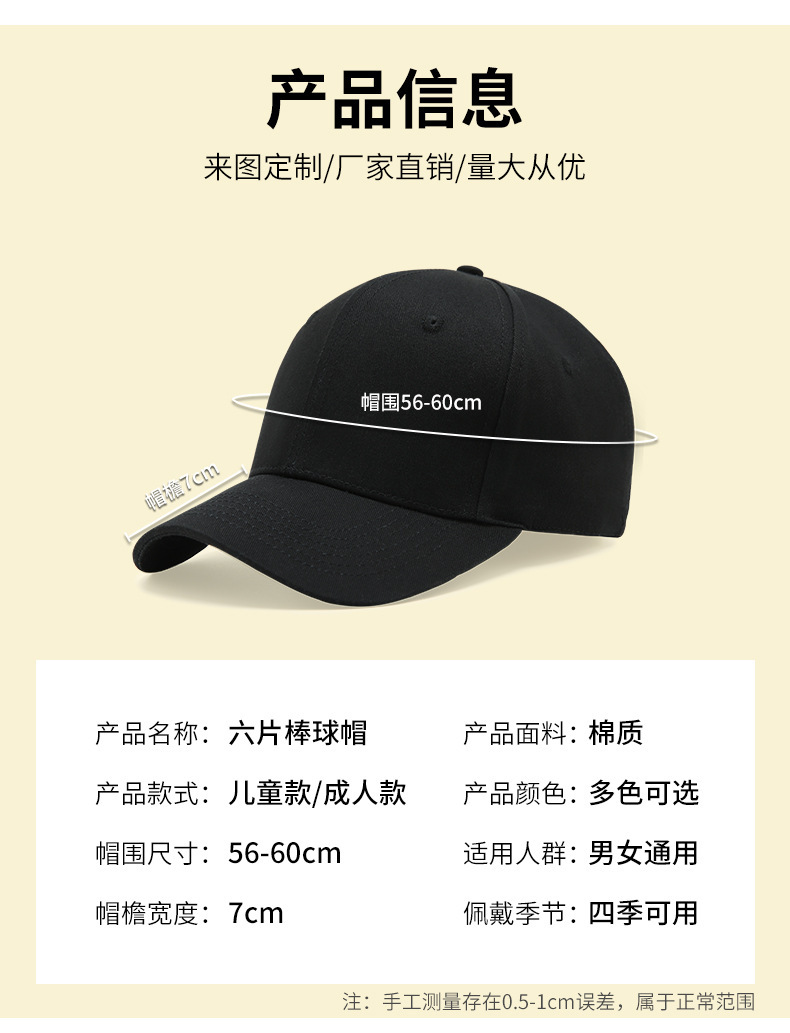 厂家直销批发定制全棉棒球帽(五片/六片)