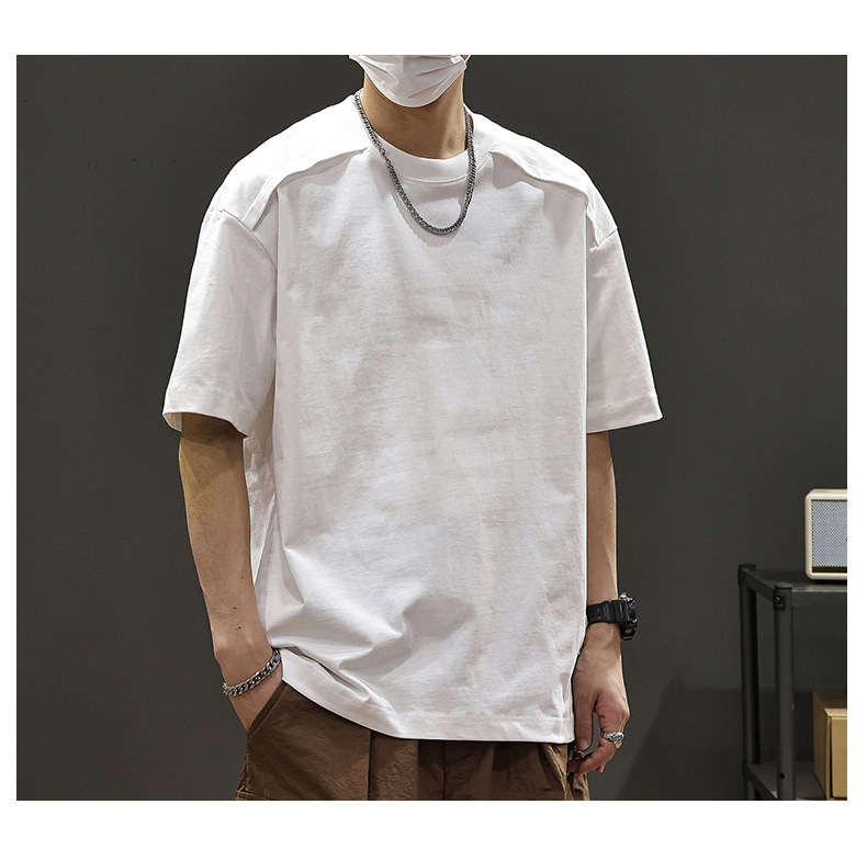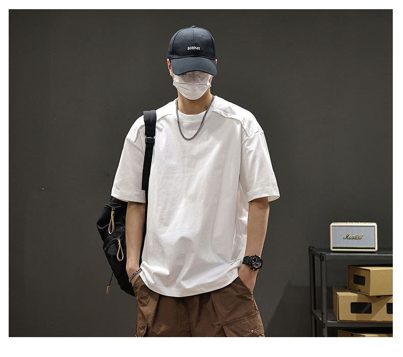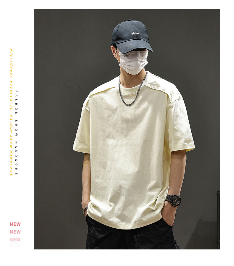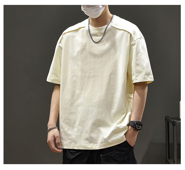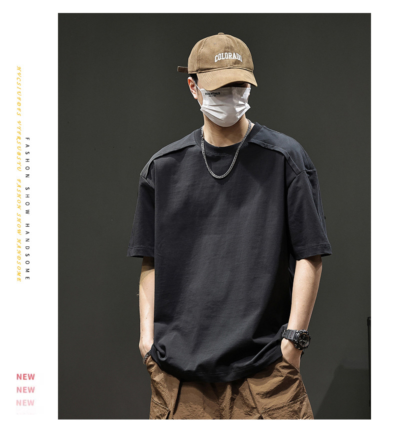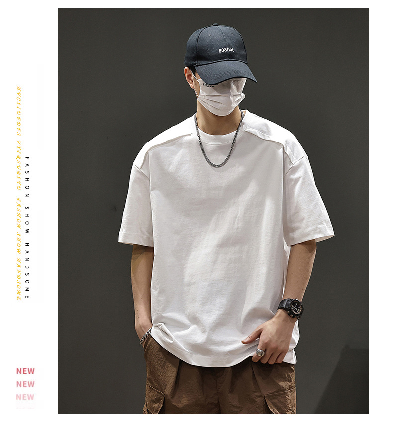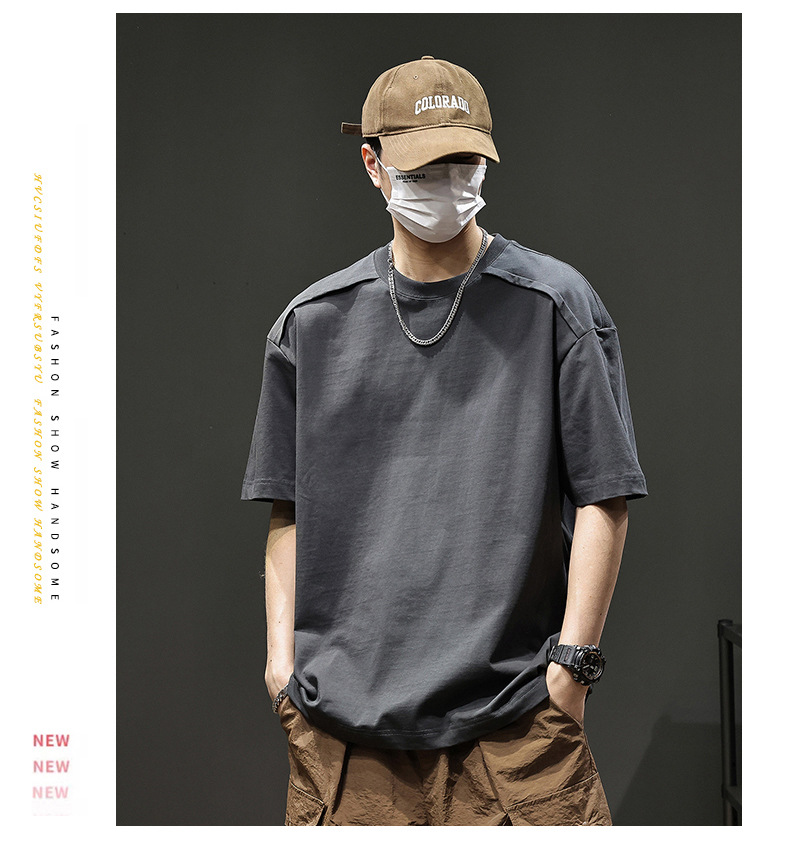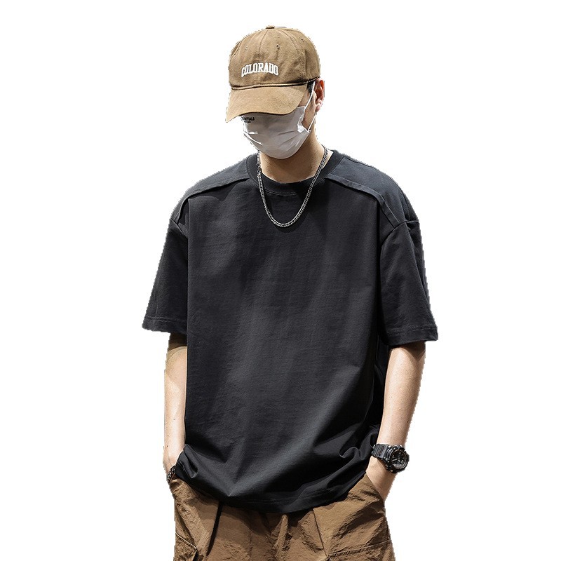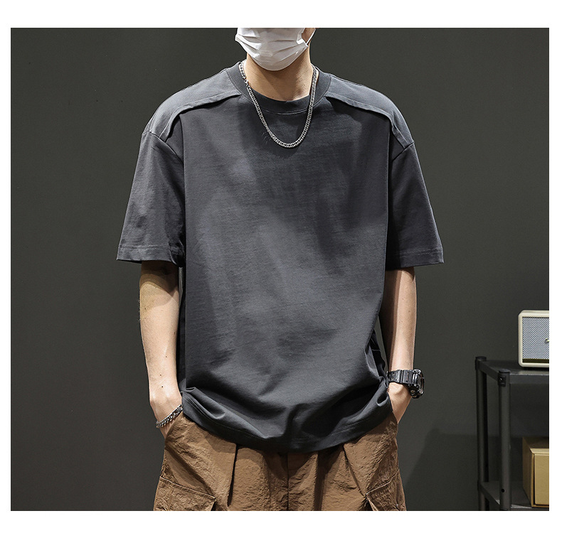 2026 신상 순면 반팔 티셔츠 남성용 여름 신상 상의 일본식 심플 무지 캐주얼 루즈핏 디컨스트럭티드