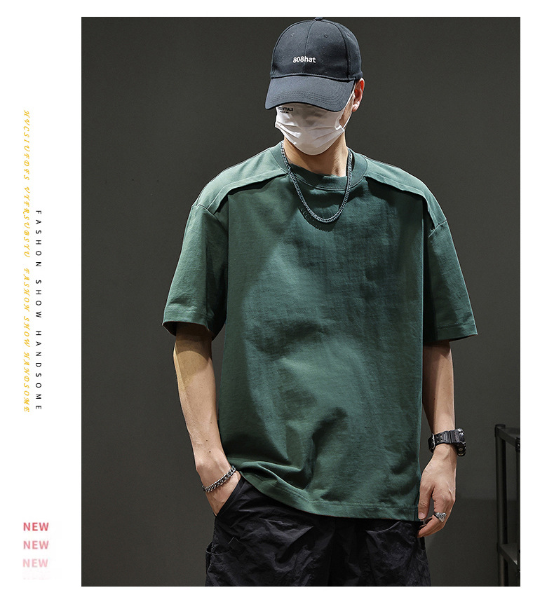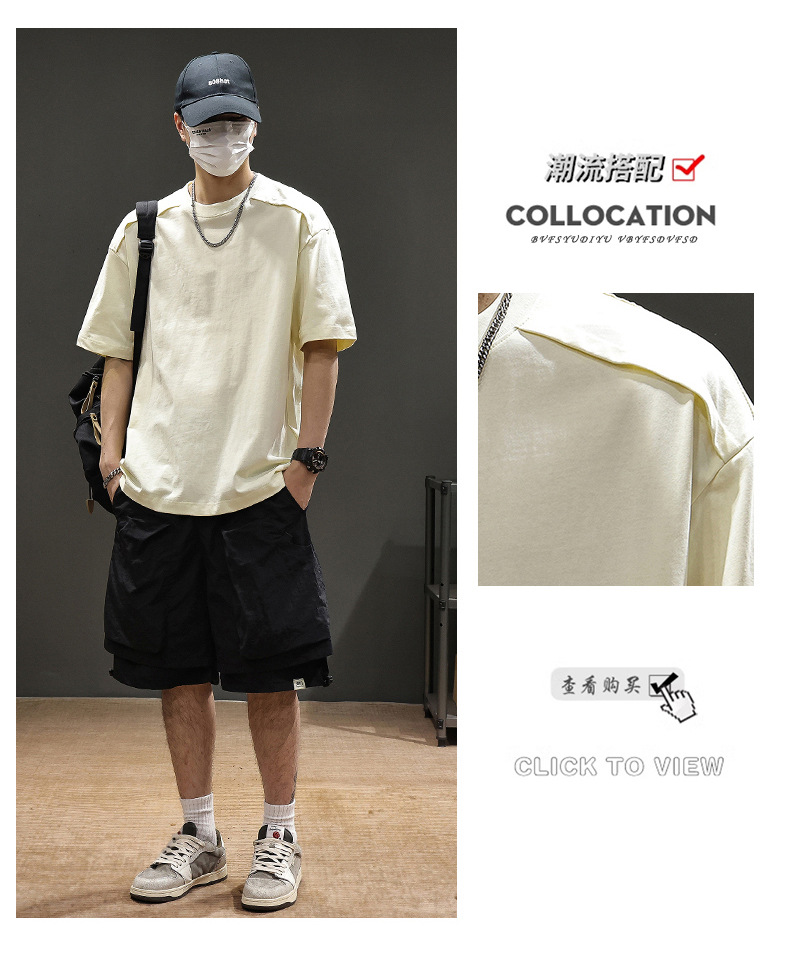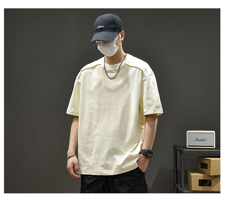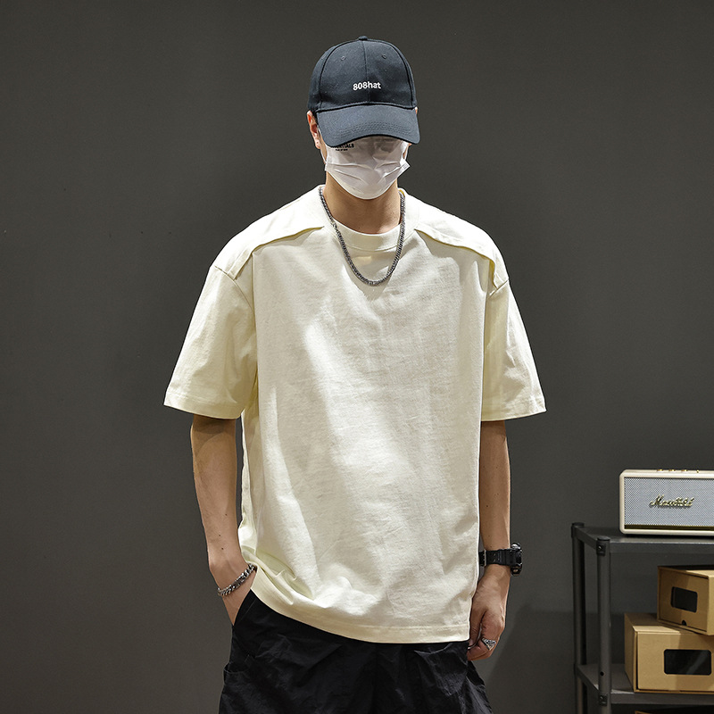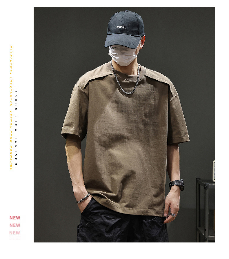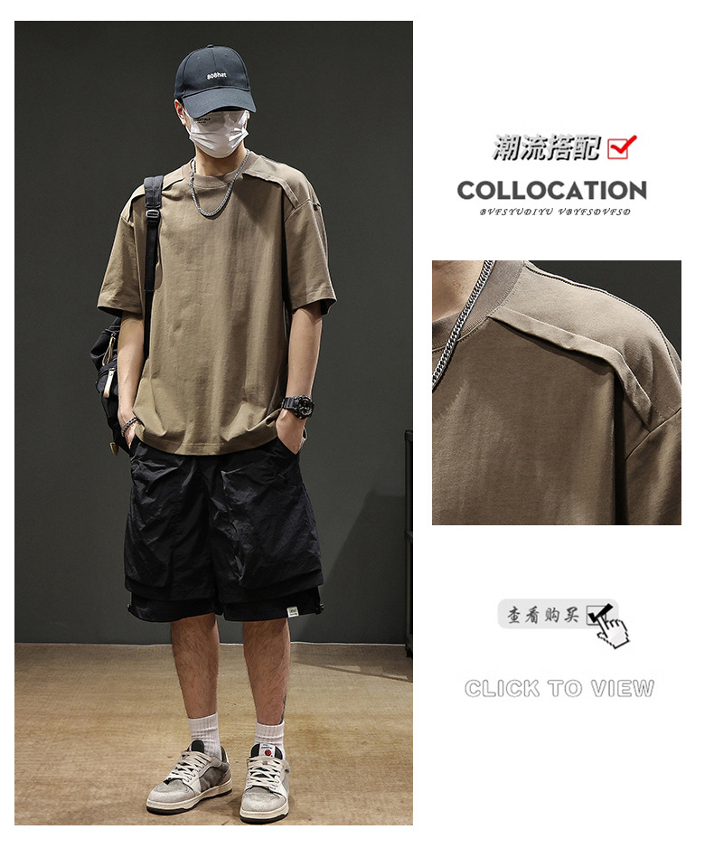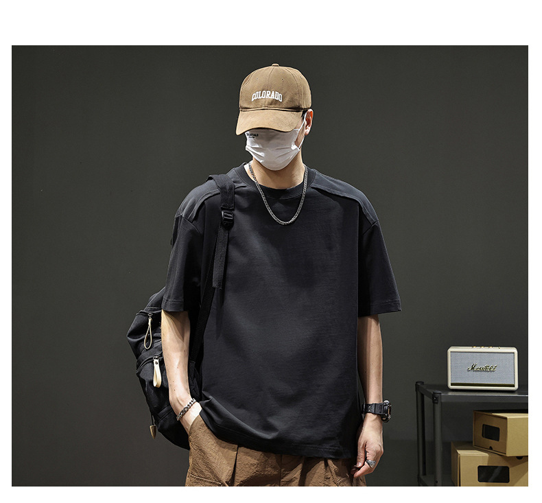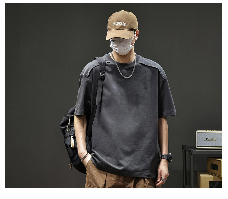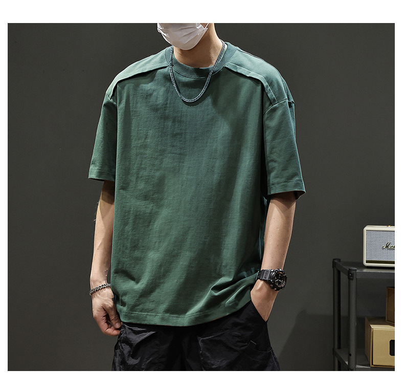 2026 신상 순면 반팔 티셔츠 남성용 여름 신상 상의 일본식 심플 무지 캐주얼 루즈핏 디컨스트럭티드