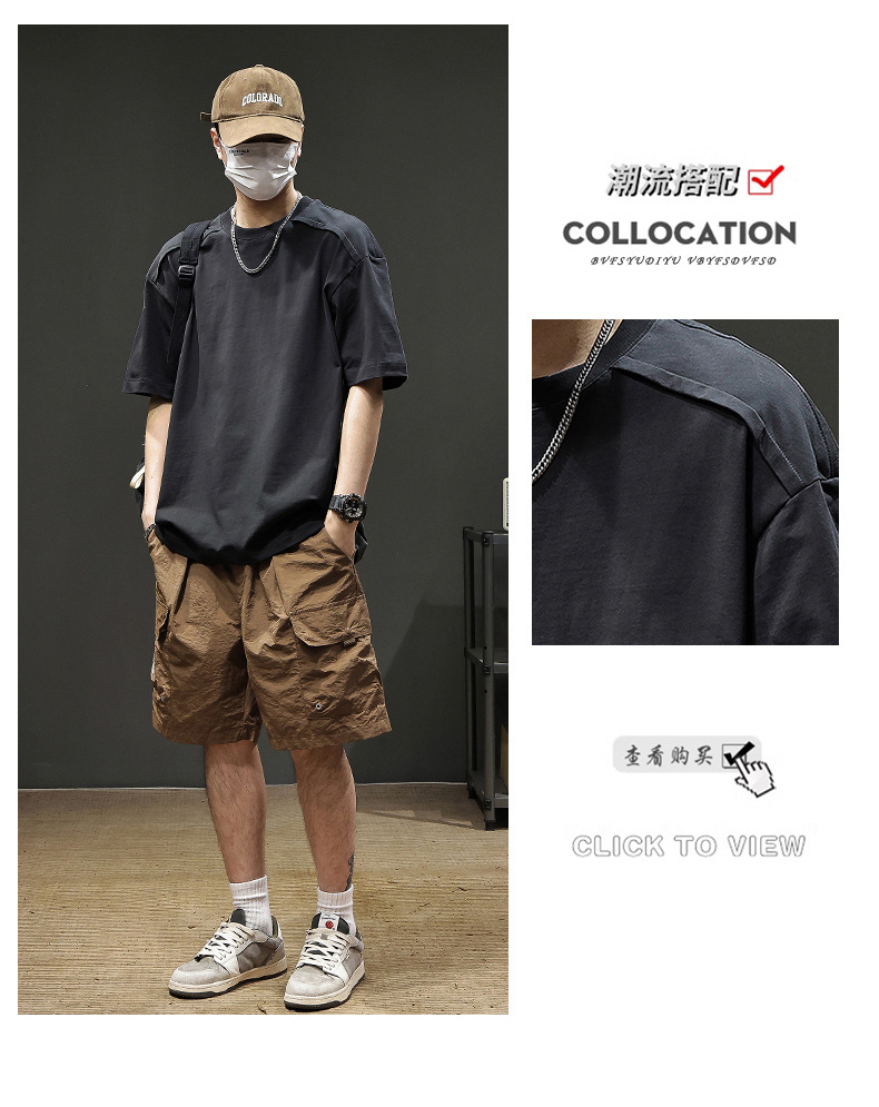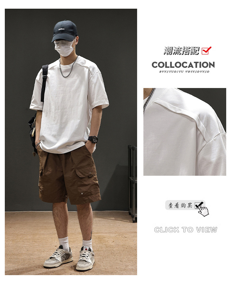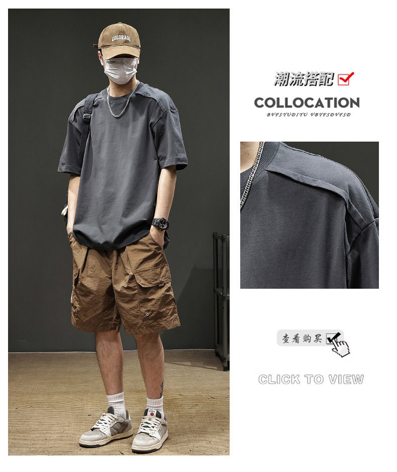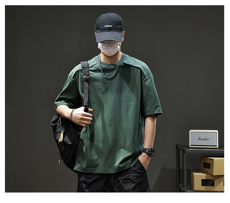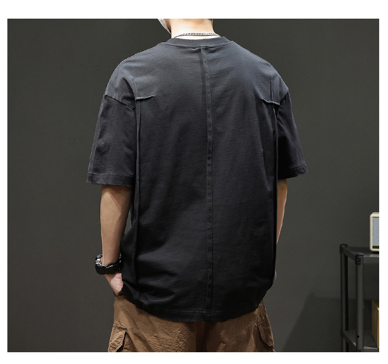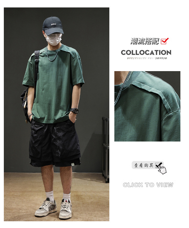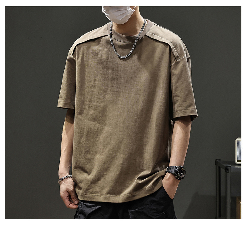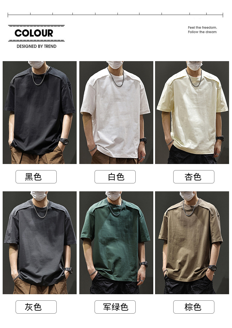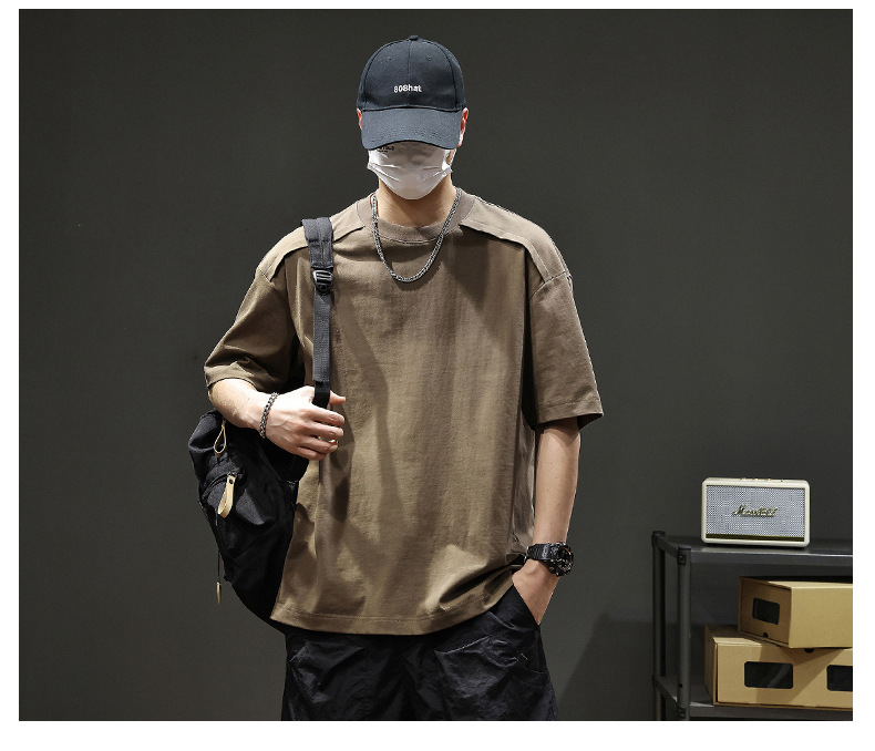 2026 신상 순면 반팔 티셔츠 남성용 여름 신상 상의 일본식 심플 무지 캐주얼 루즈핏 디컨스트럭티드