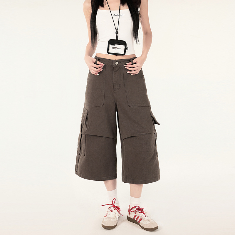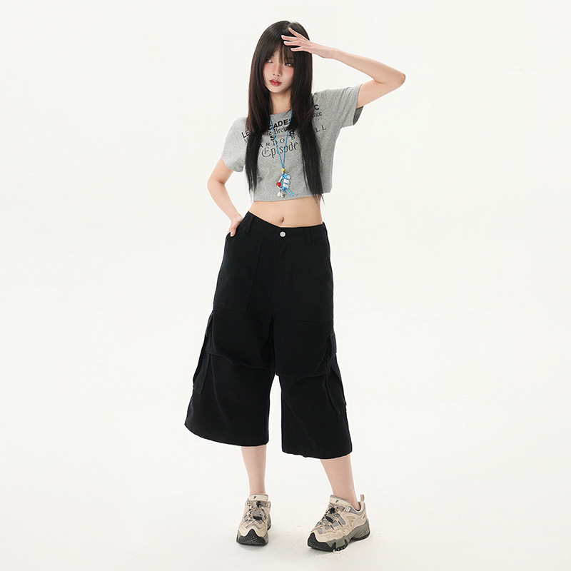 빈티지 아메리칸 스타일 블랙 크롭 청바지 여자 2025 년 여름 새로운 높은 허리 느슨한 올매치 와이드 레그 크레인 바지