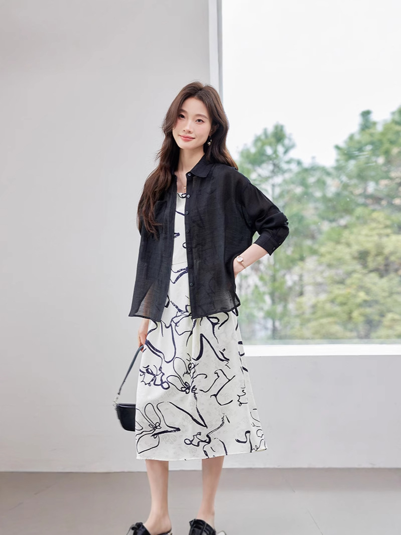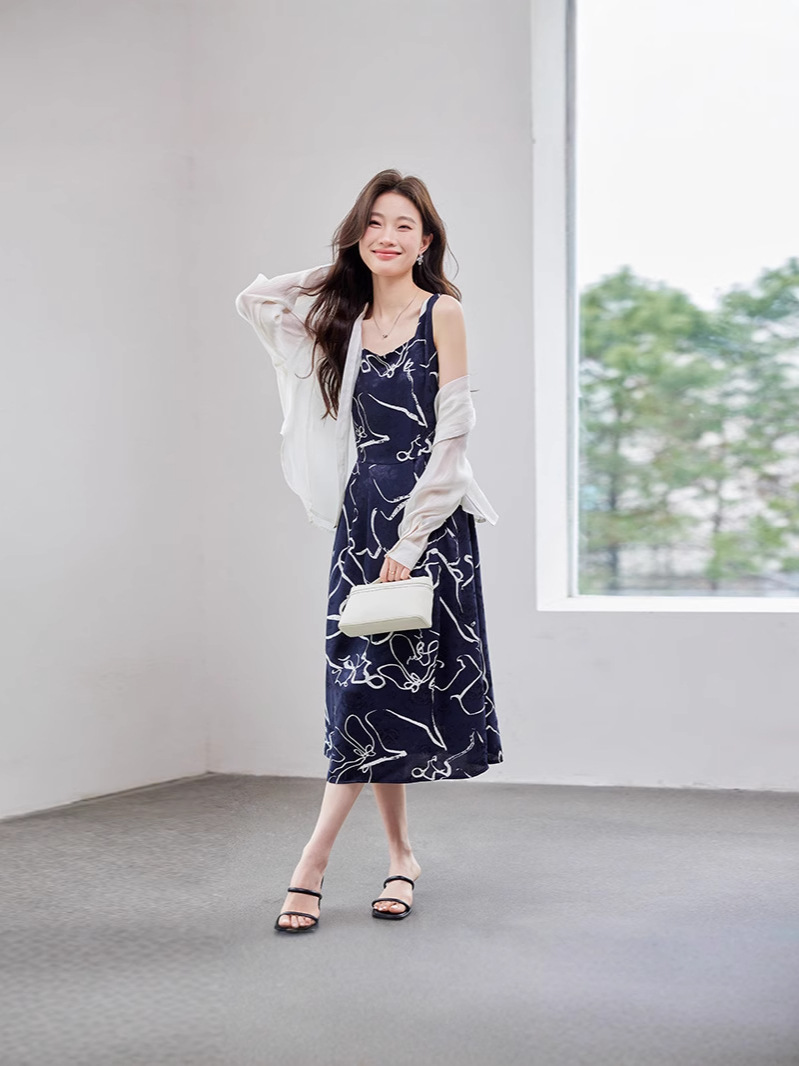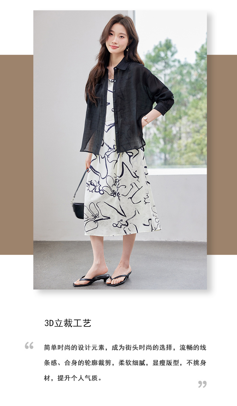 2025 봄과 여름 새로운 여성의 섹시한 깊은 V 기하학 서스펜더 드레스 비치 선 스크린 화이트 셔츠 여성 트렌드