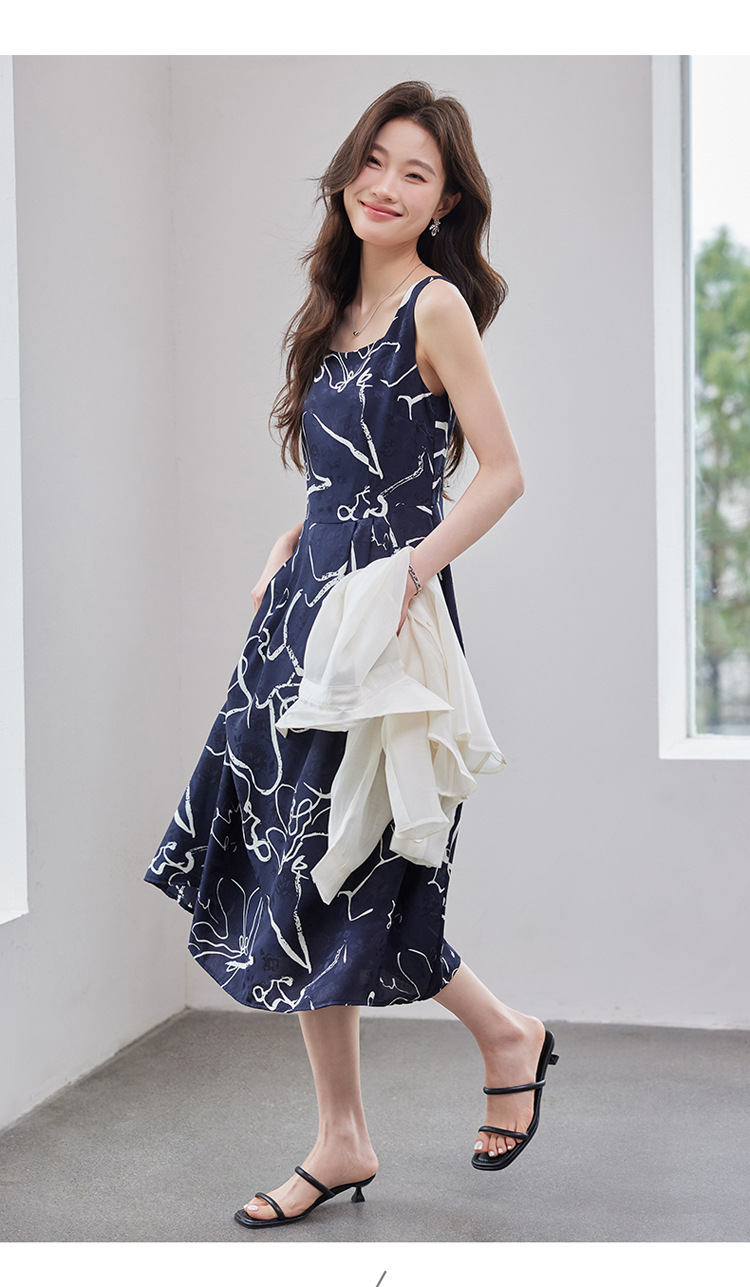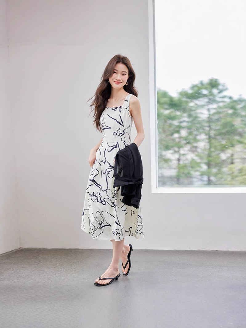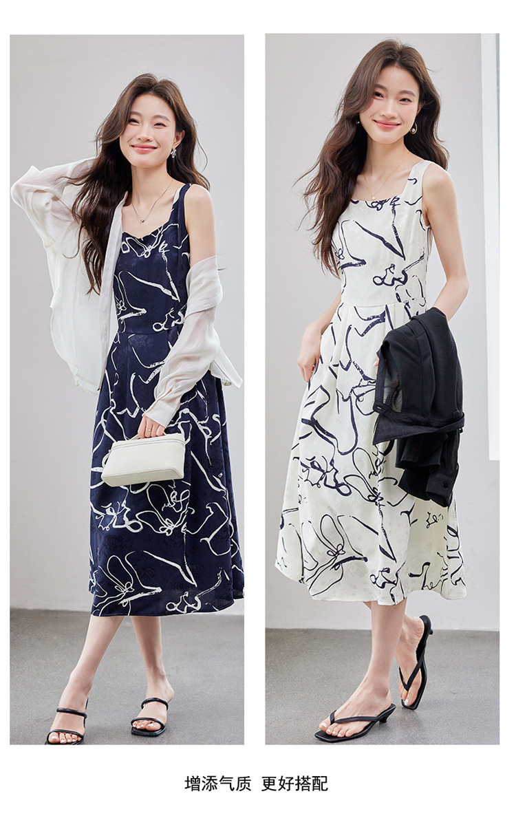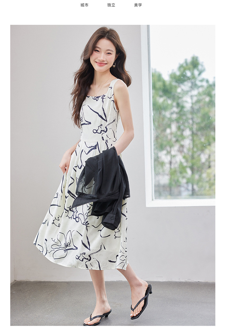 2025 봄과 여름 새로운 여성의 섹시한 깊은 V 기하학 서스펜더 드레스 비치 선 스크린 화이트 셔츠 여성 트렌드