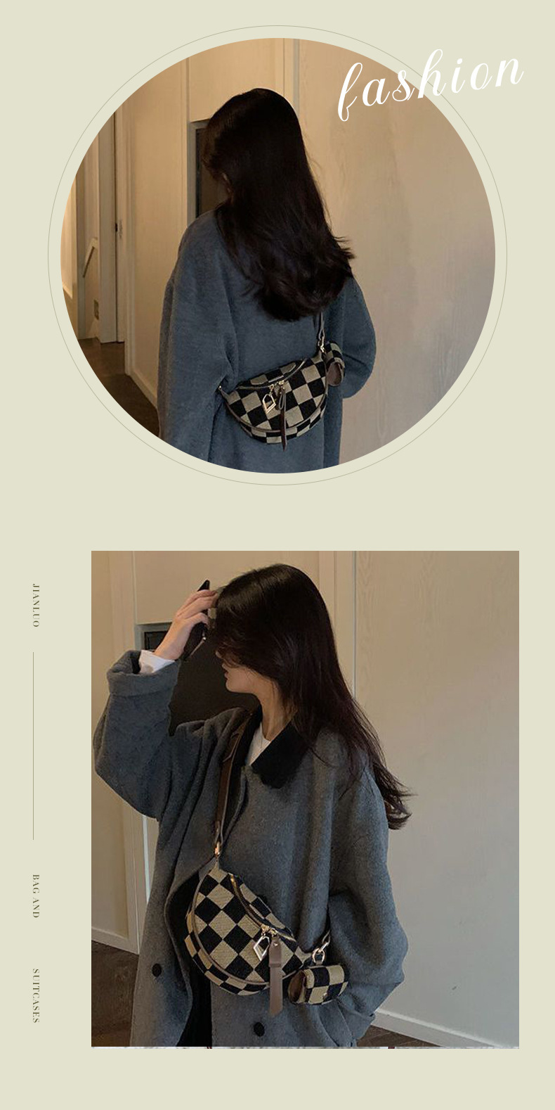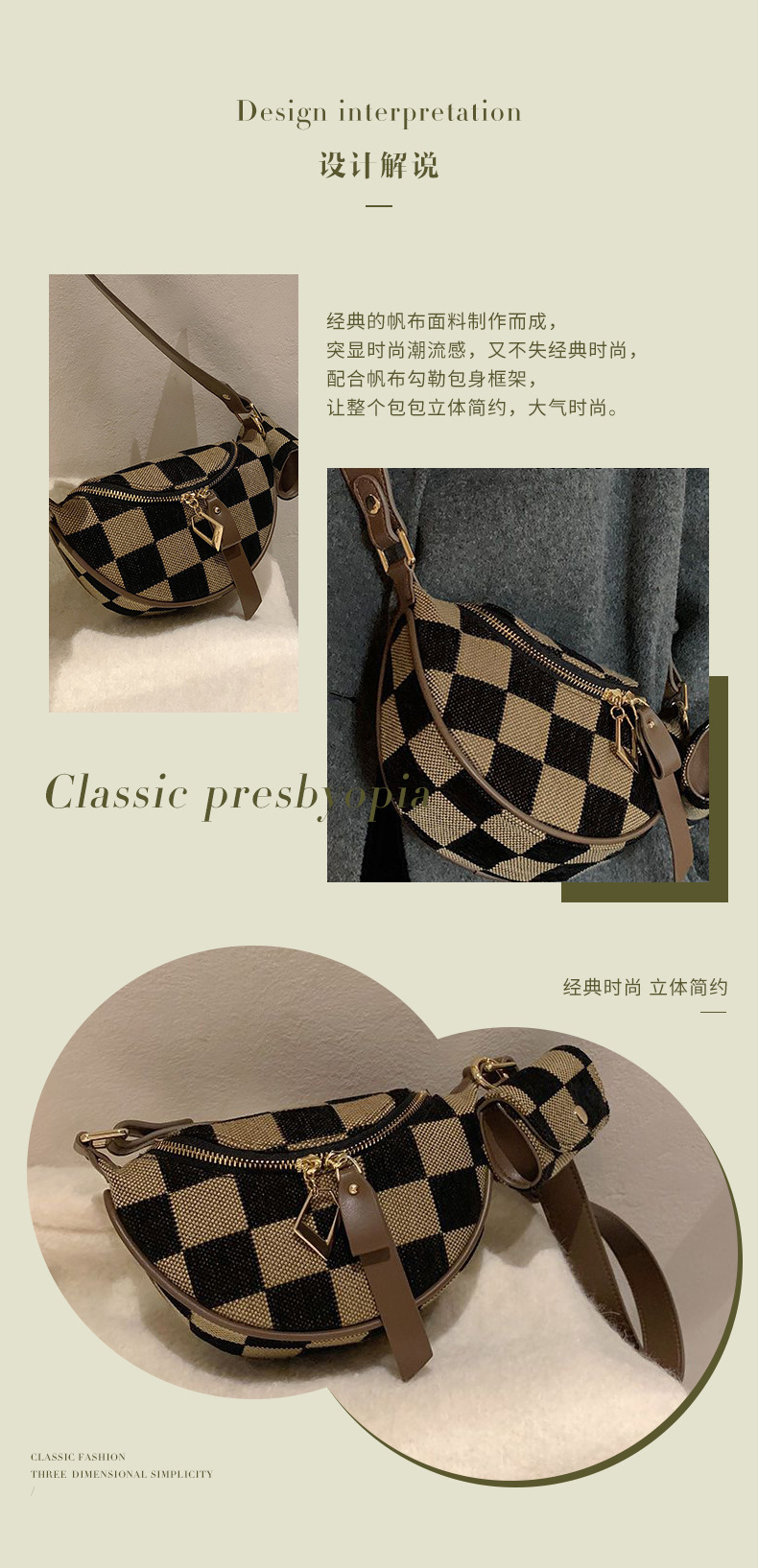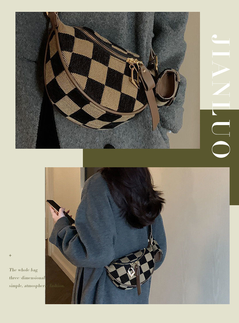 2024 새로운 스타일 올 매치 바둑판 가슴 가방 패션 체크 무늬 허리 가방 만두 가방 메신저 가방