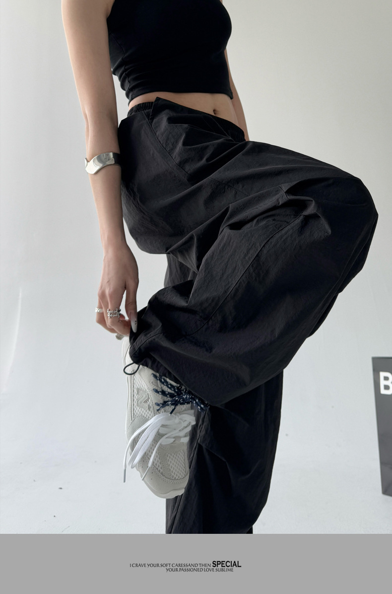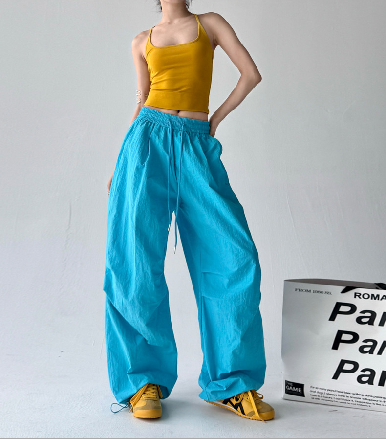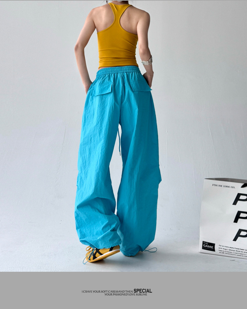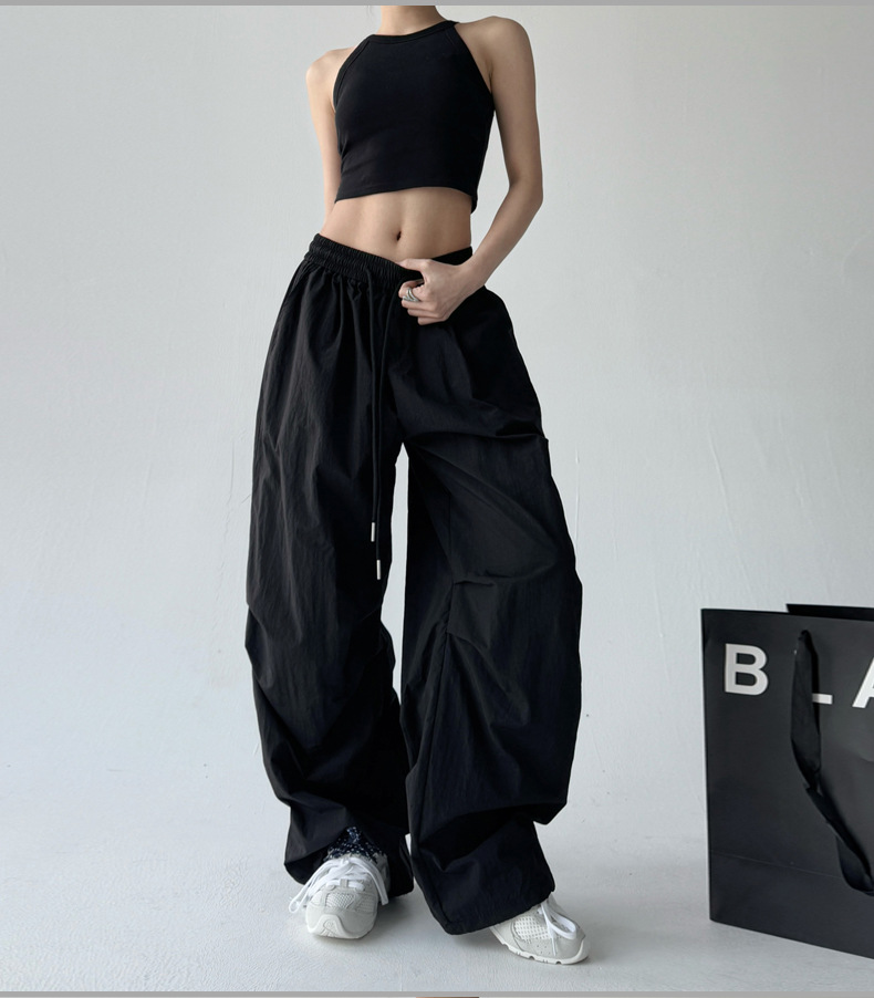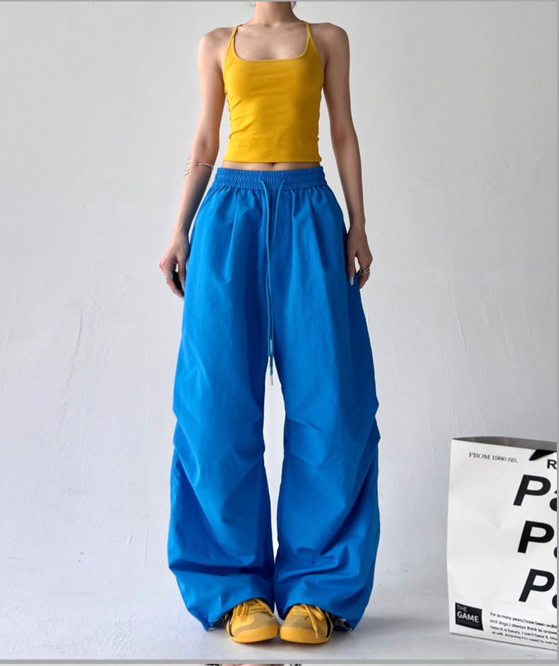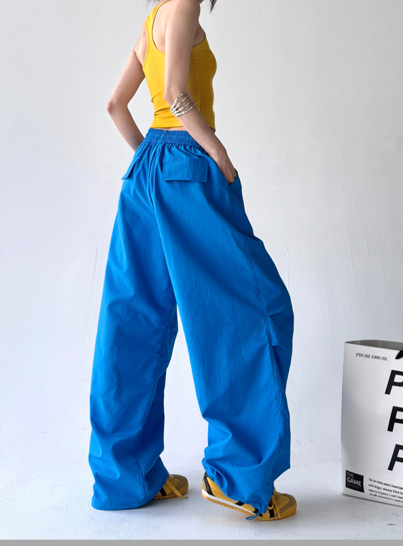 매우 멋진 핫걸 스타일의 스카이다이버 작업복 바지 여성용 2025 여름 얇은 주름진 와이드 레그 바지 캐주얼 패션