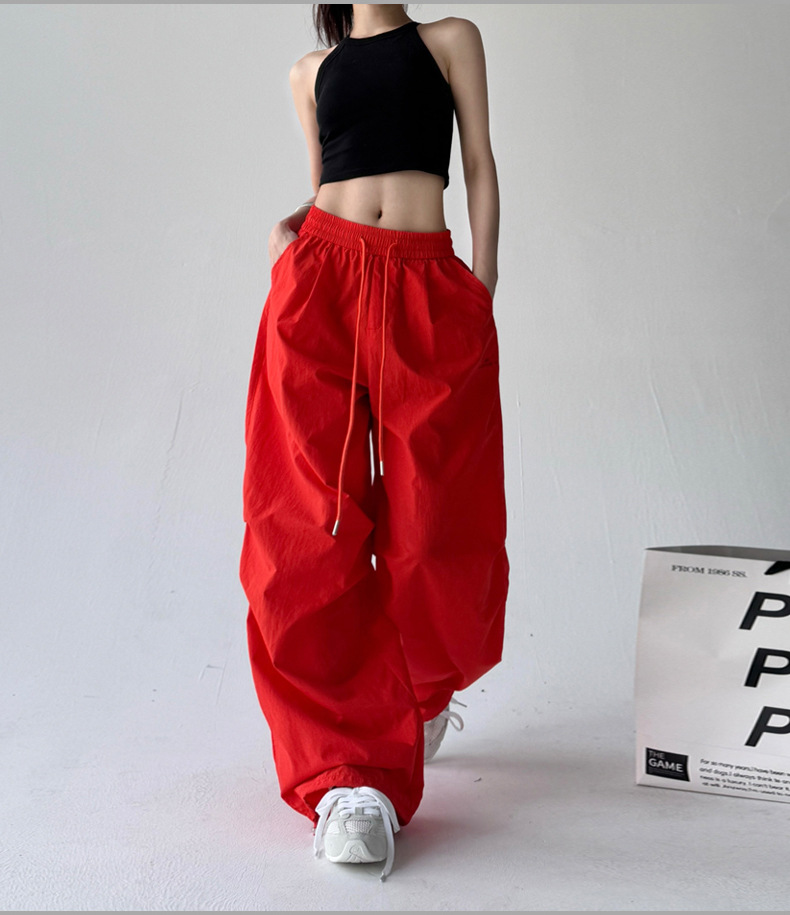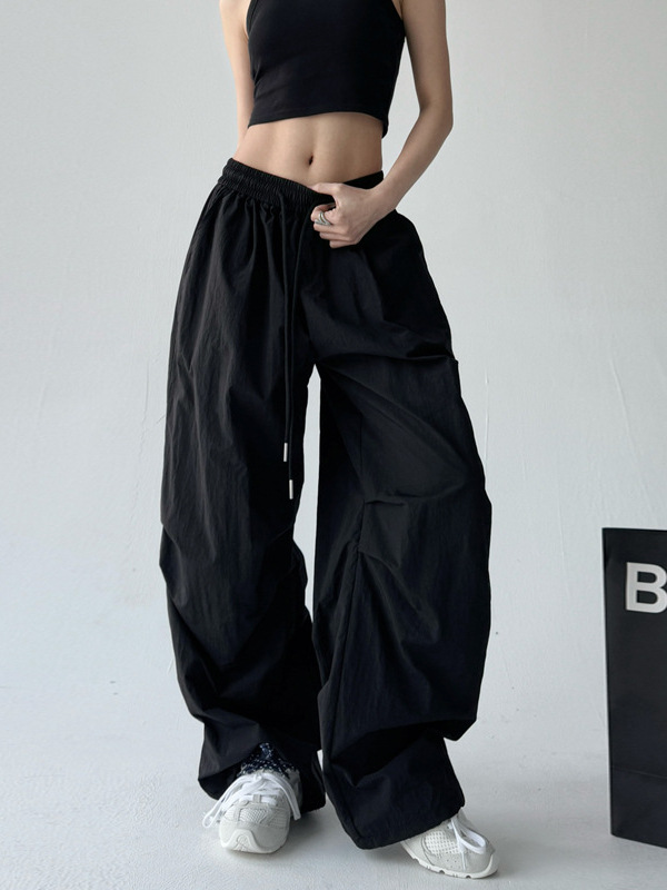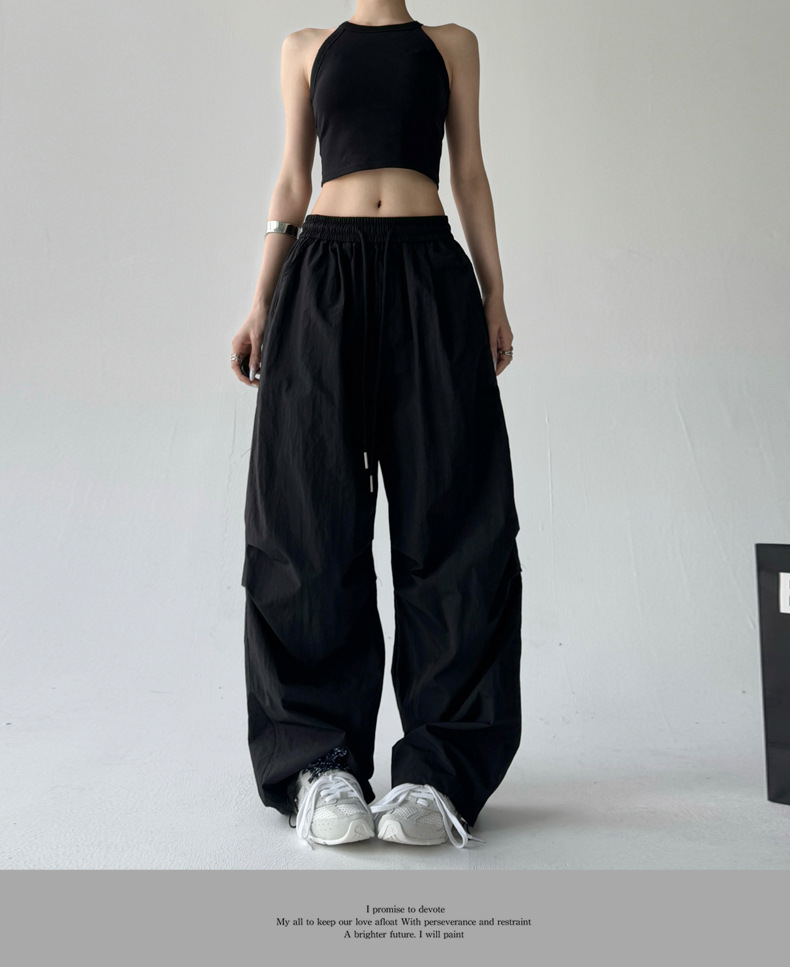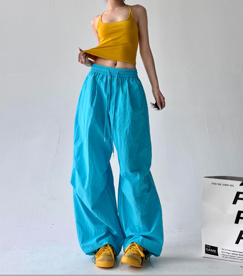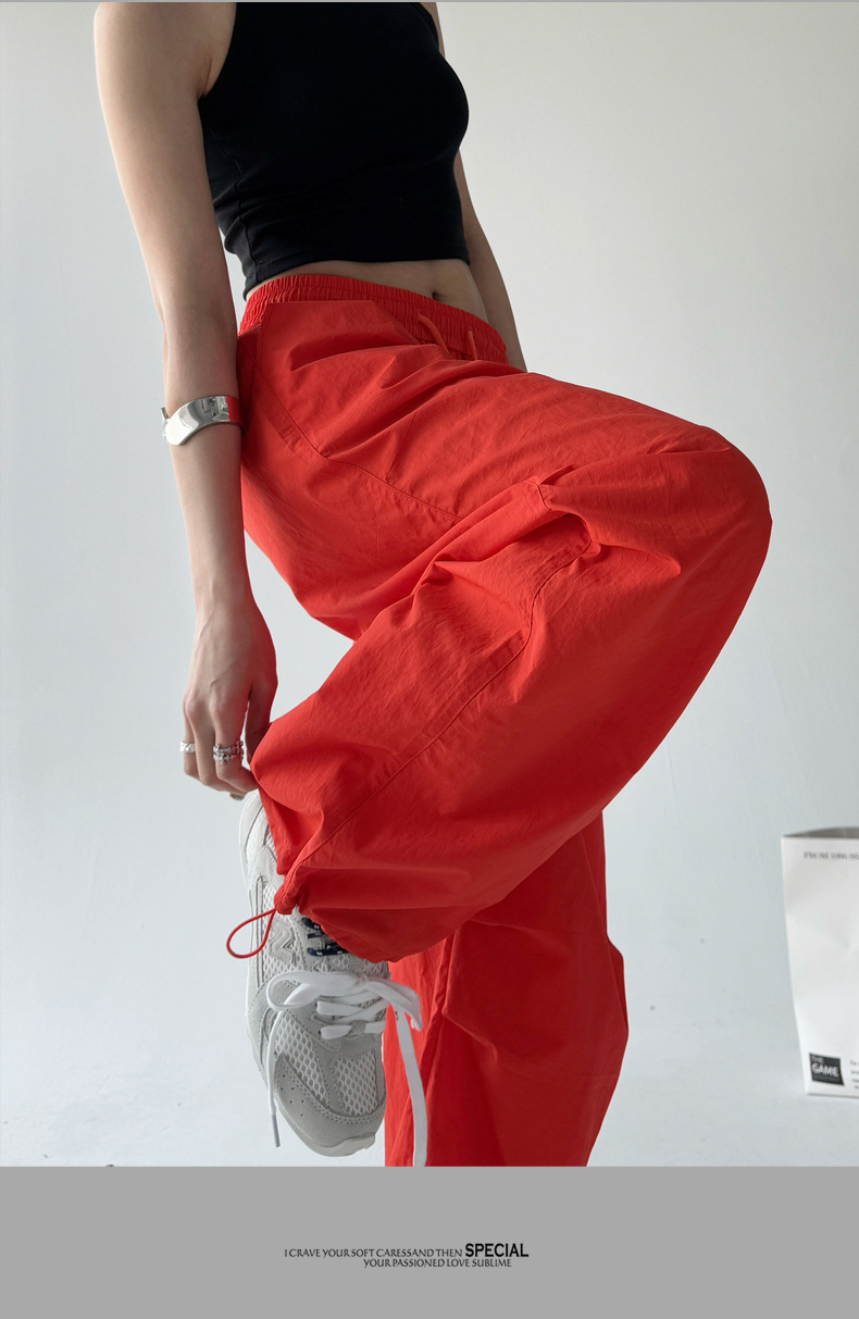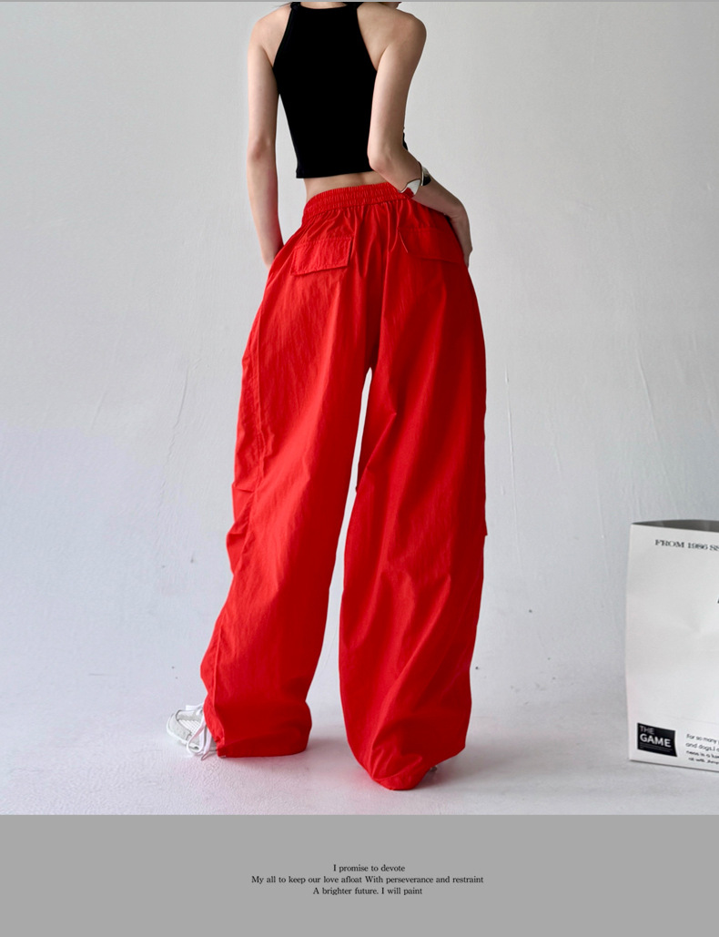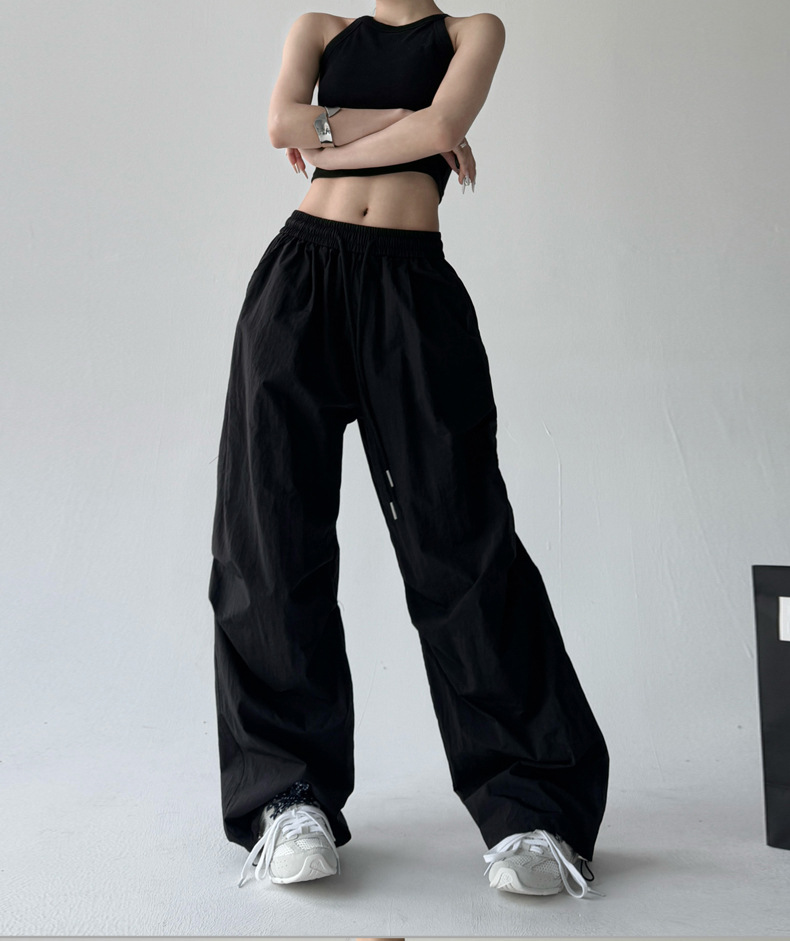 매우 멋진 핫걸 스타일의 스카이다이버 작업복 바지 여성용 2025 여름 얇은 주름진 와이드 레그 바지 캐주얼 패션