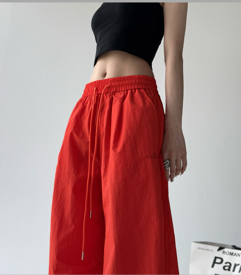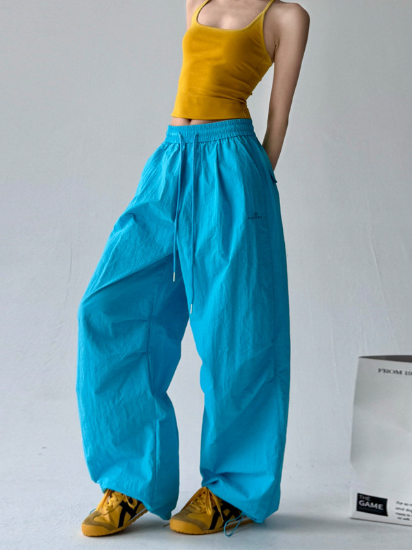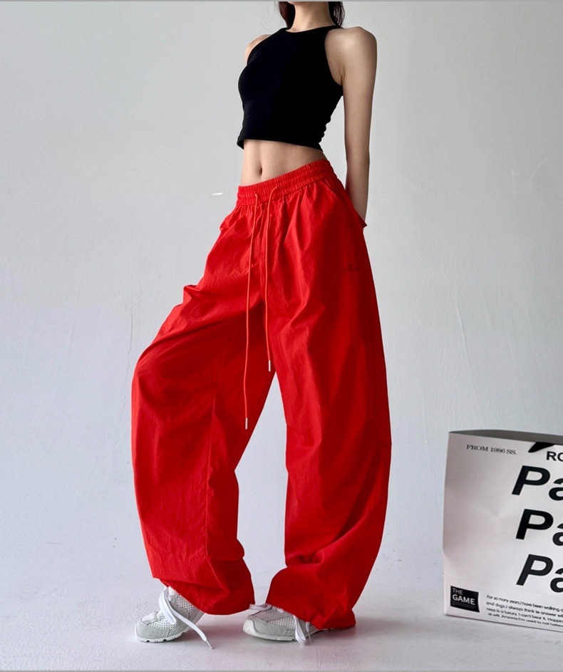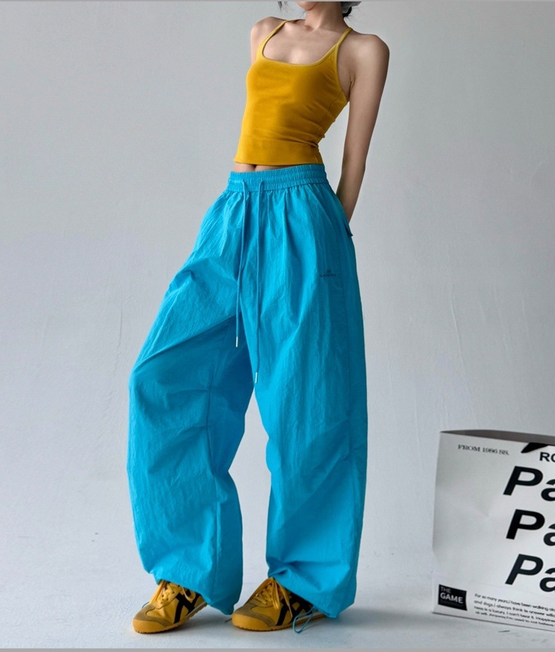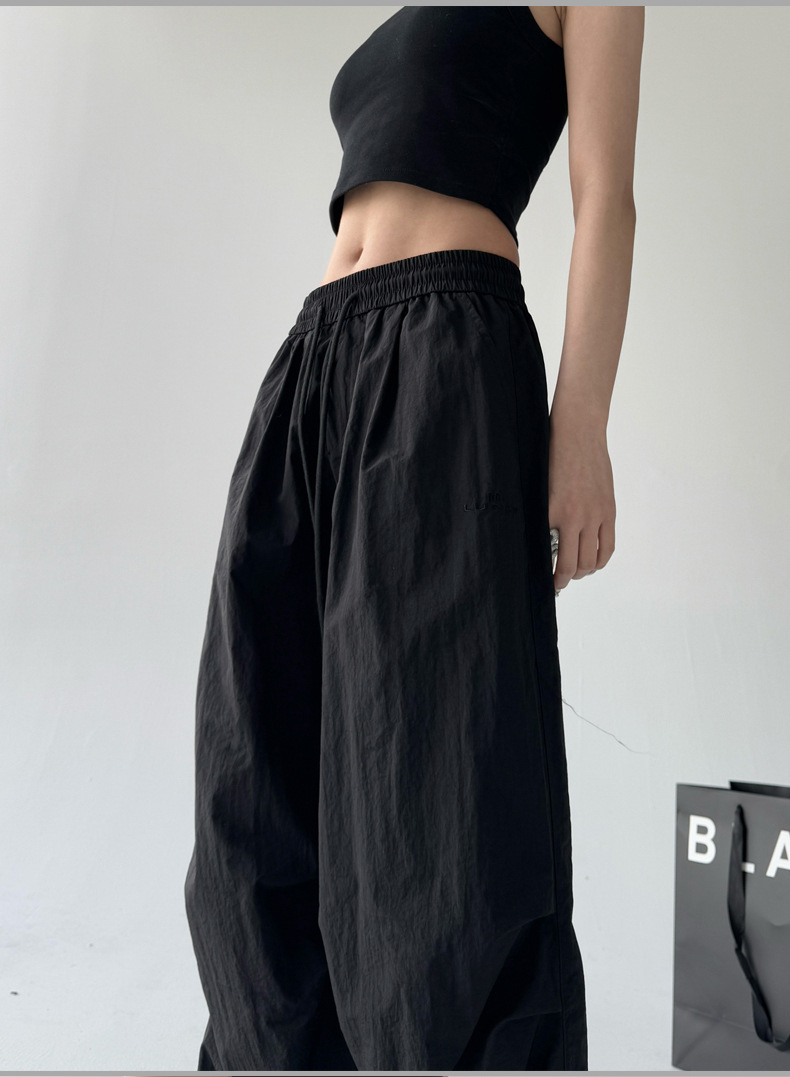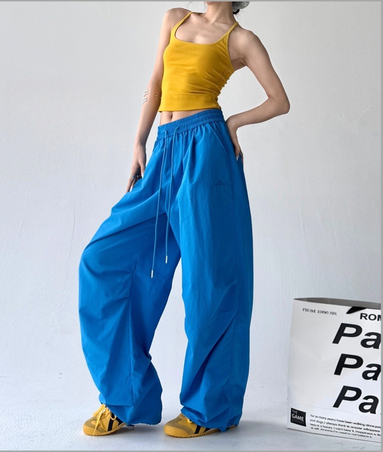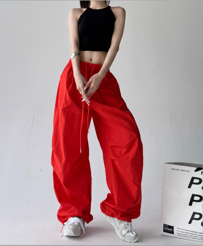 매우 멋진 핫걸 스타일의 스카이다이버 작업복 바지 여성용 2025 여름 얇은 주름진 와이드 레그 바지 캐주얼 패션