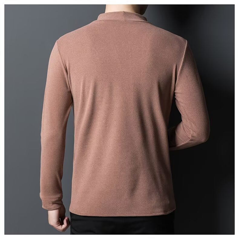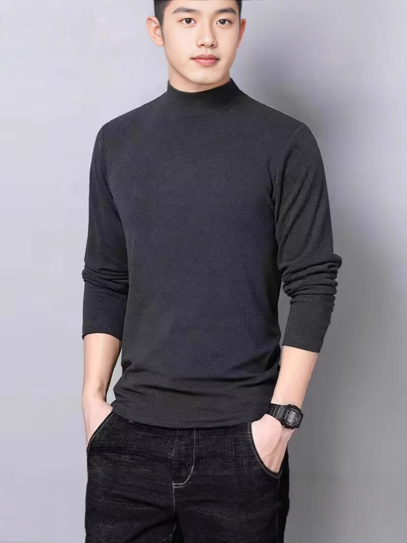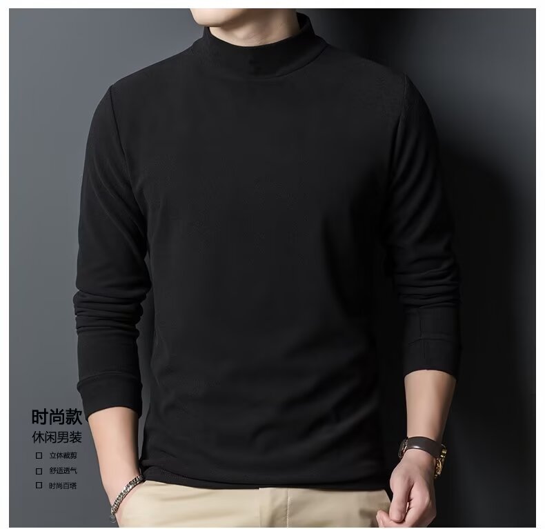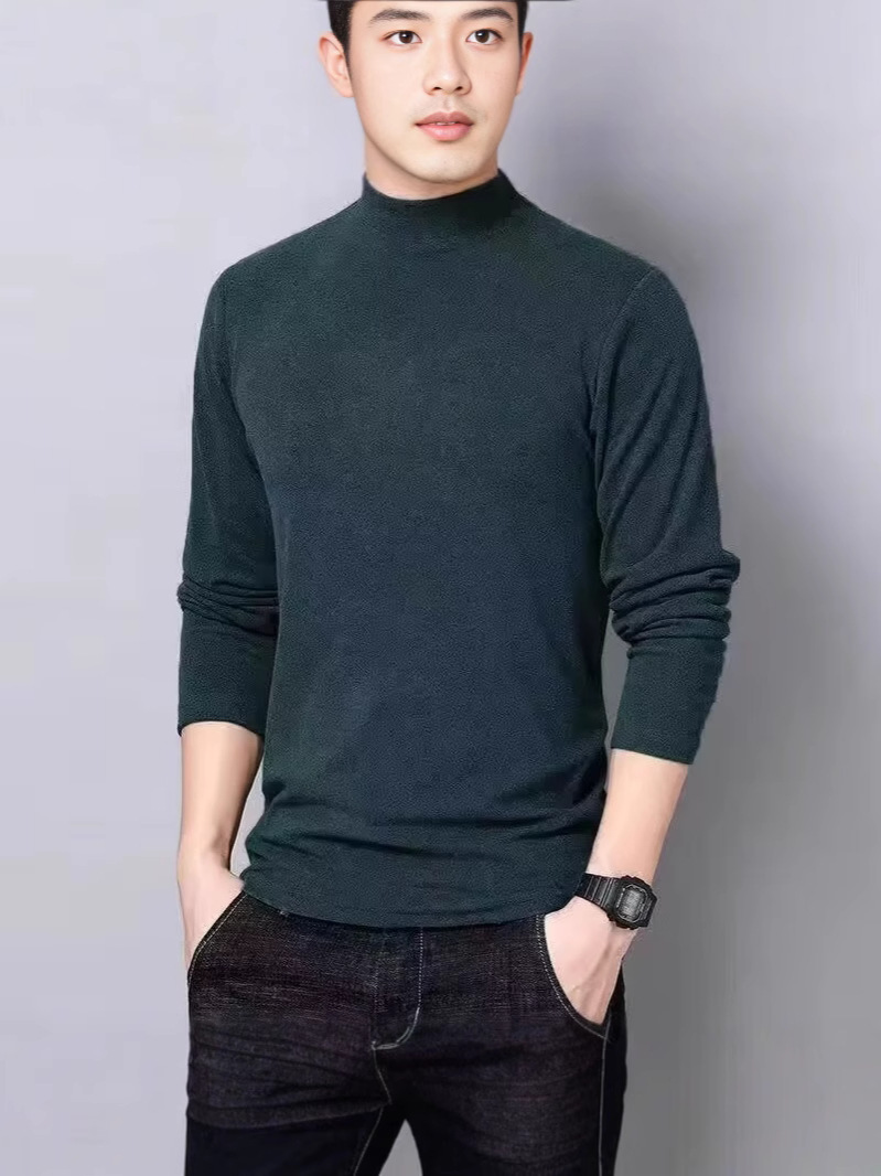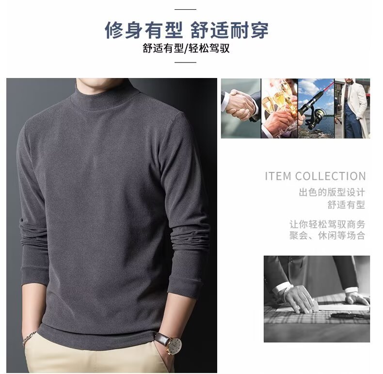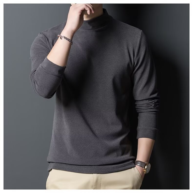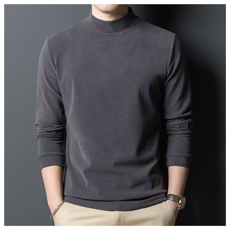 양면 독일 벨벳 하프 터틀넥 긴팔 티셔츠 남성용 따뜻하고 방한 홈웨어 잠옷 중간 칼라 대형 가을 코트 바닥 셔츠