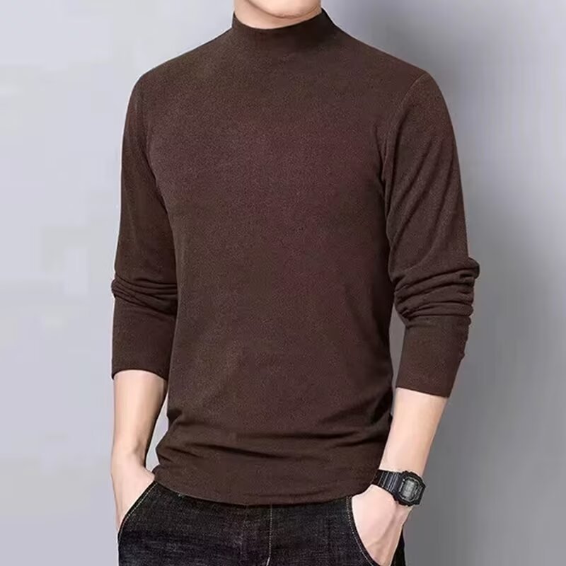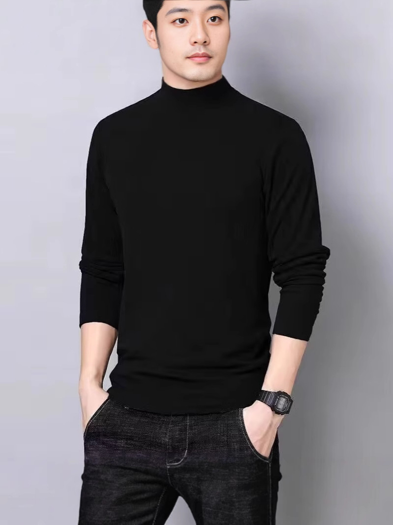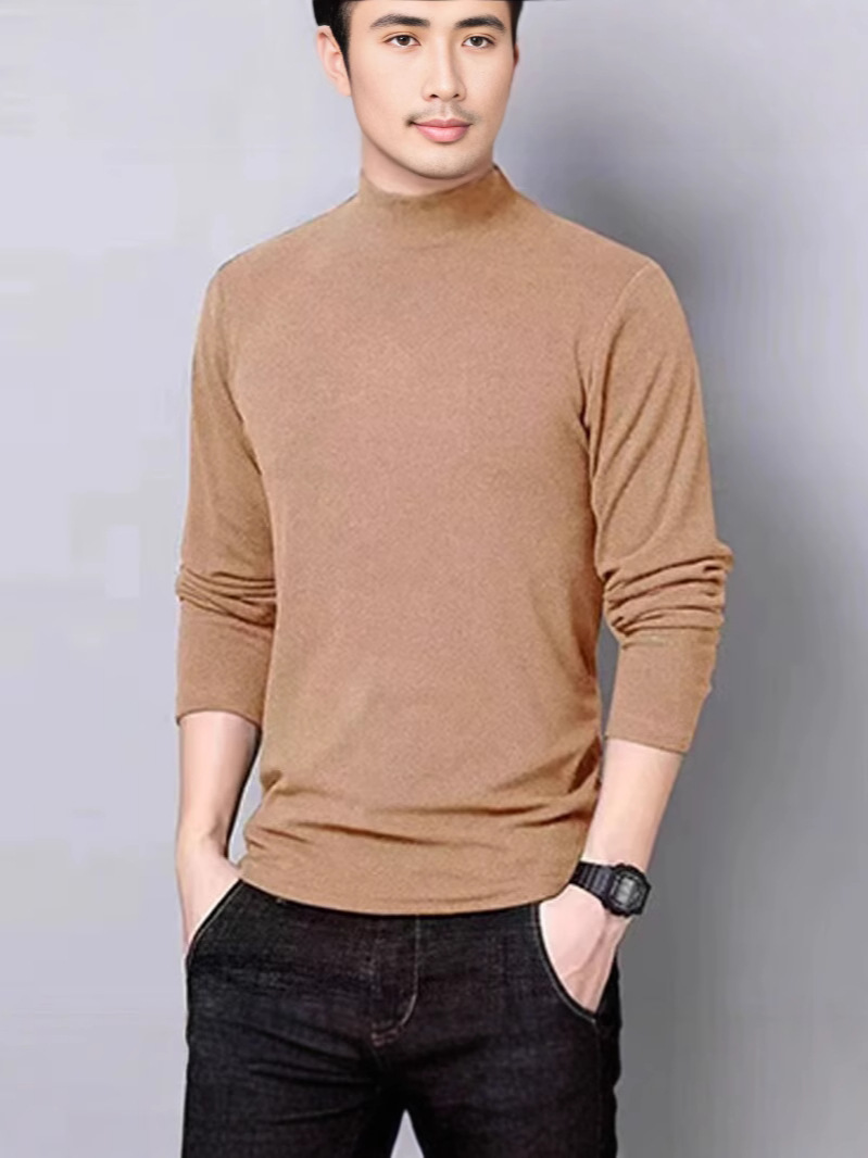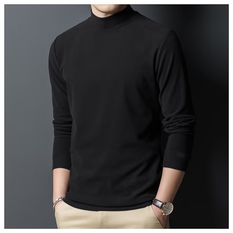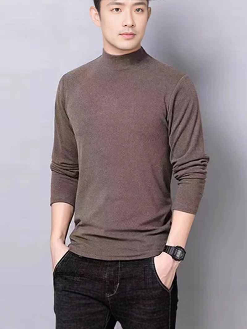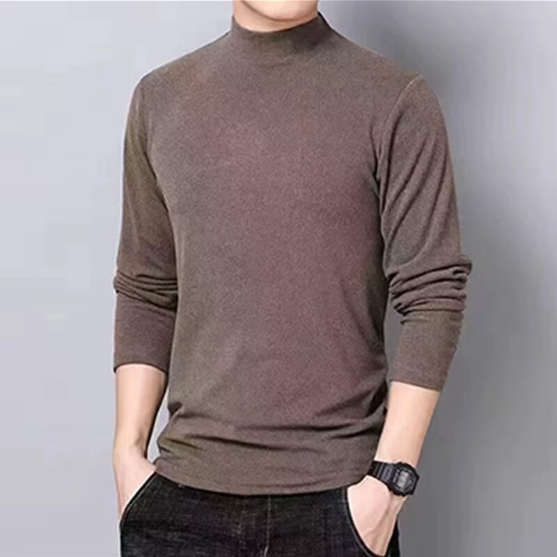 양면 독일 벨벳 하프 터틀넥 긴팔 티셔츠 남성용 따뜻하고 방한 홈웨어 잠옷 중간 칼라 대형 가을 코트 바닥 셔츠