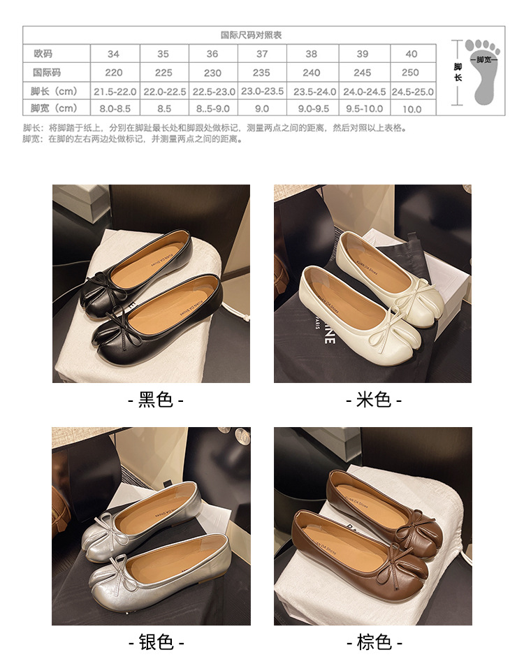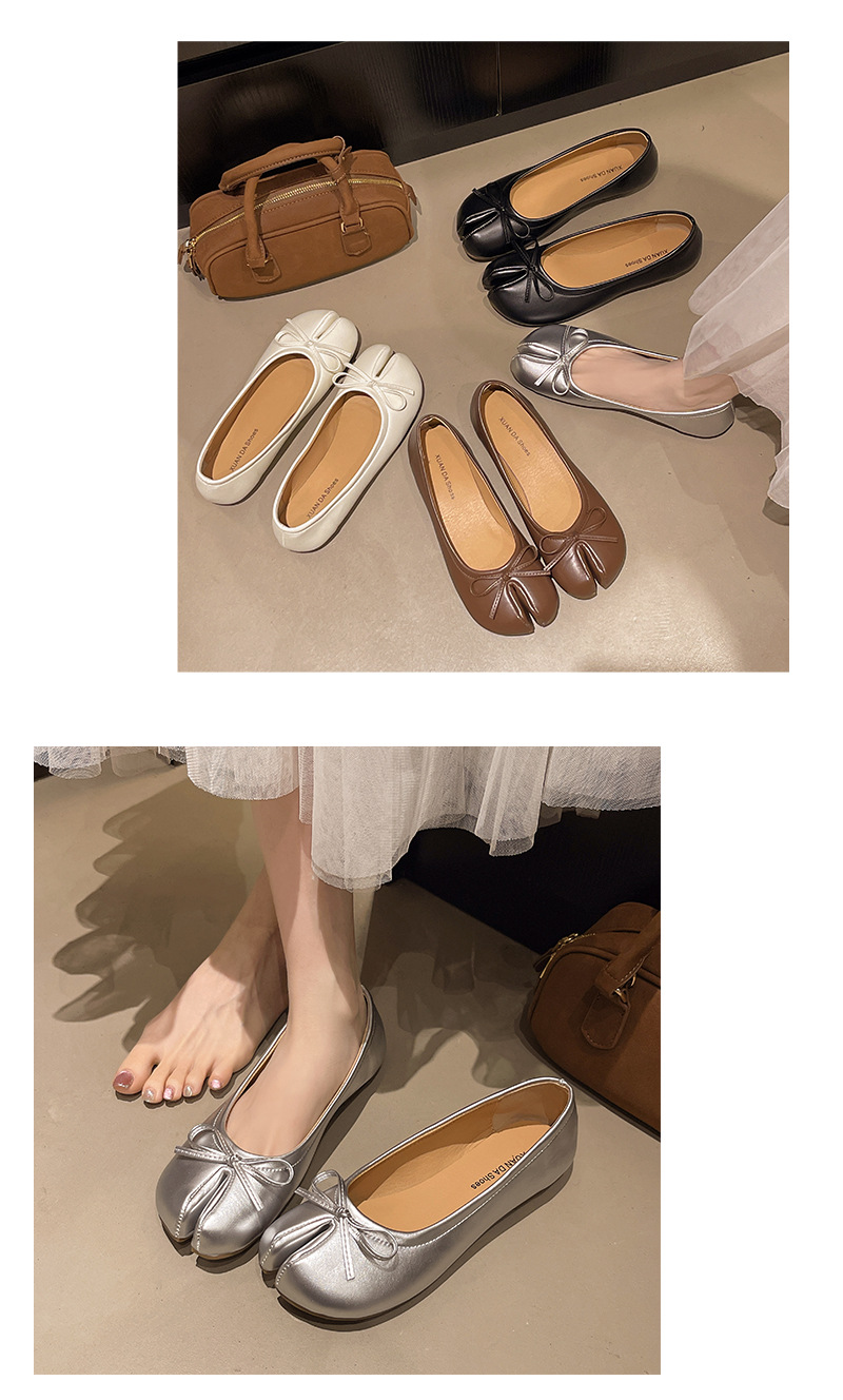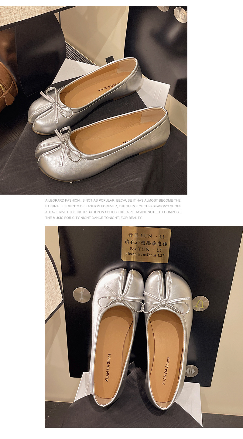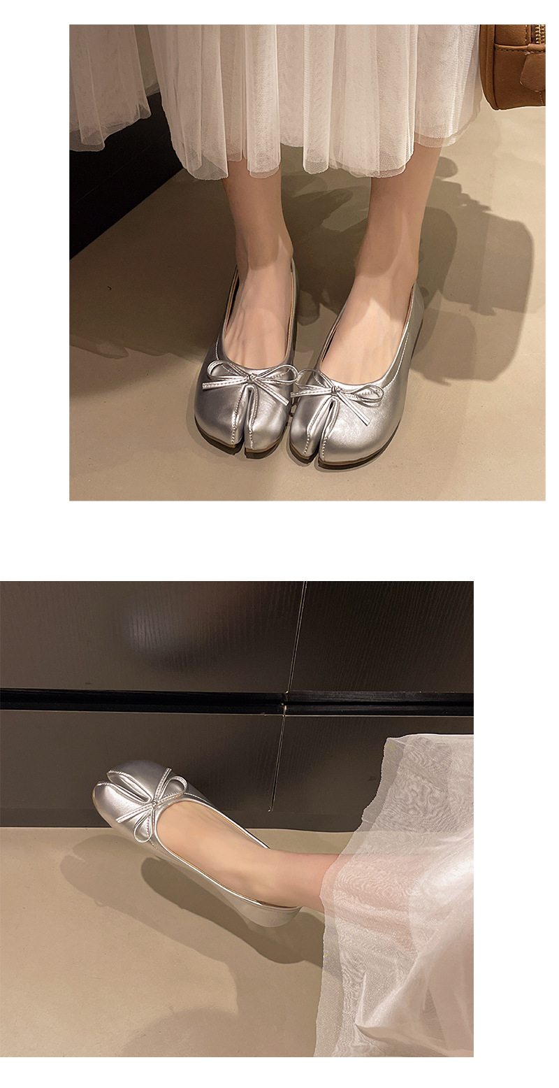 납작한 밑창 스플릿 토 돼지의 트로터 신발 빨간색 단층 신발 여성 신발 2025 년 봄과 가을 여름 실버 엄지 손가락 돼지 발 신발