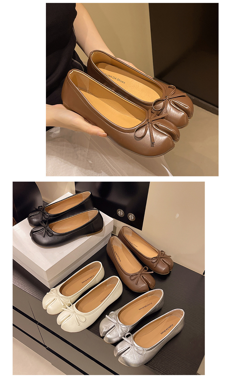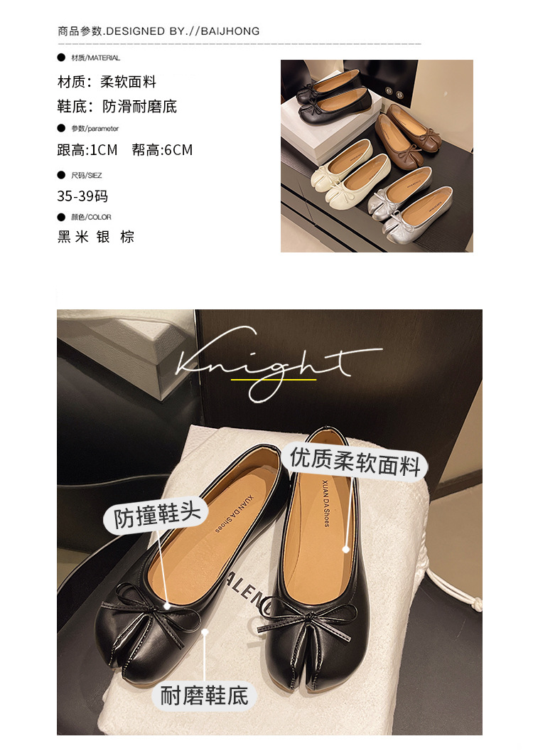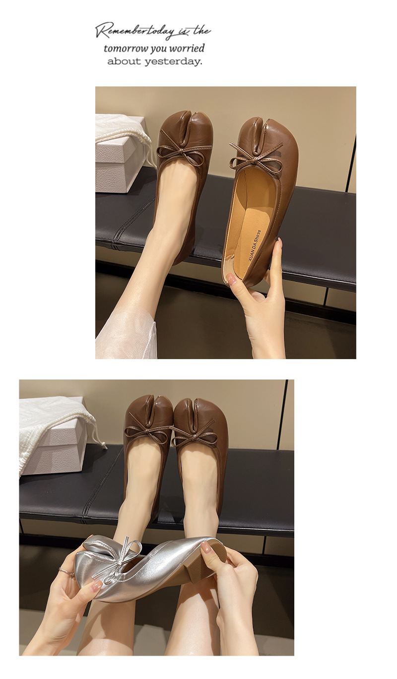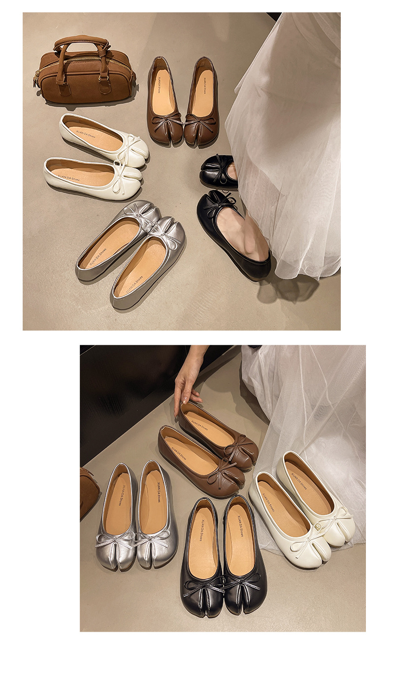 납작한 밑창 스플릿 토 돼지의 트로터 신발 빨간색 단층 신발 여성 신발 2025 년 봄과 가을 여름 실버 엄지 손가락 돼지 발 신발