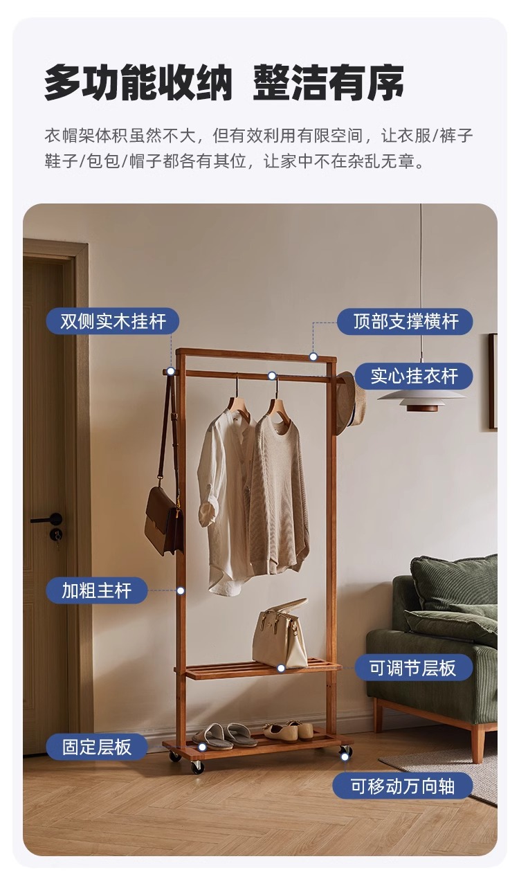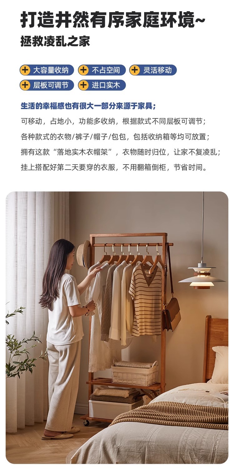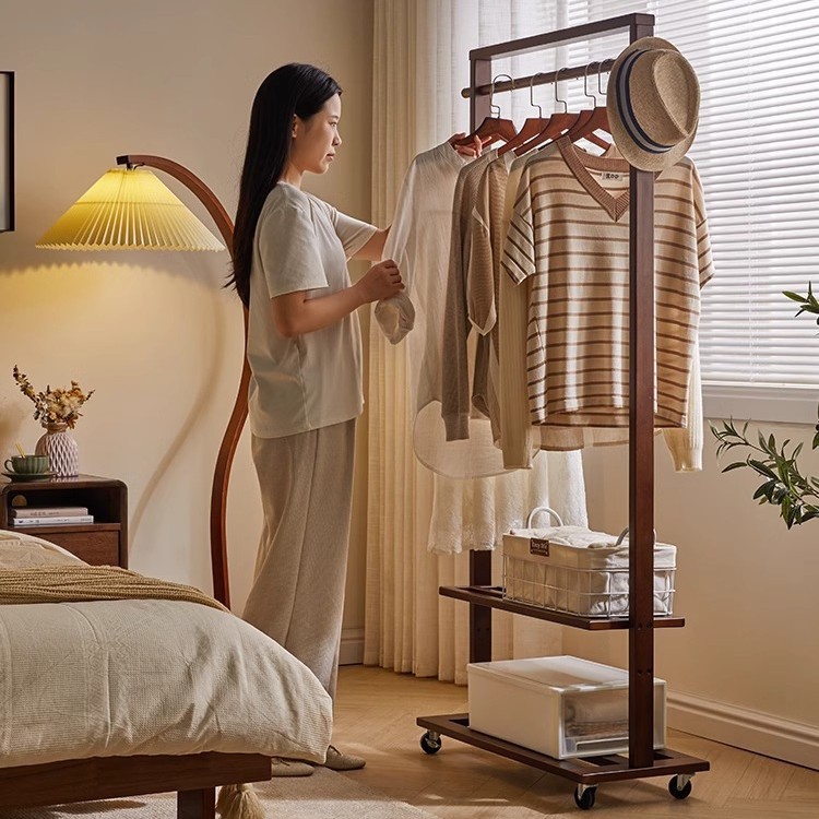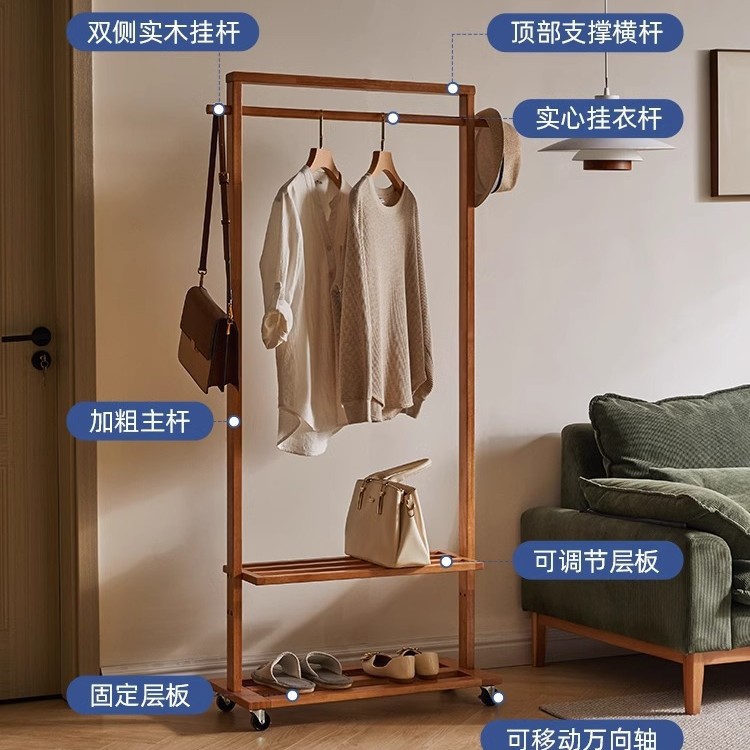 모든 원목 이동식 옷걸이, 2층 옷걸이, 침실 바닥 옷걸이, 문 옷걸이