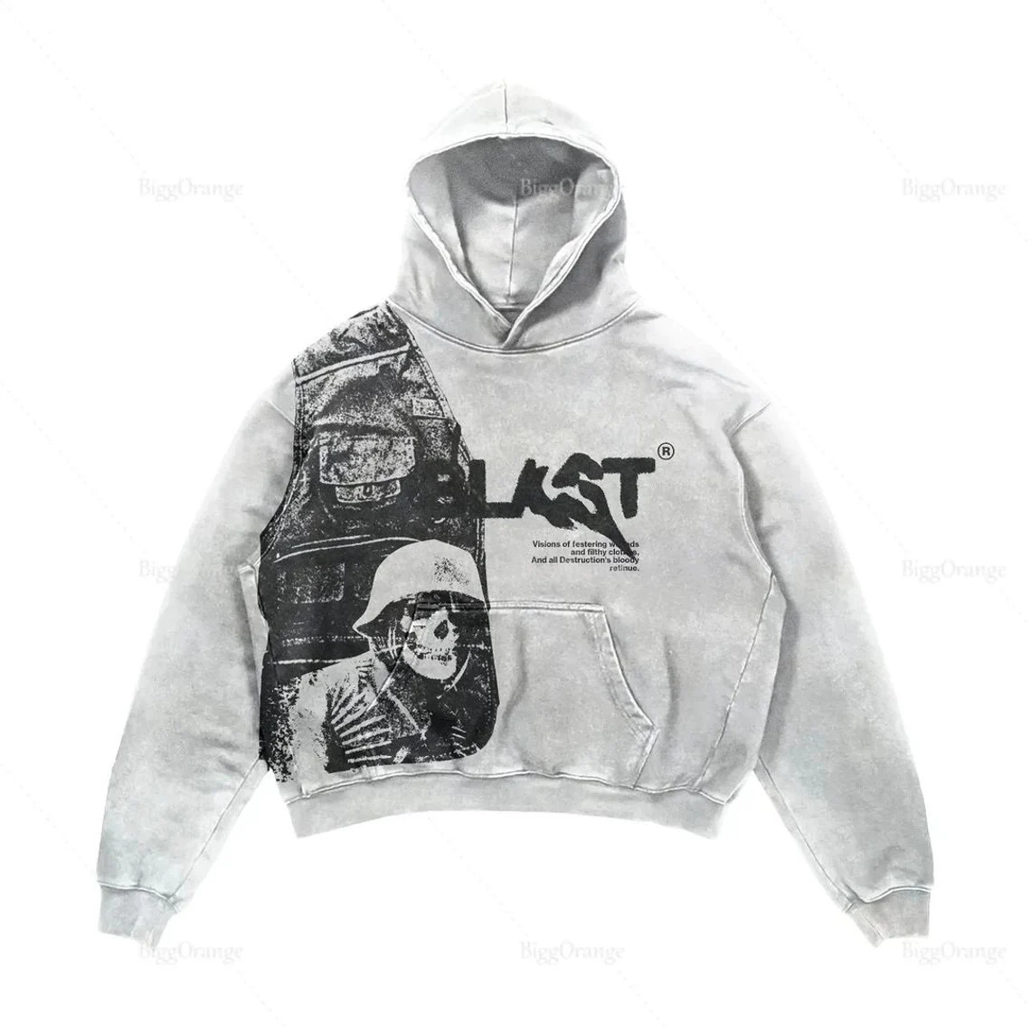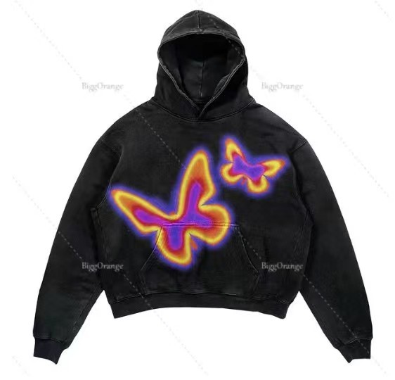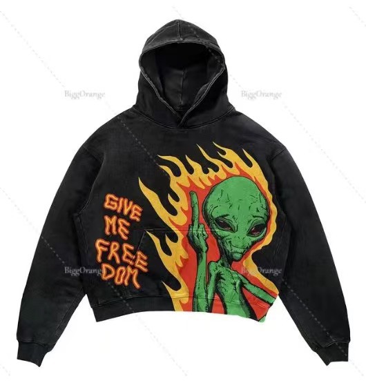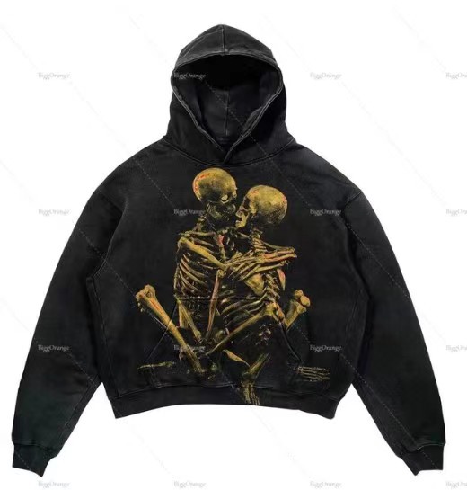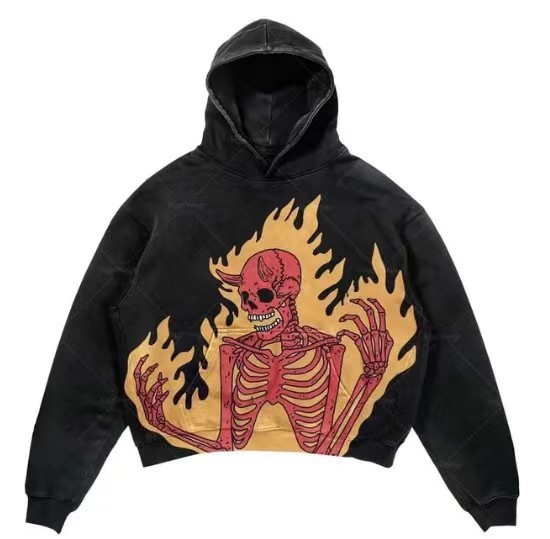 2025 새로운 남성 후드 편지 폭발 인쇄 융합 두개골 요소 하라주쿠 복고풍 가을 맛