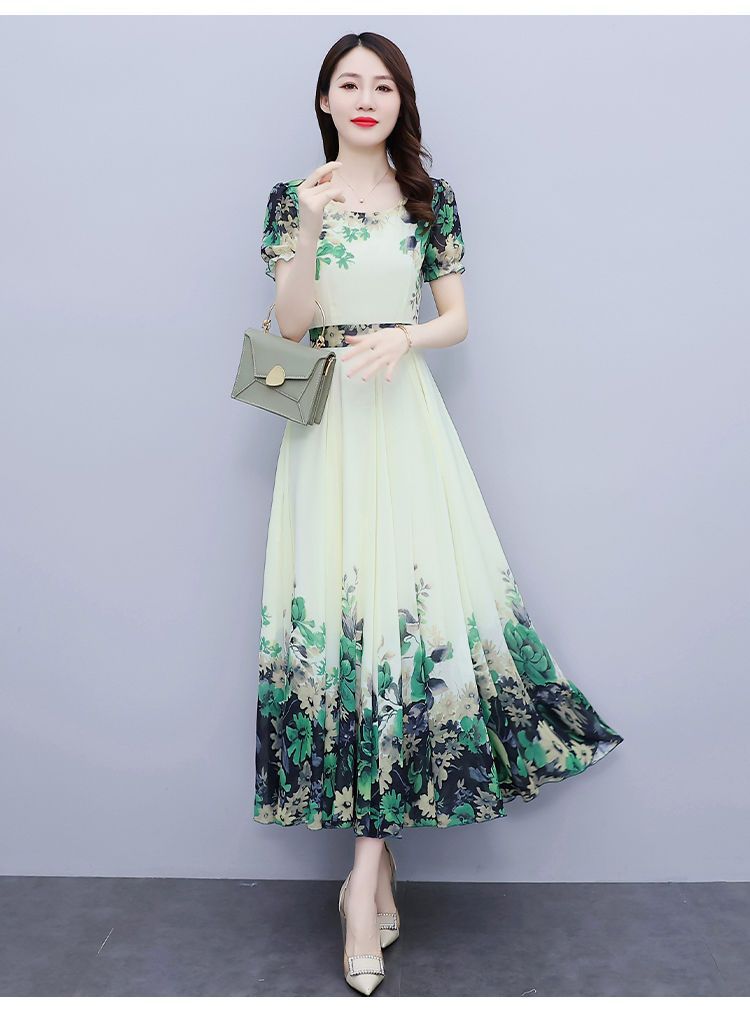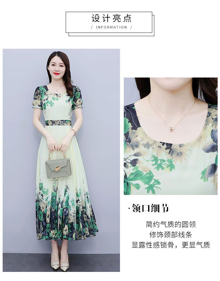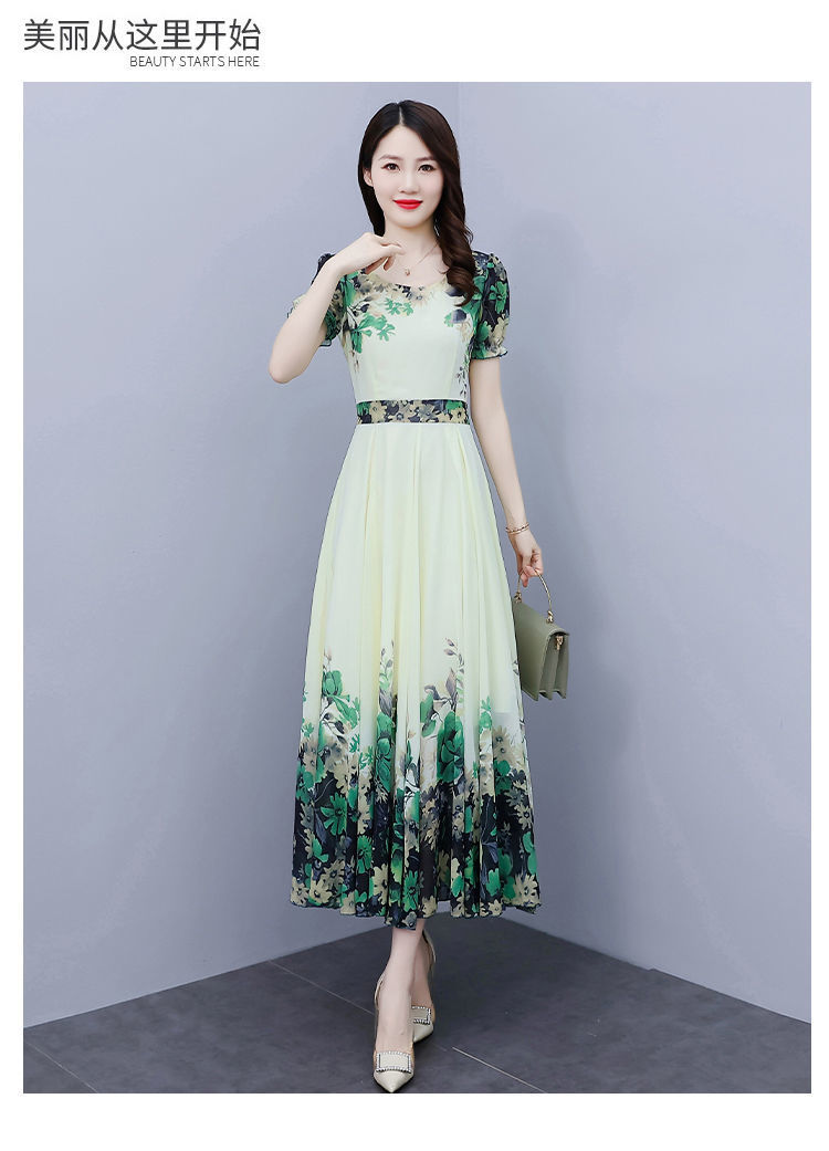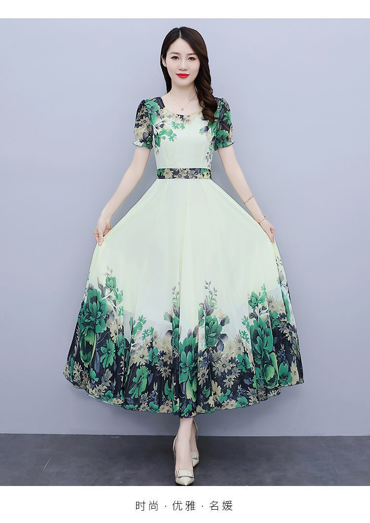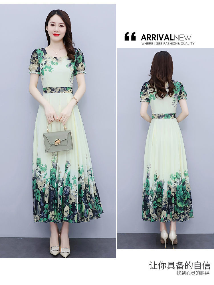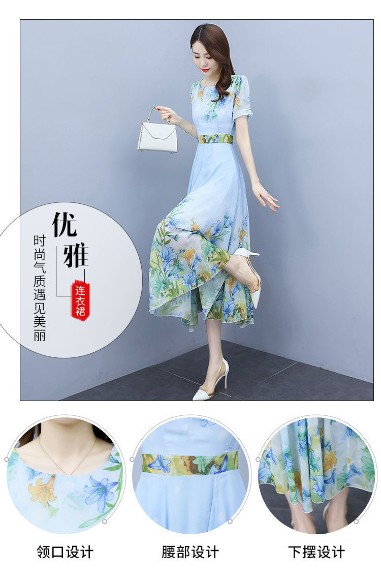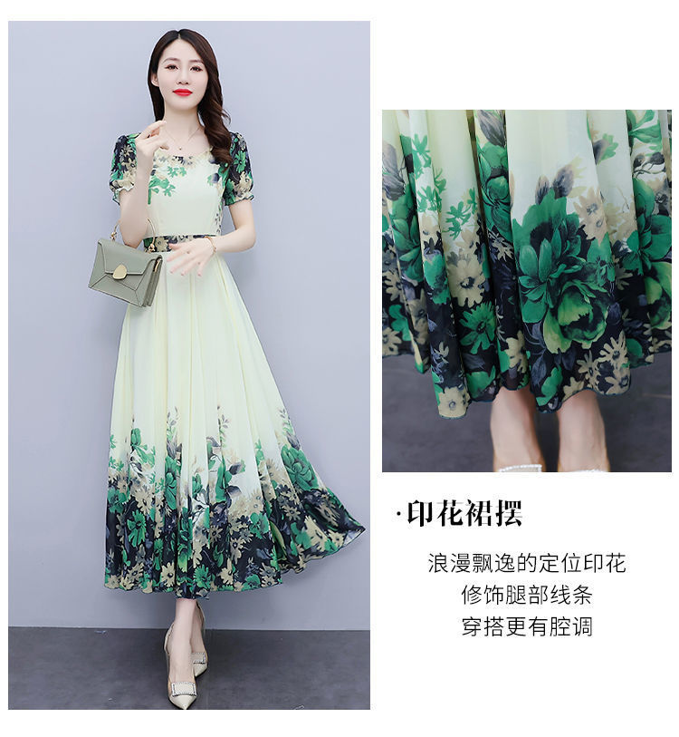 라운드 넥 반팔 꽃무늬 드레스 틈새 하이 웨이스트 슬림 쉬폰 프린트 롱 스커트 2025 여름 비치 스커트