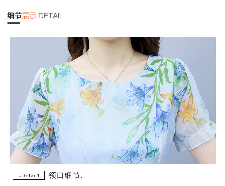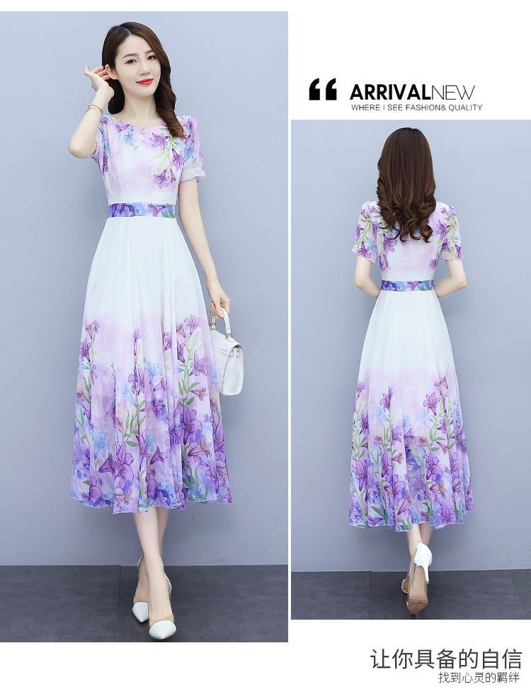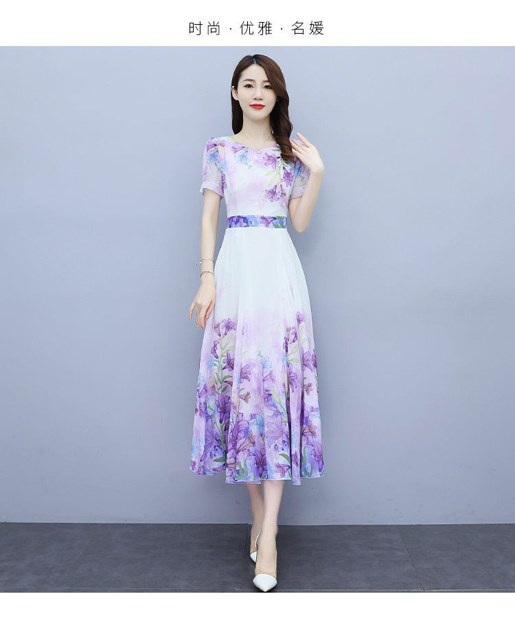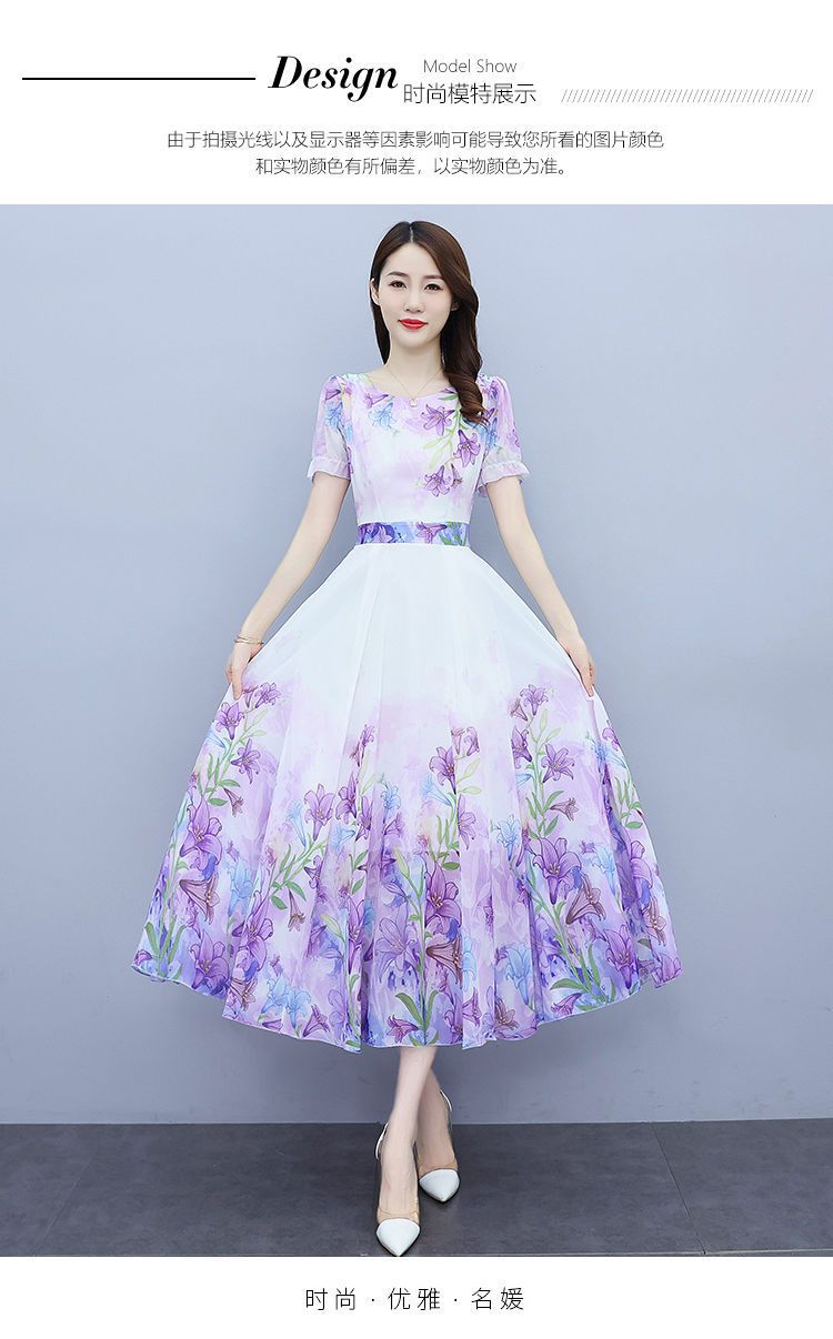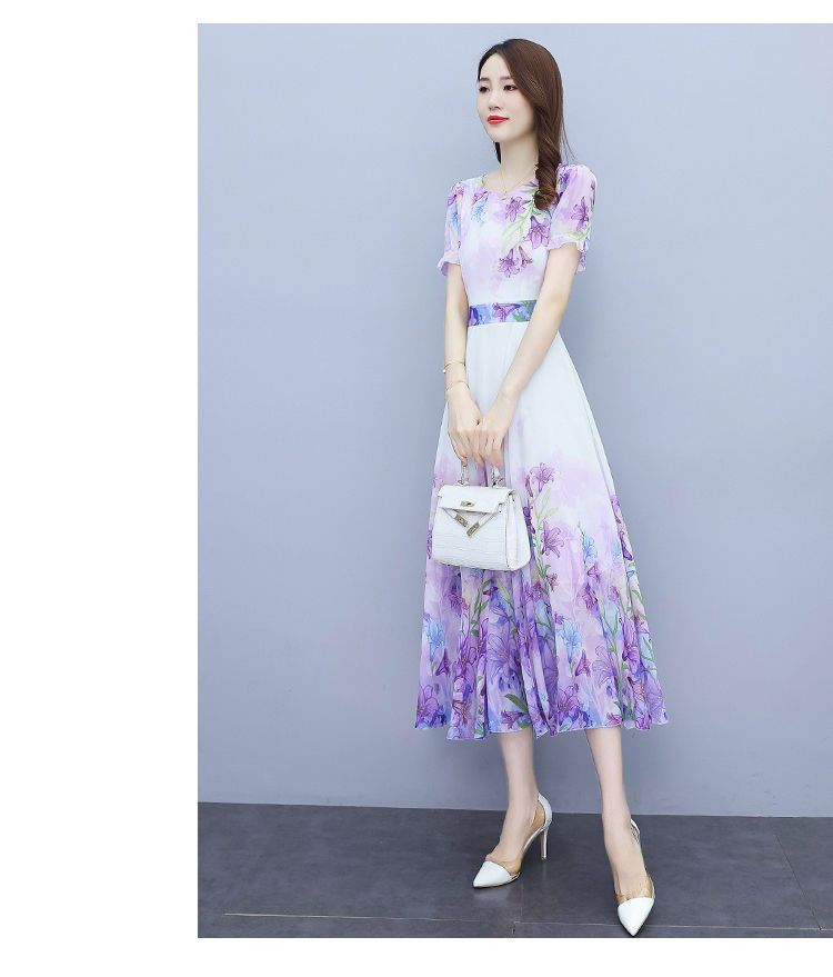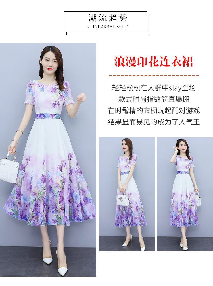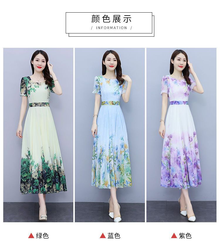 라운드 넥 반팔 꽃무늬 드레스 틈새 하이 웨이스트 슬림 쉬폰 프린트 롱 스커트 2025 여름 비치 스커트