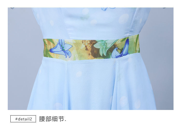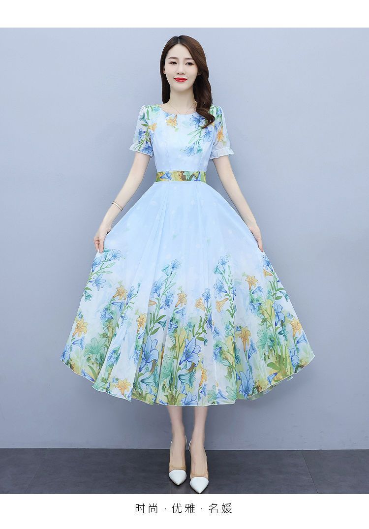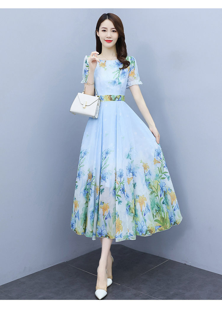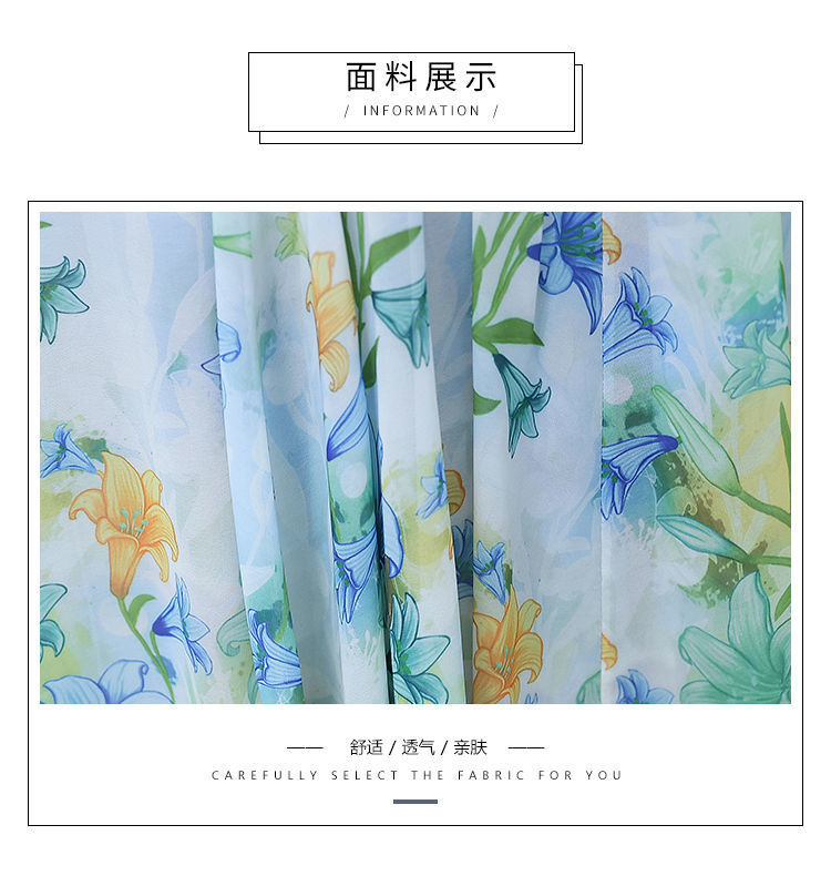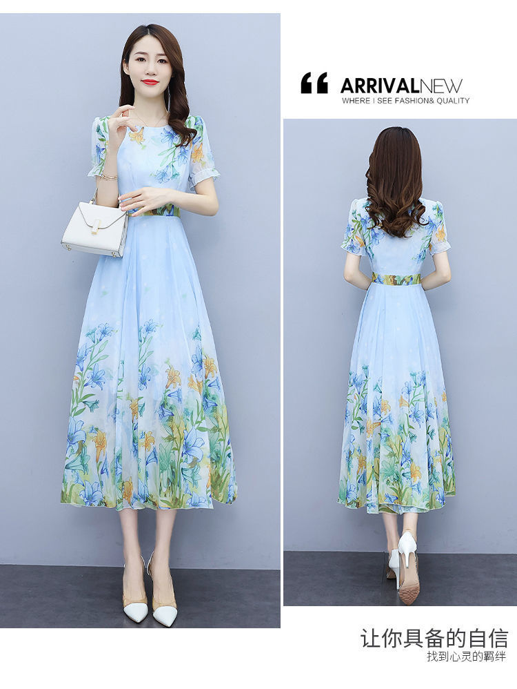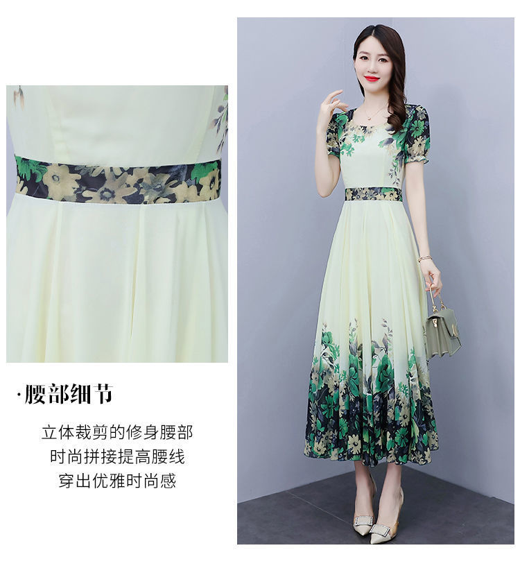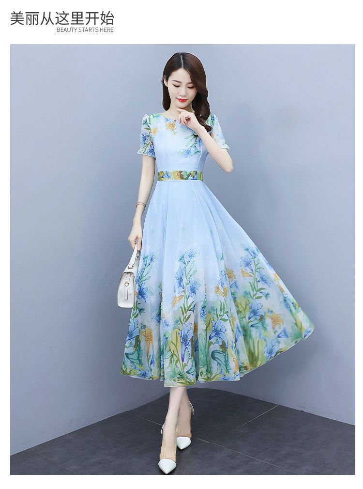 라운드 넥 반팔 꽃무늬 드레스 틈새 하이 웨이스트 슬림 쉬폰 프린트 롱 스커트 2025 여름 비치 스커트