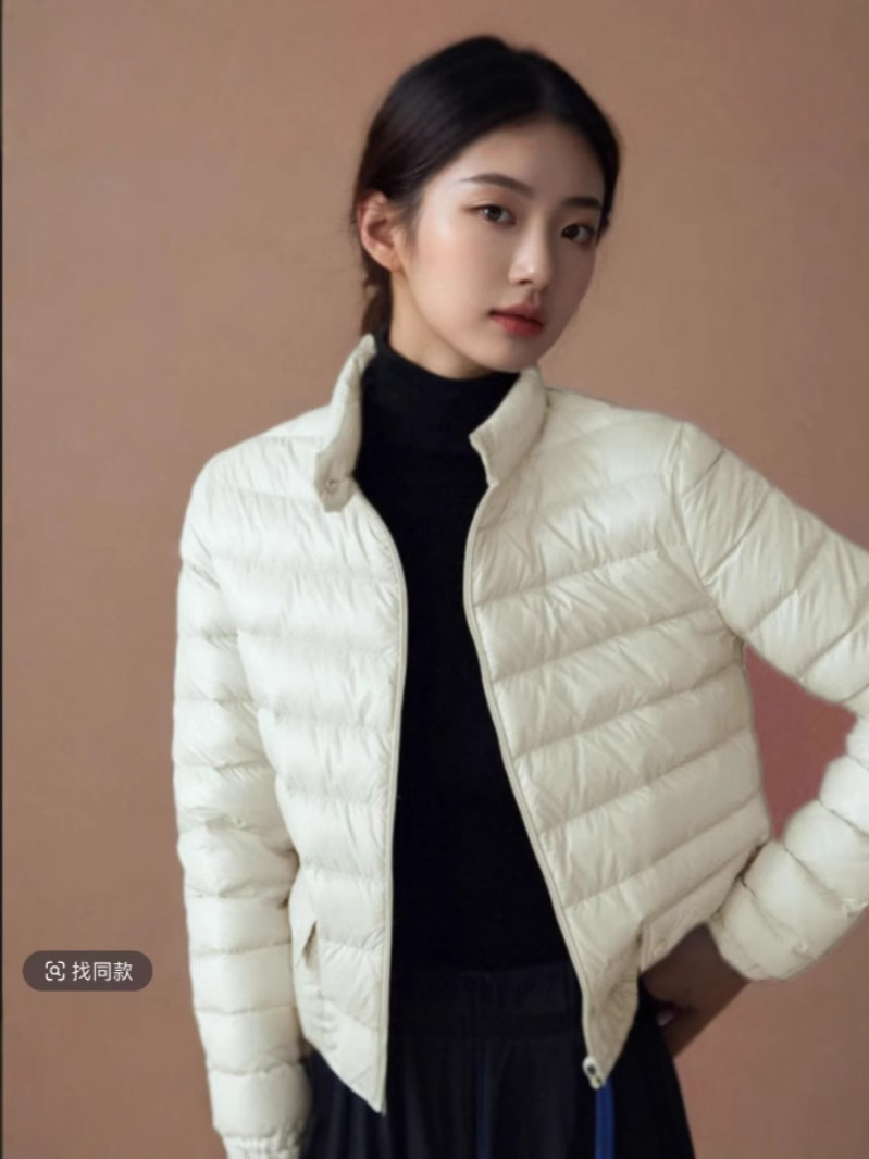 여성용 숏 다운 재킷 2025 가을 겨울 커플용 신상 스탠드 칼라 가볍고 심플한 90% 화이트 덕다운 보온 재킷