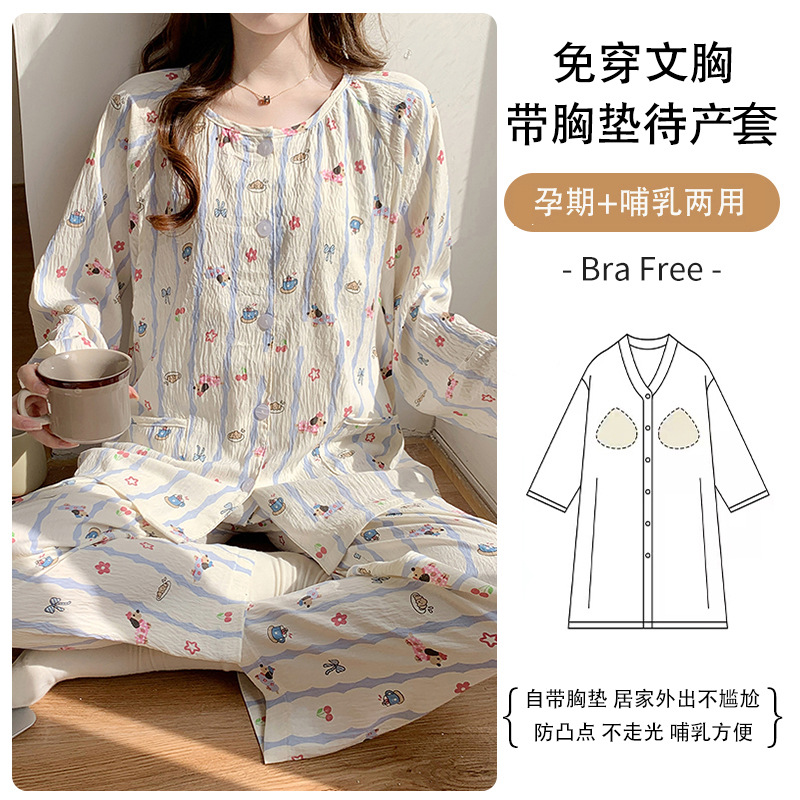봄, 가을 가슴 패드 구름 코튼 문 의류 산후 모성 간호 파자마 여름 얇은 홈 의류 세트