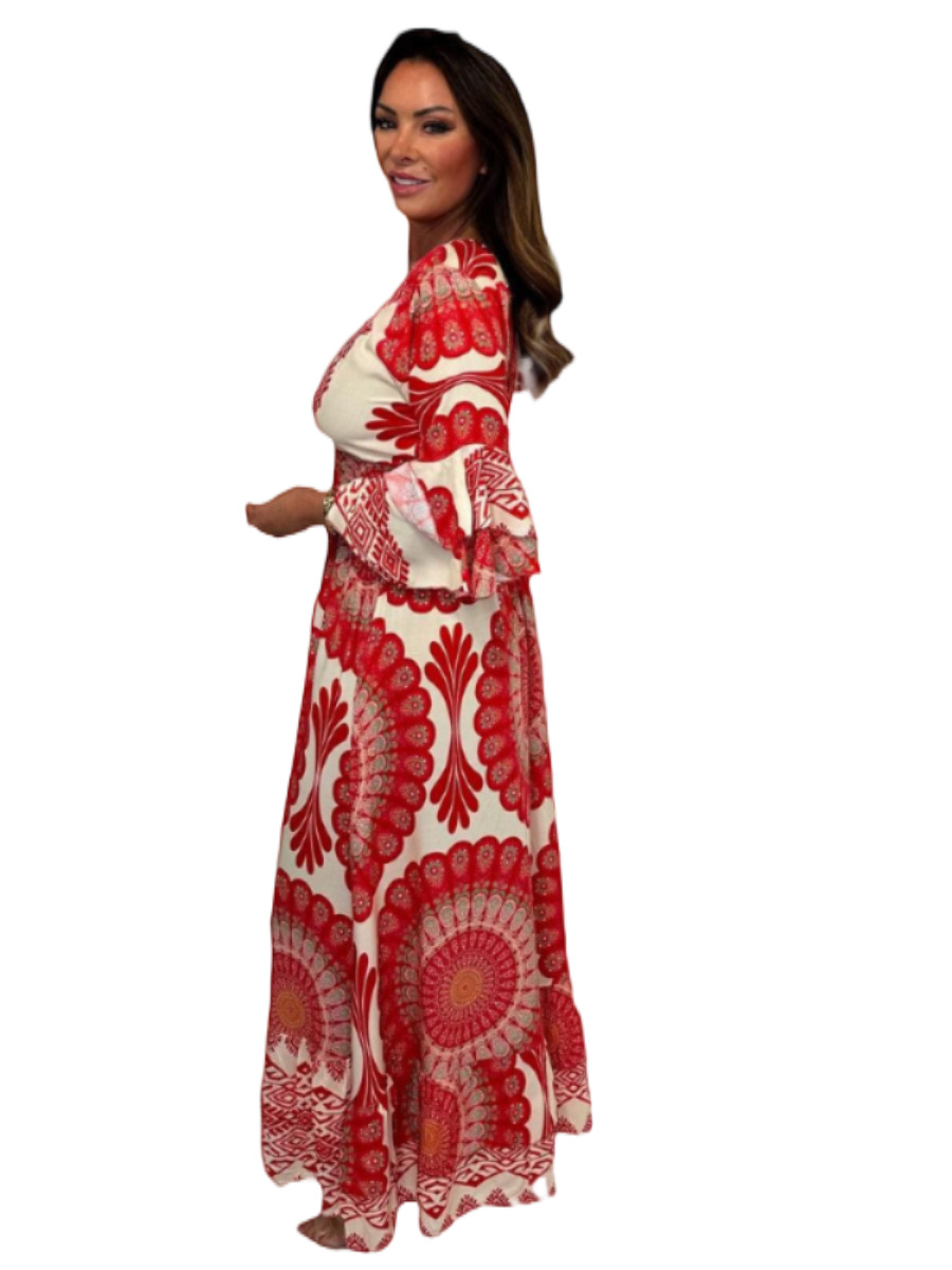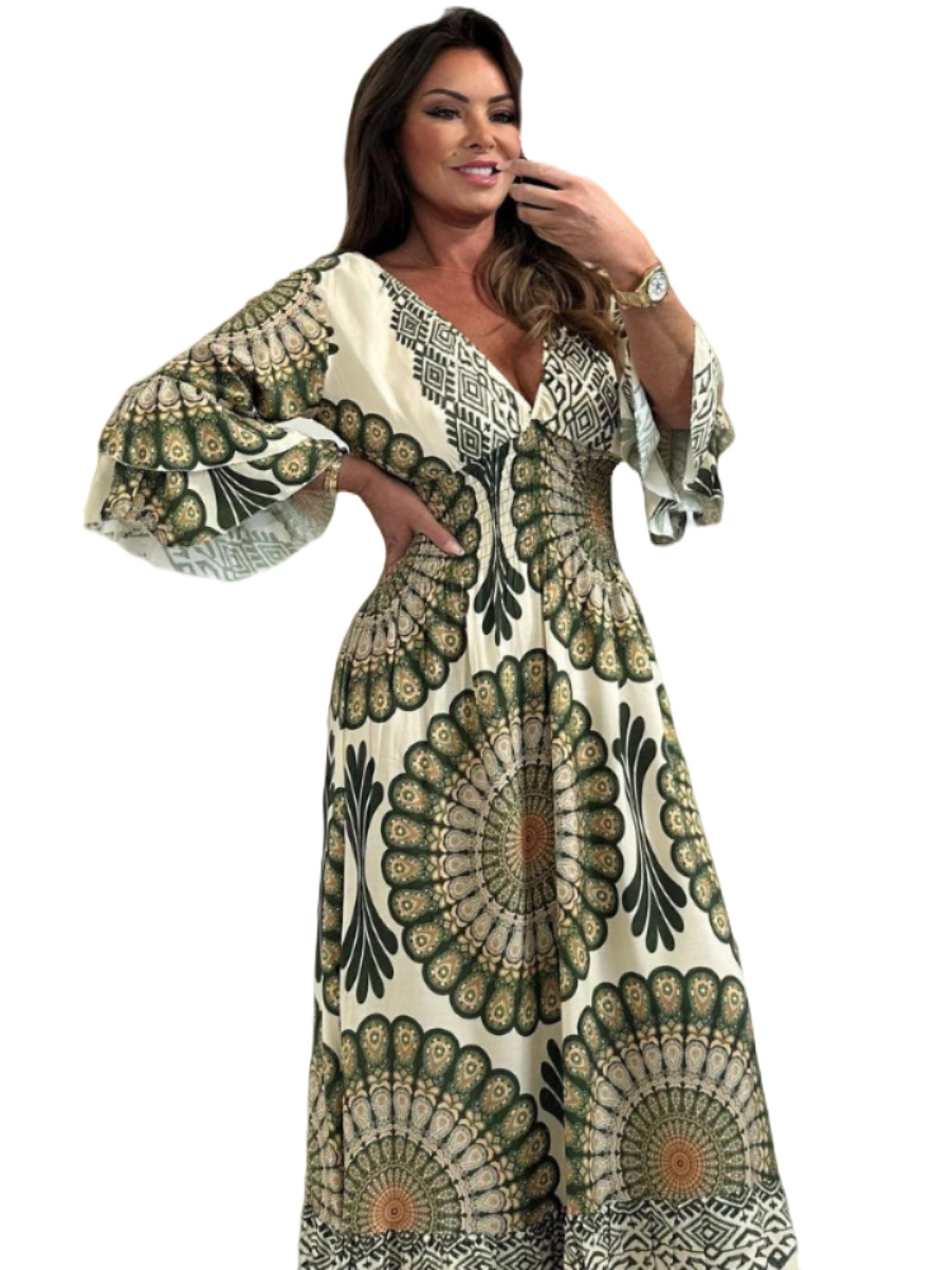 2026 유럽 및 미국 해외 패션 캐주얼 비치 드레스, 소용돌이 프린트, 큰 사이즈 여성용 러플 드레스