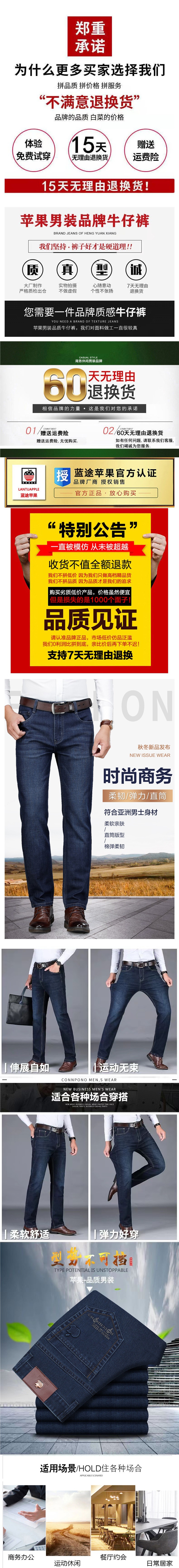 애플 남성용 청바지 남성용 가을과 겨울 두꺼운 스트레이트 하이 웨이스트 탄성 중년 가을 두꺼운 바지 캐주얼 도매