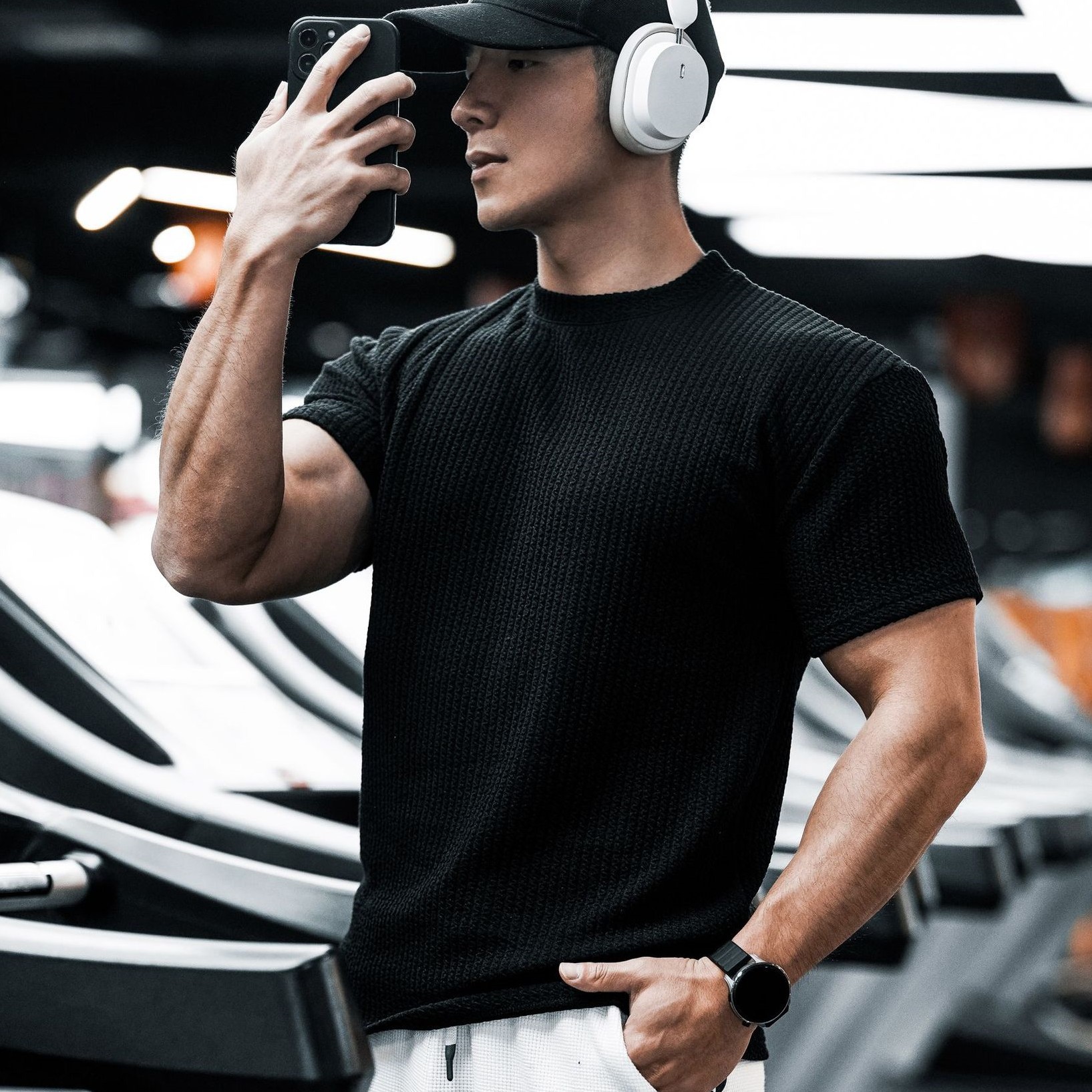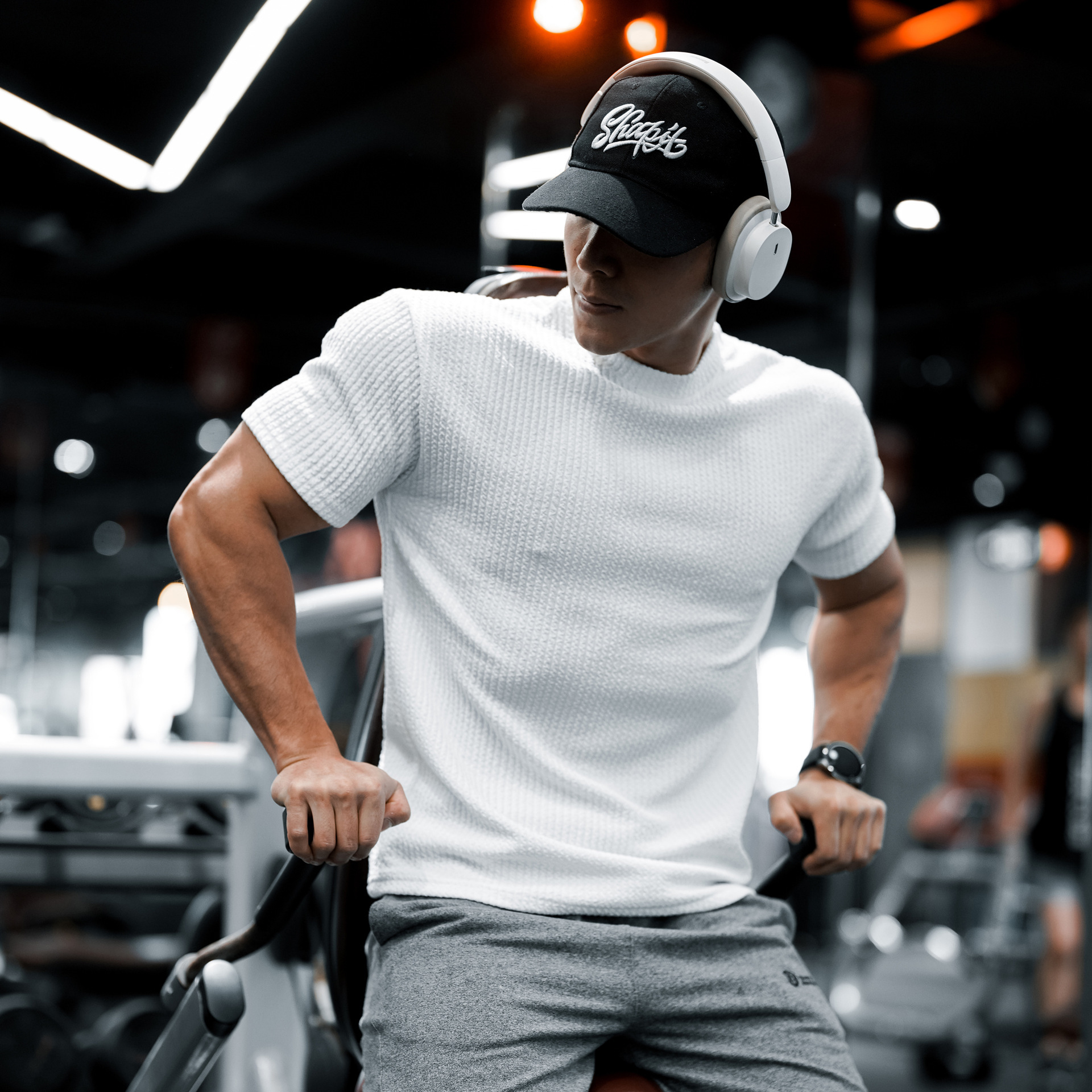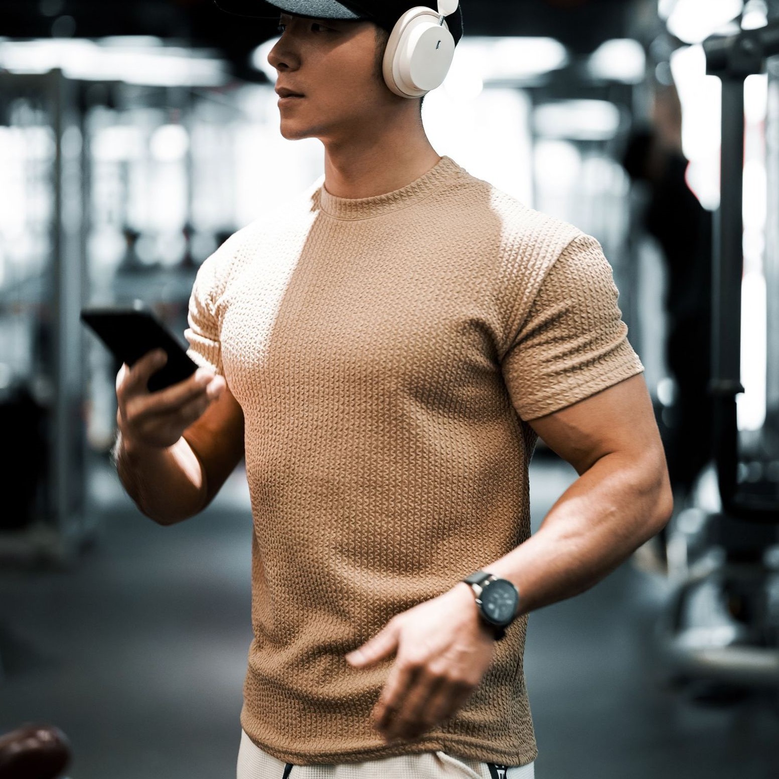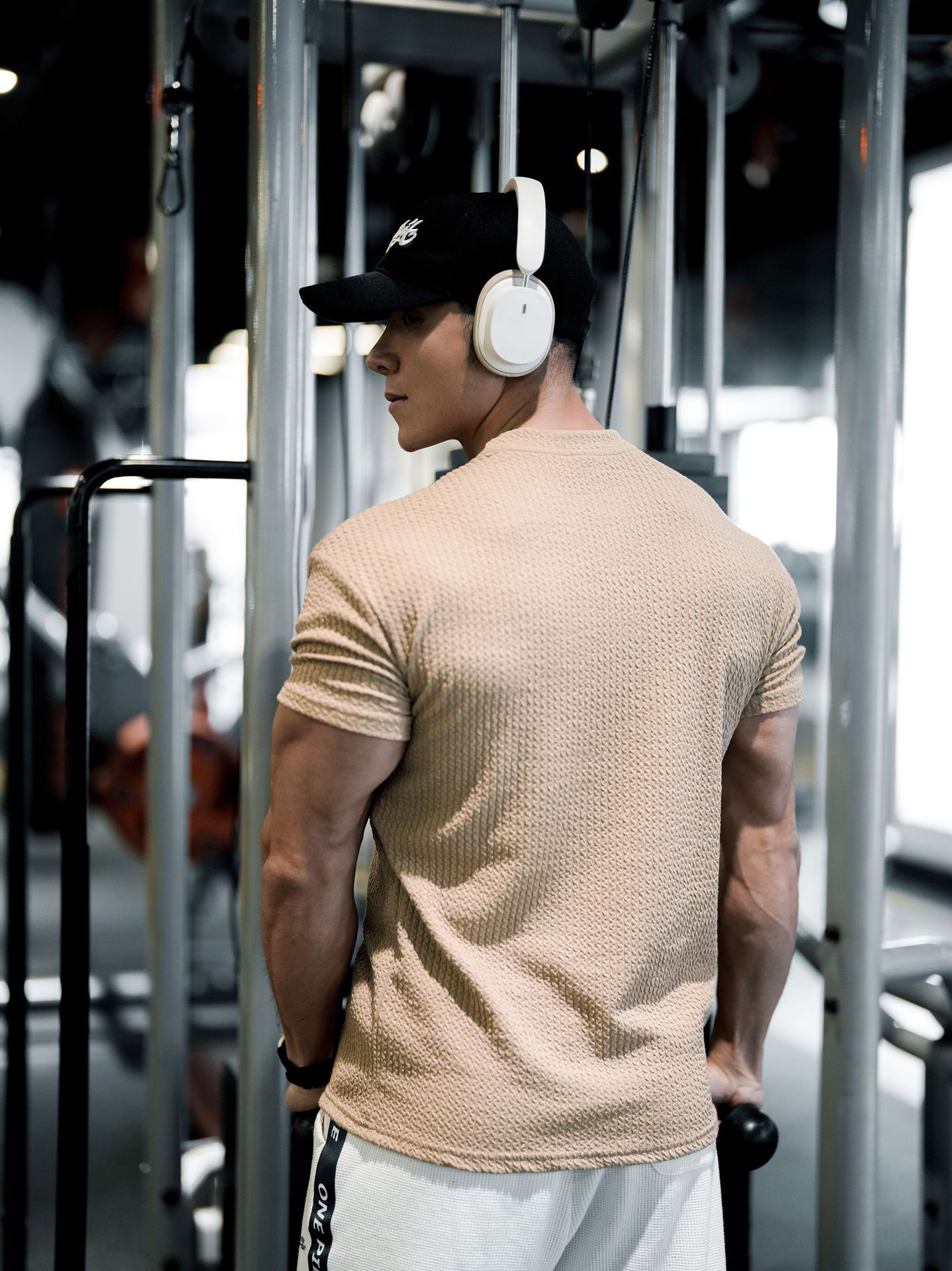 纯色短袖男运动T恤肌理纹抗皱训练篮球弹力美式圆领速干健身衣服